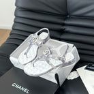 Double C Classic One-Strap Sandals White Gray Smoke Lambskin