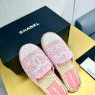 espadrilles mule pink white tweed cotton white sequin