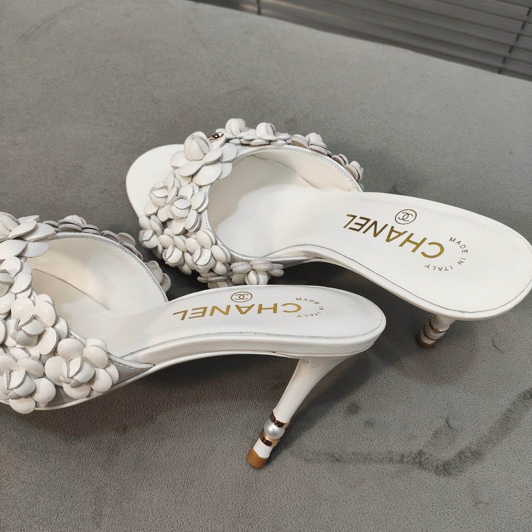 CC MULE WITH SILK WHITE BOW AND BLACK LAMBSKIN