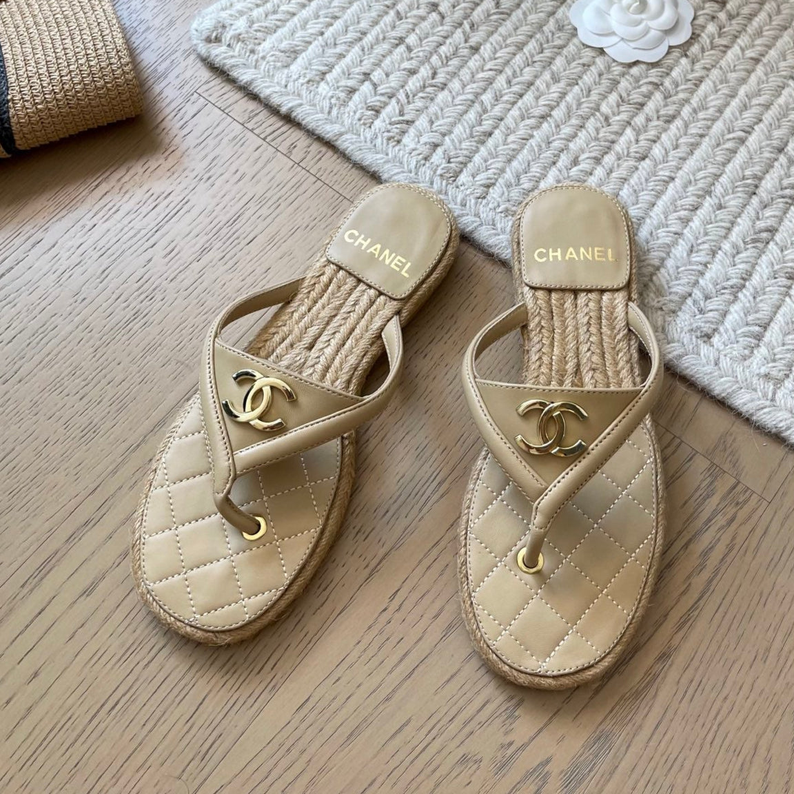 CC 25 Flip Flop Sandals Beige Suede Calfskin Espadrilles