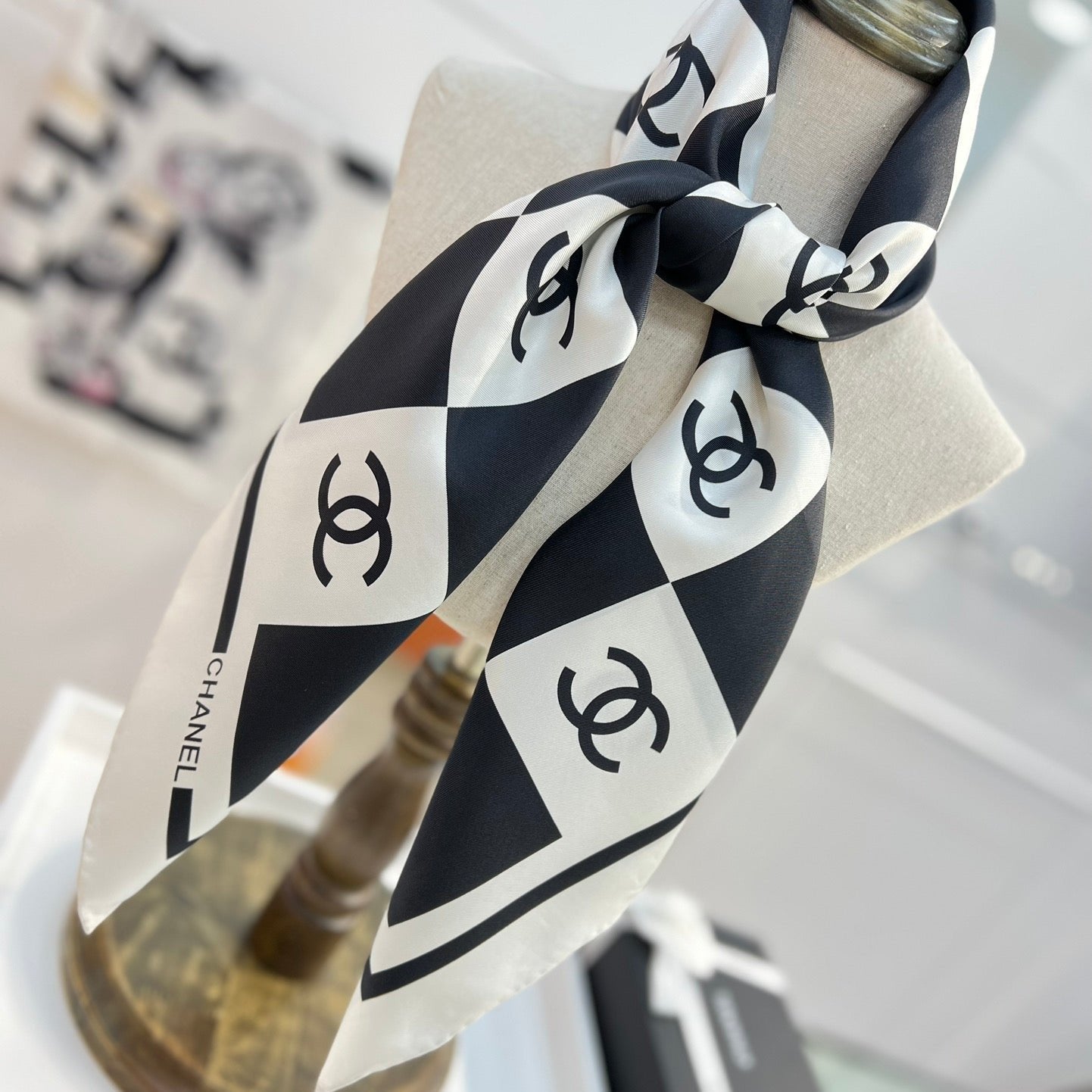 CC Square Scarf 90 CM In Black And White Camellia Logo Print Silk Twill 288740