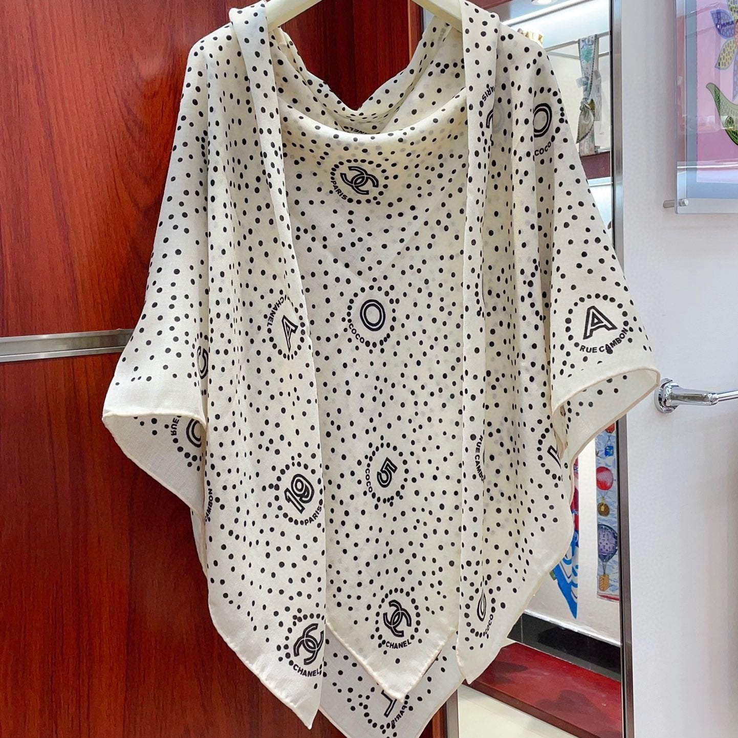 CC Square Scarf 140 CM In White Black Polka Dot Cashmere Silk 337146