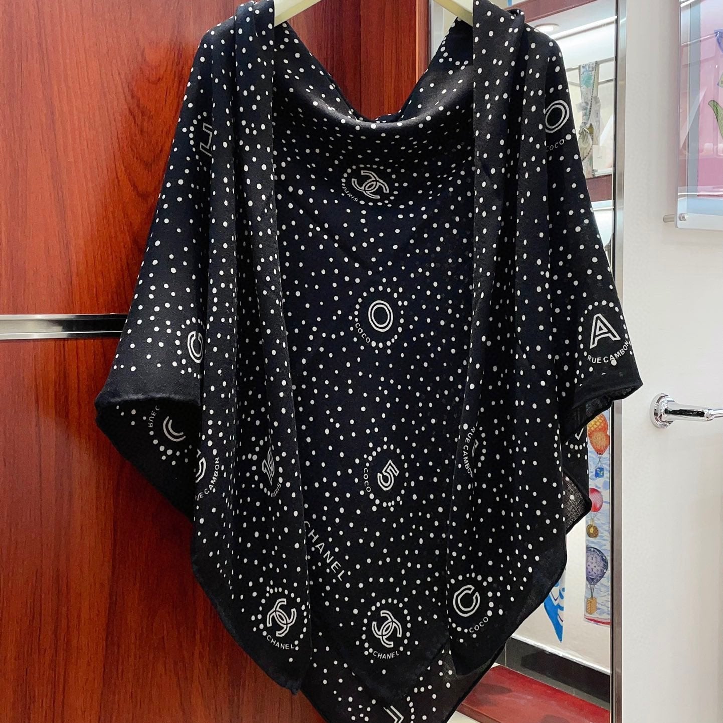 CC Square Scarf 140 CM In Black White Polka Dot Cashmere Silk 337147