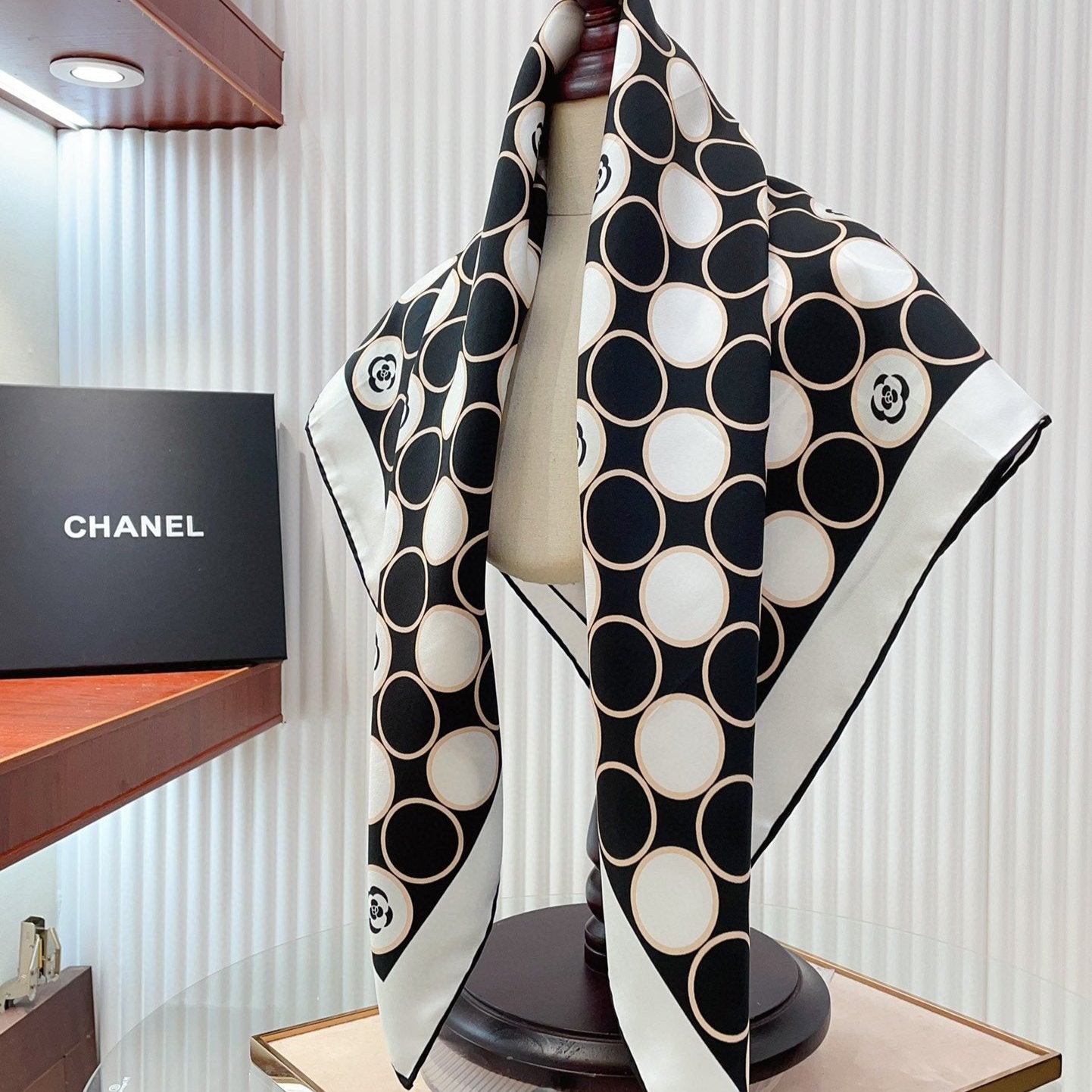 CC Scarf 110 CM In White Black Polka Dot Silk 348706