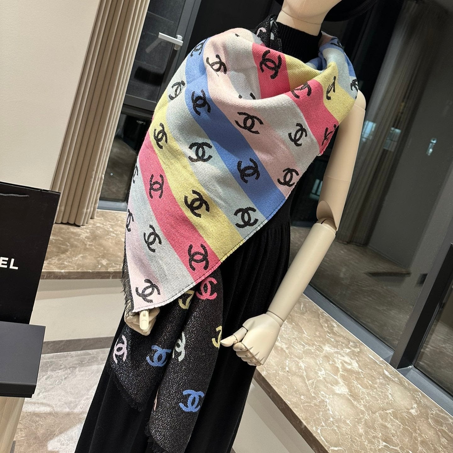 CC Scarf 180 CM In Black Mix Rainbow Cashmere And Wool Mix Mulberry Silk 340229