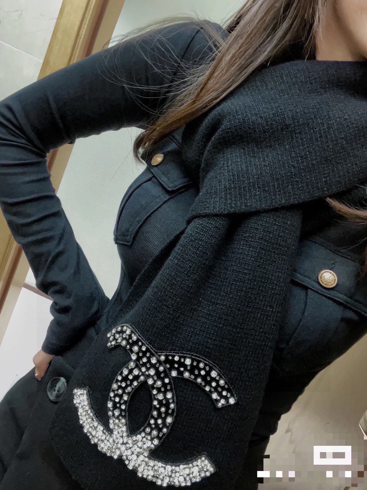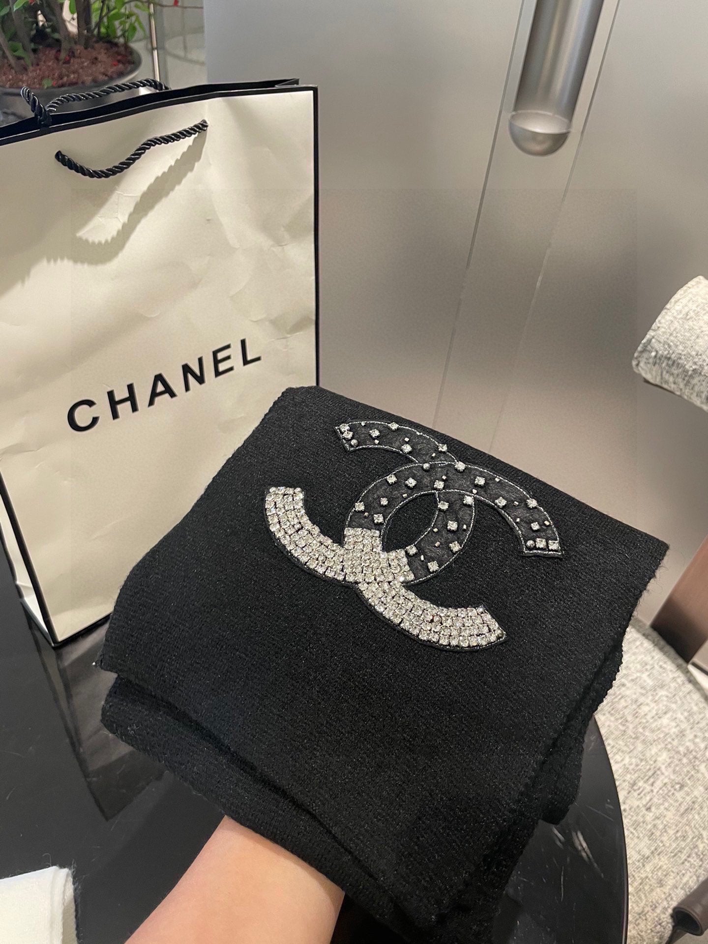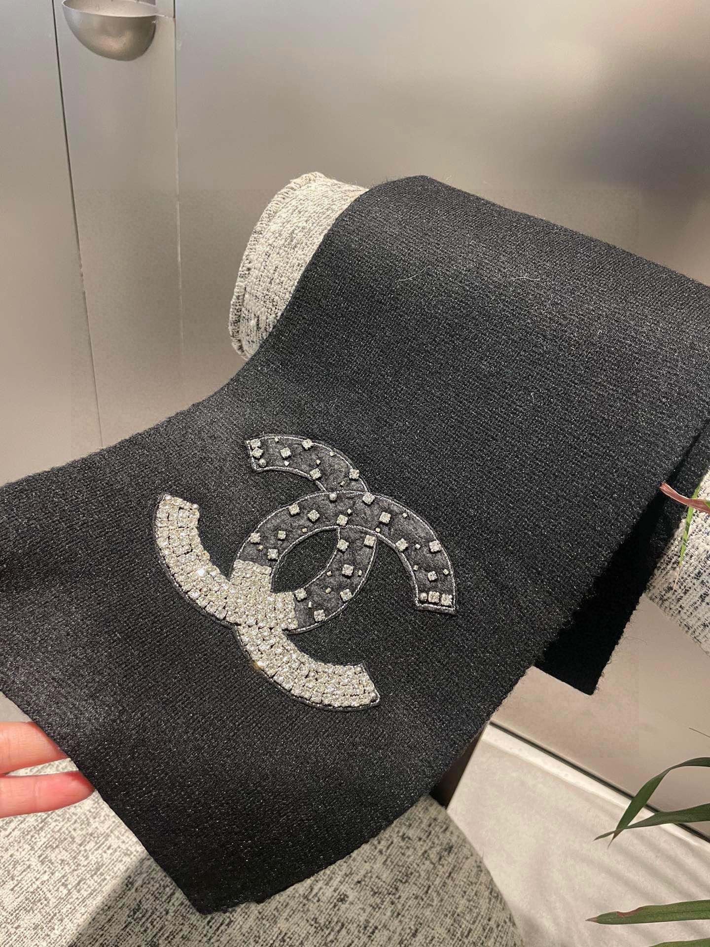 CC Rhinestone-Embellished Shawl 180 CM In Black Cashmere Wool 363687