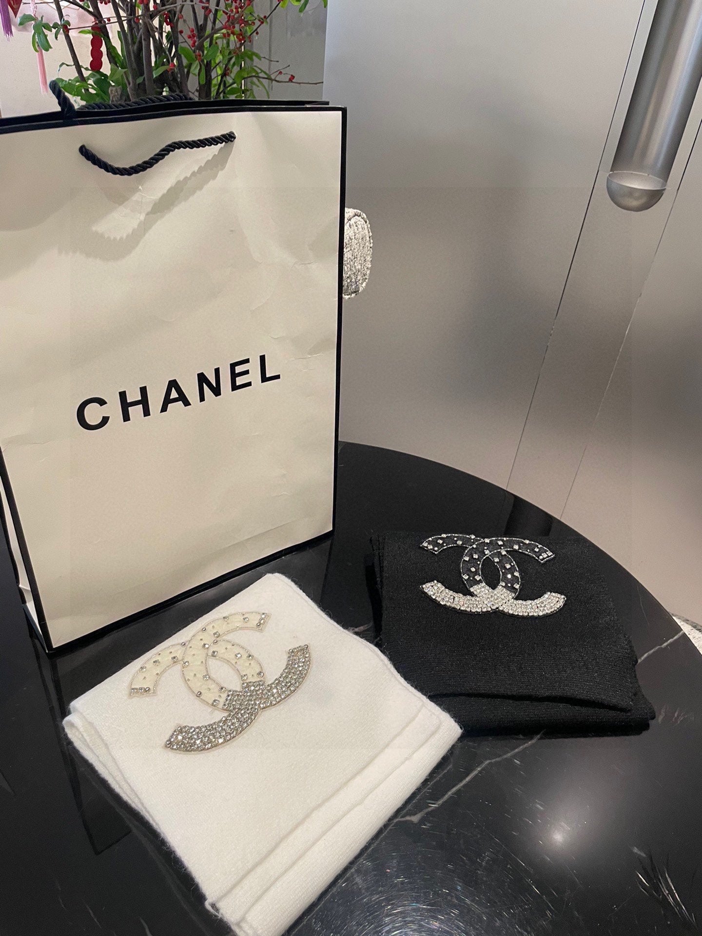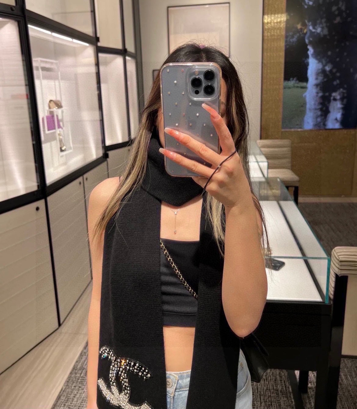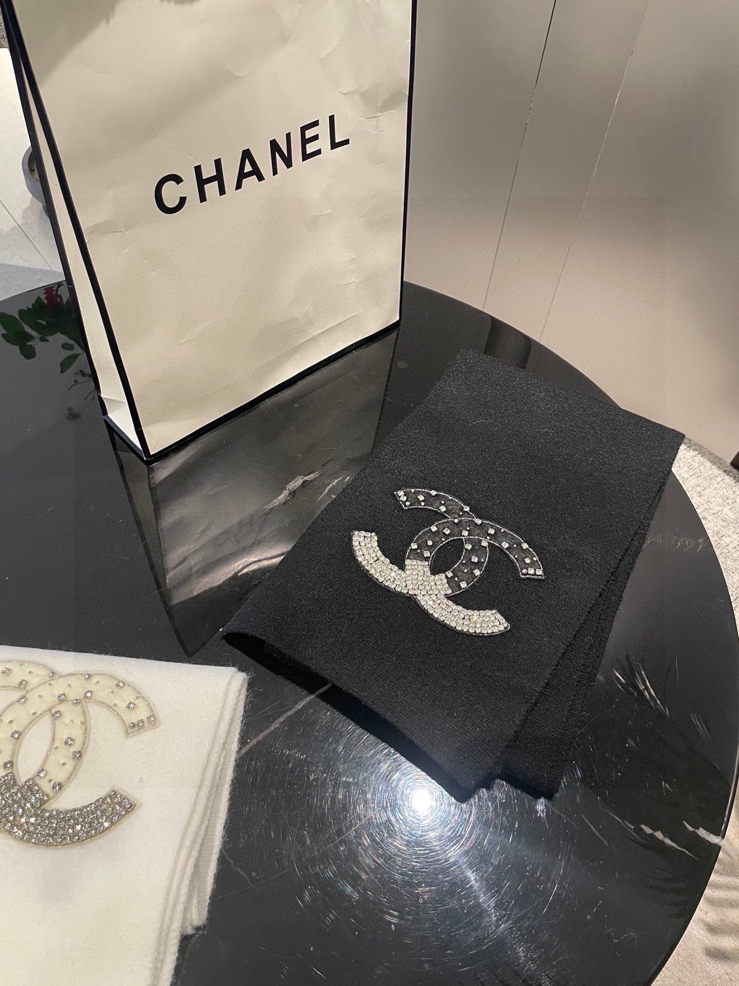 CC Rhinestone-Embellished Shawl 180 CM In Black Cashmere Wool 363687