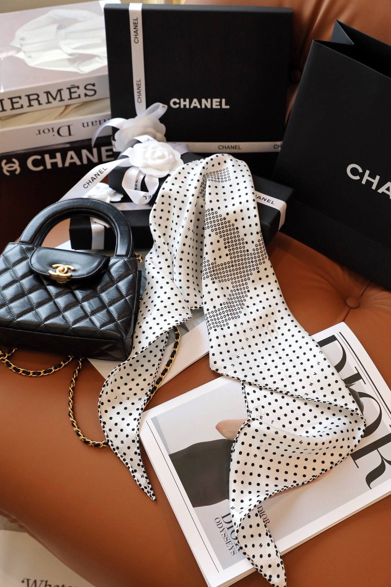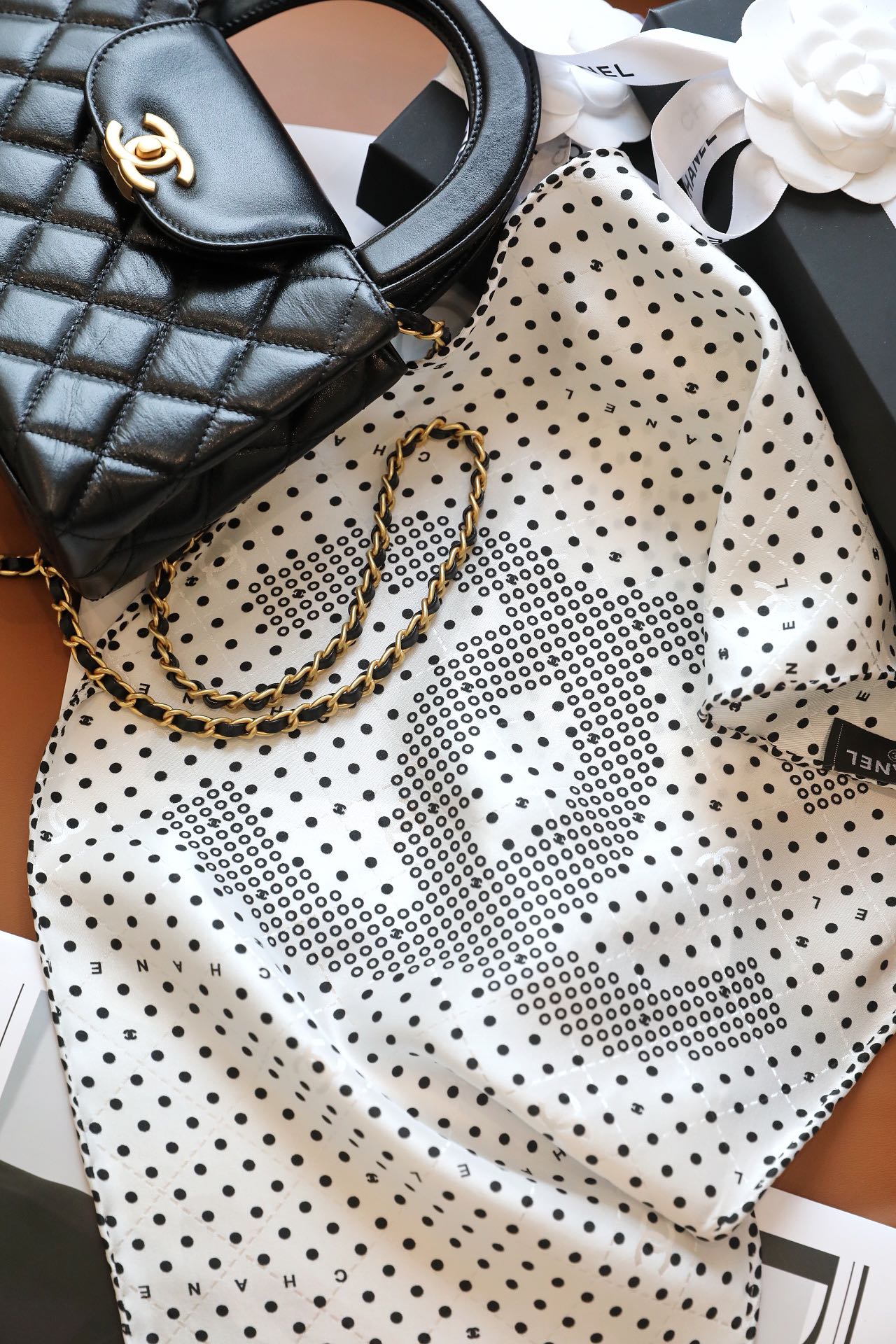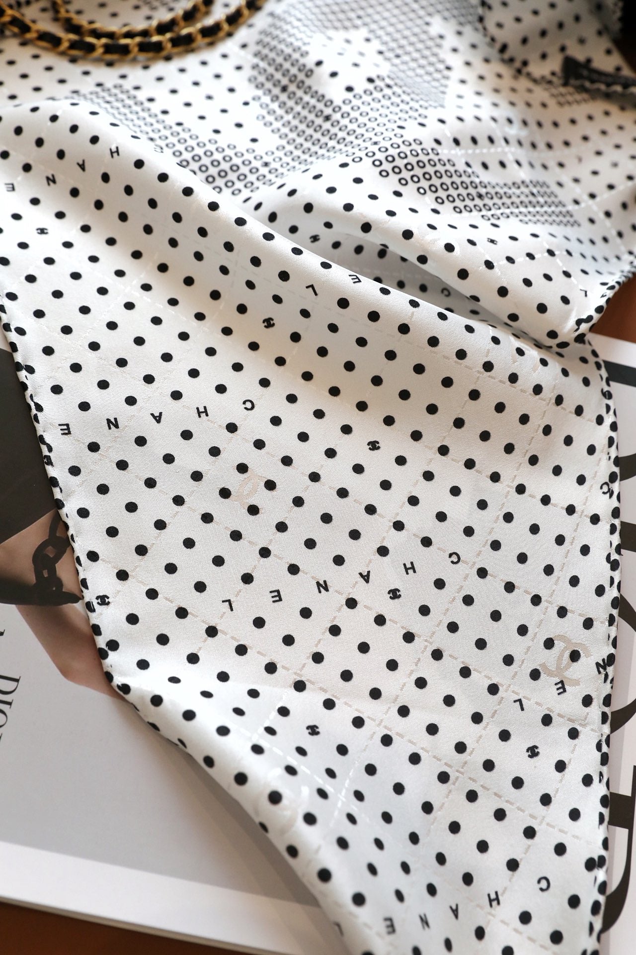 CC Scarf 110 CM In White Black Polka Dot Silk 348706
