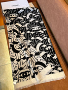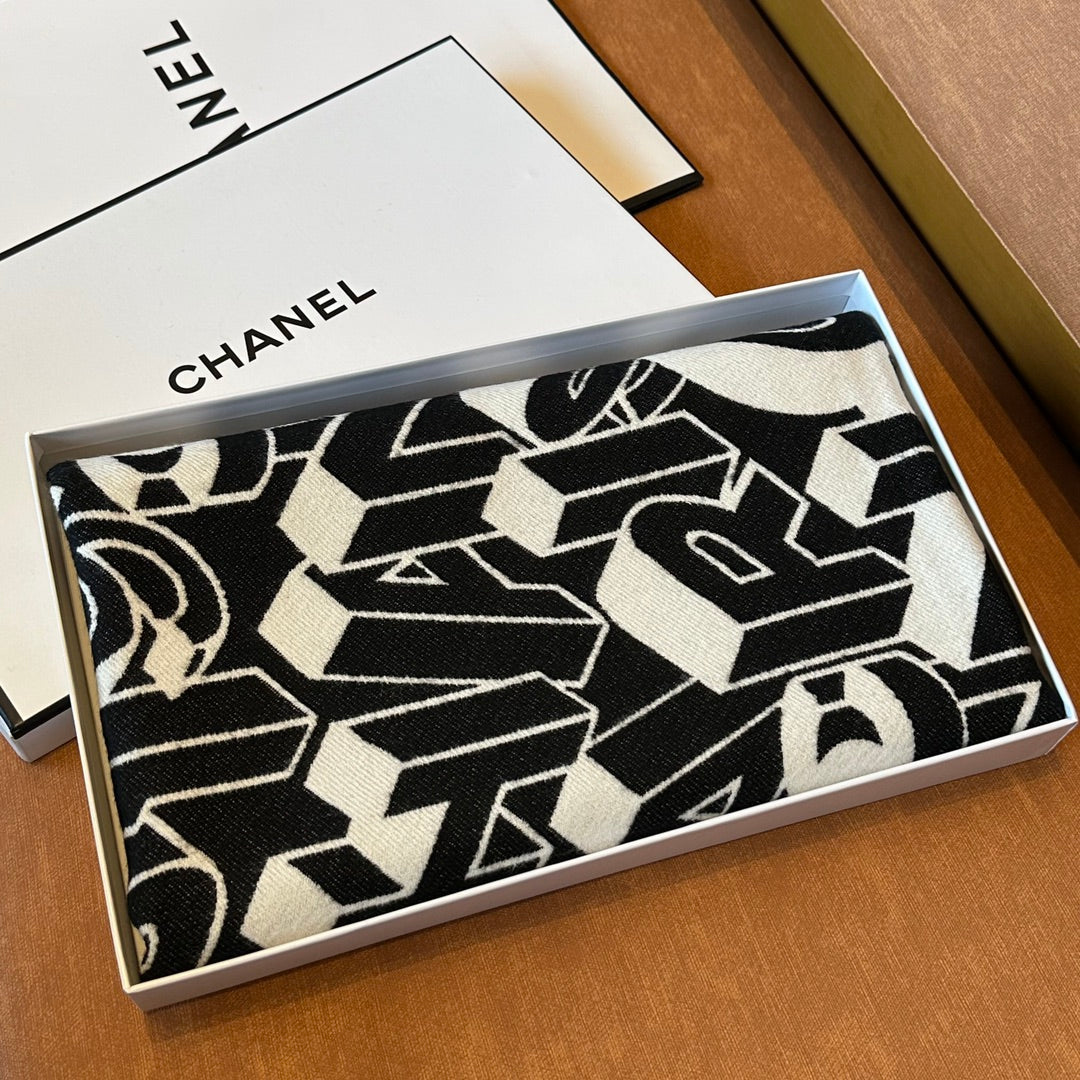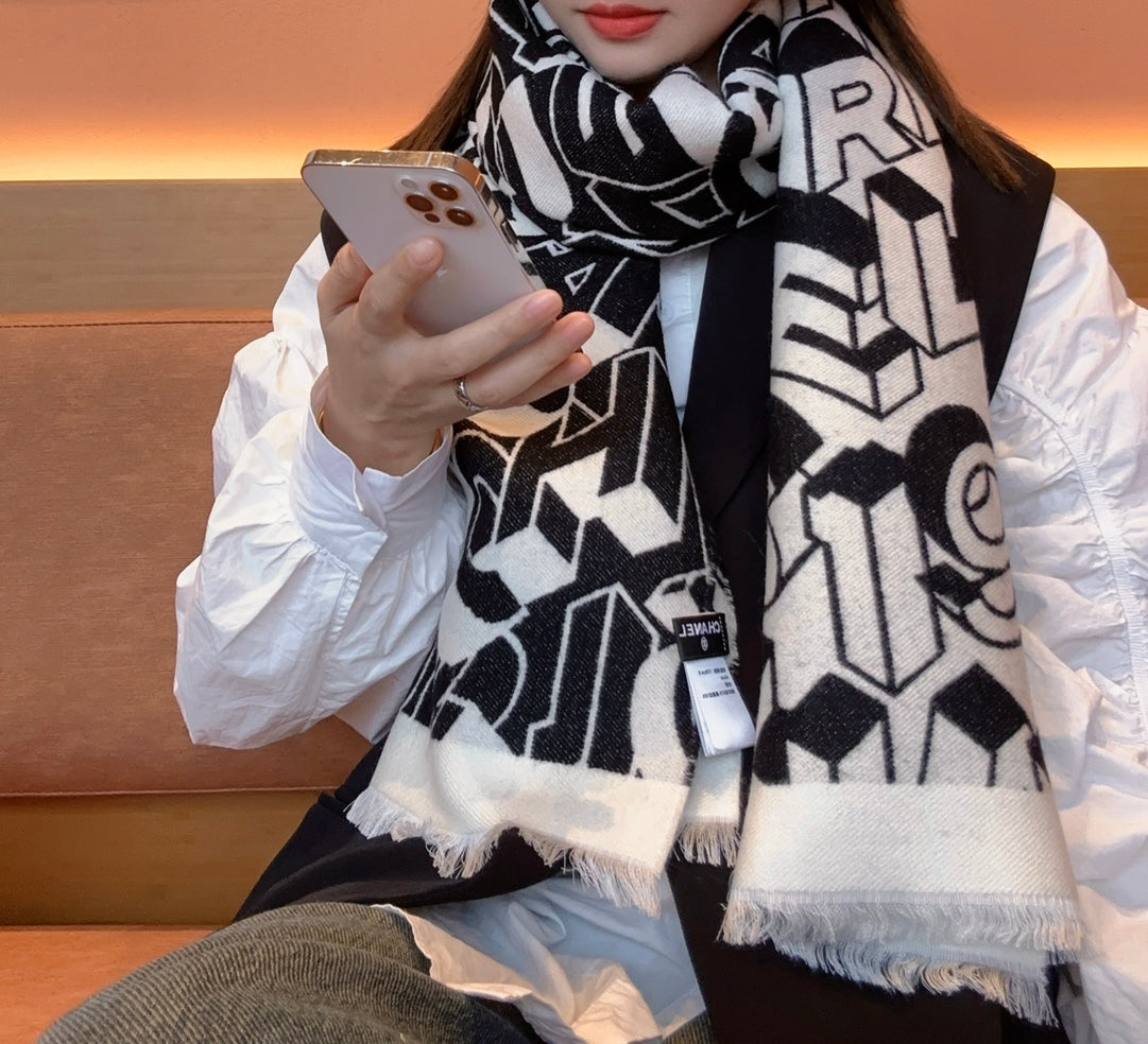CC Scarf 178CM In Black White Mulberry Silk Mix Wool 424845
