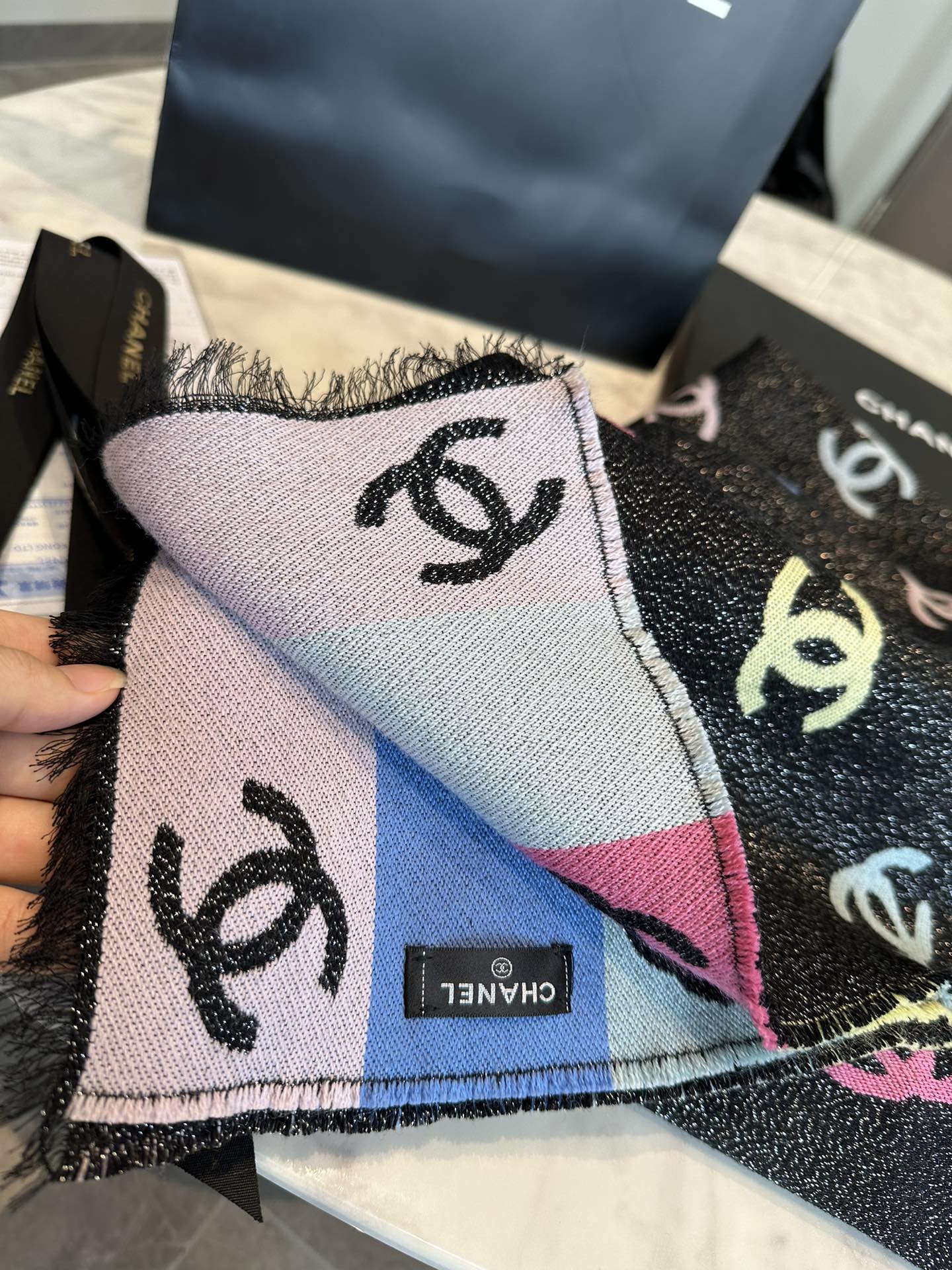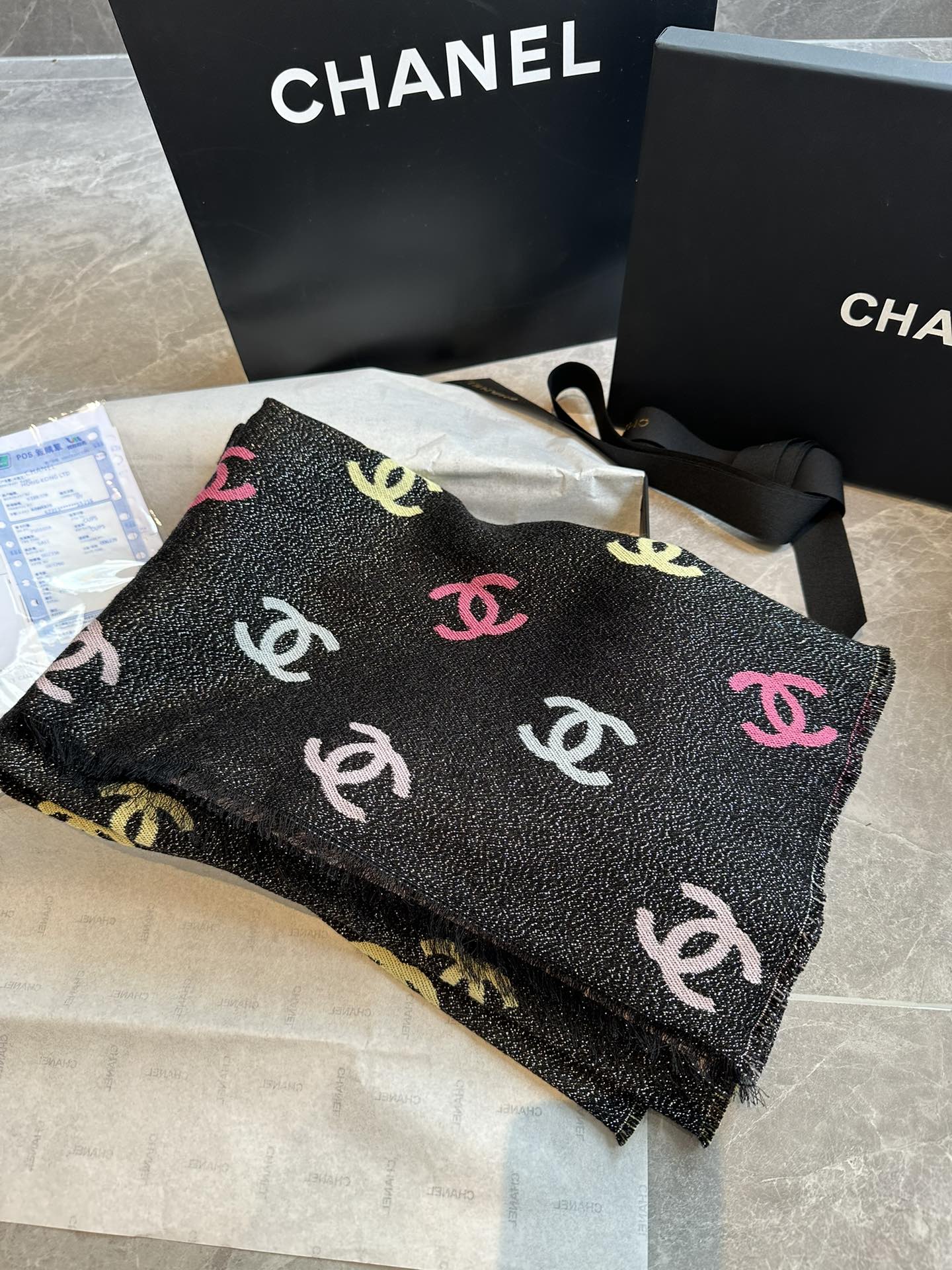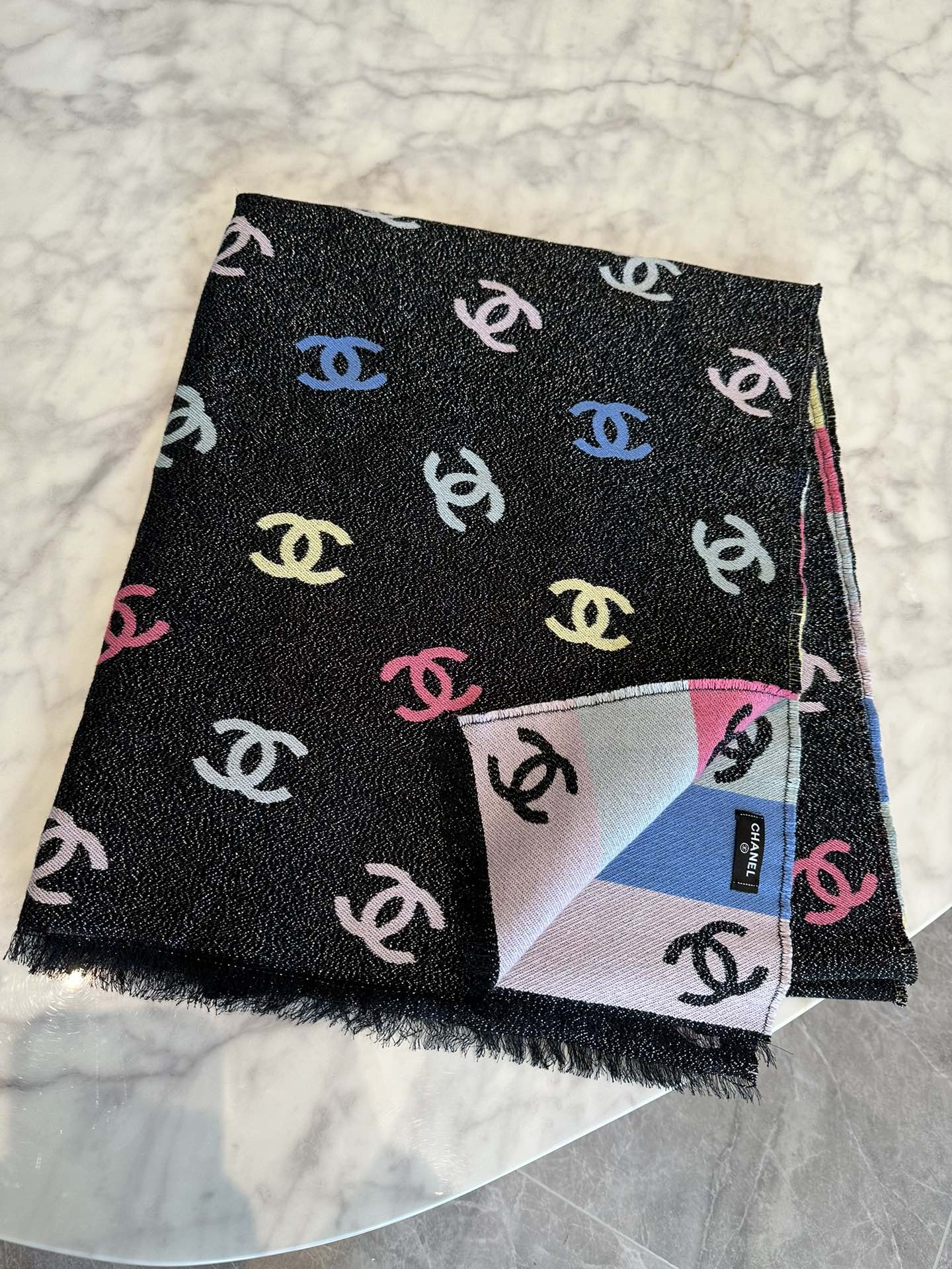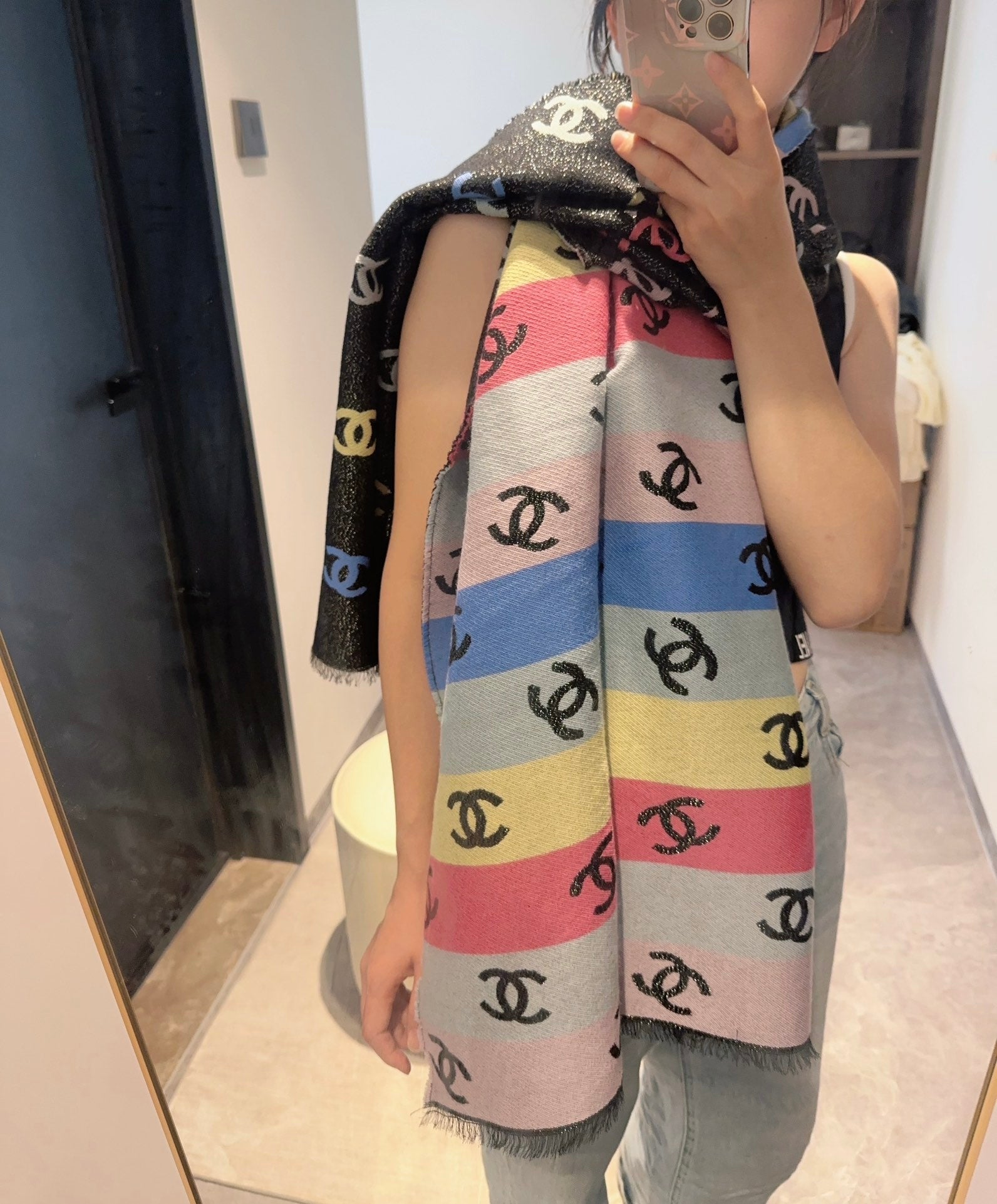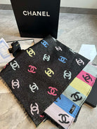 CC Scarf 180 CM In Black Mix Rainbow Cashmere And Wool Mix Mulberry Silk 340229