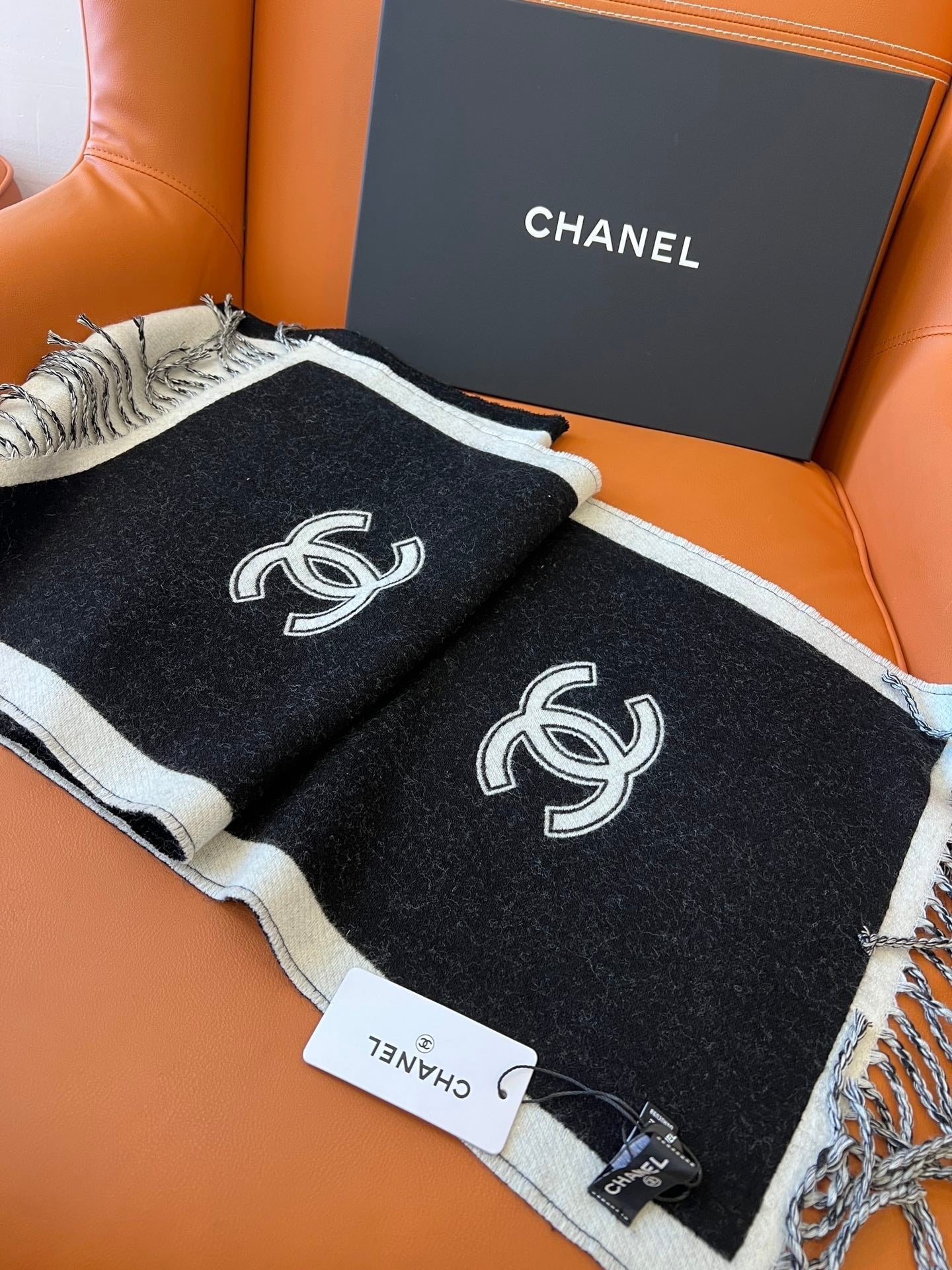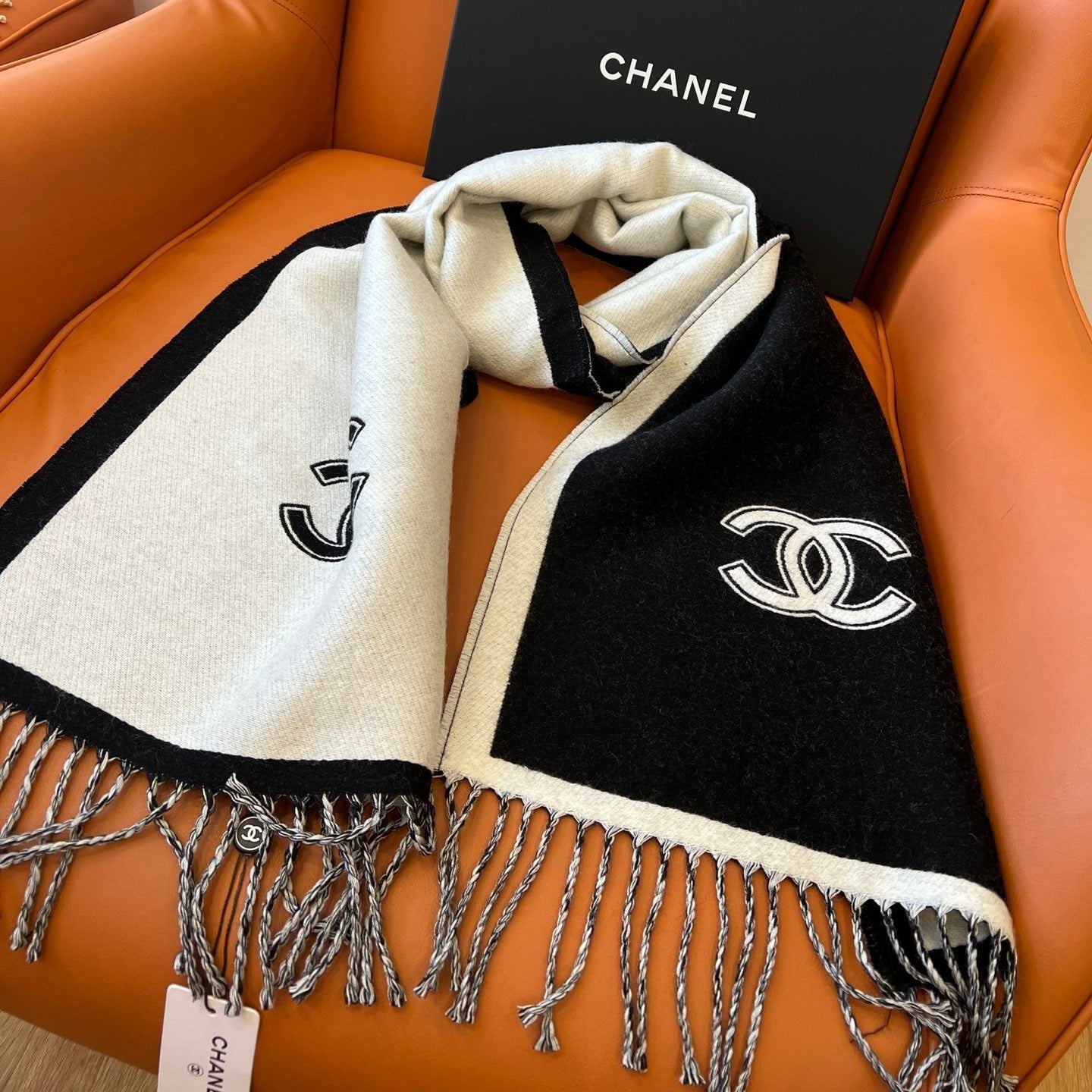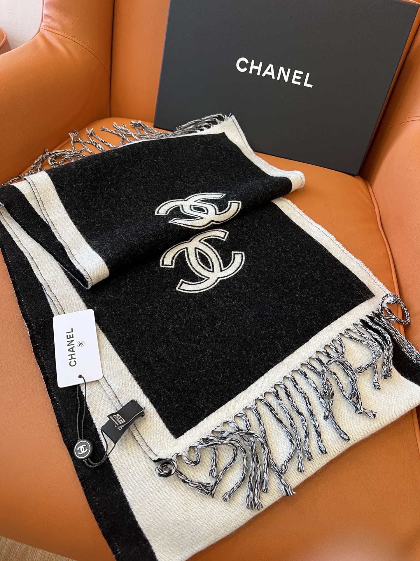 CC Scarf 184 CM In White Mix Black Wool Fleece 385533