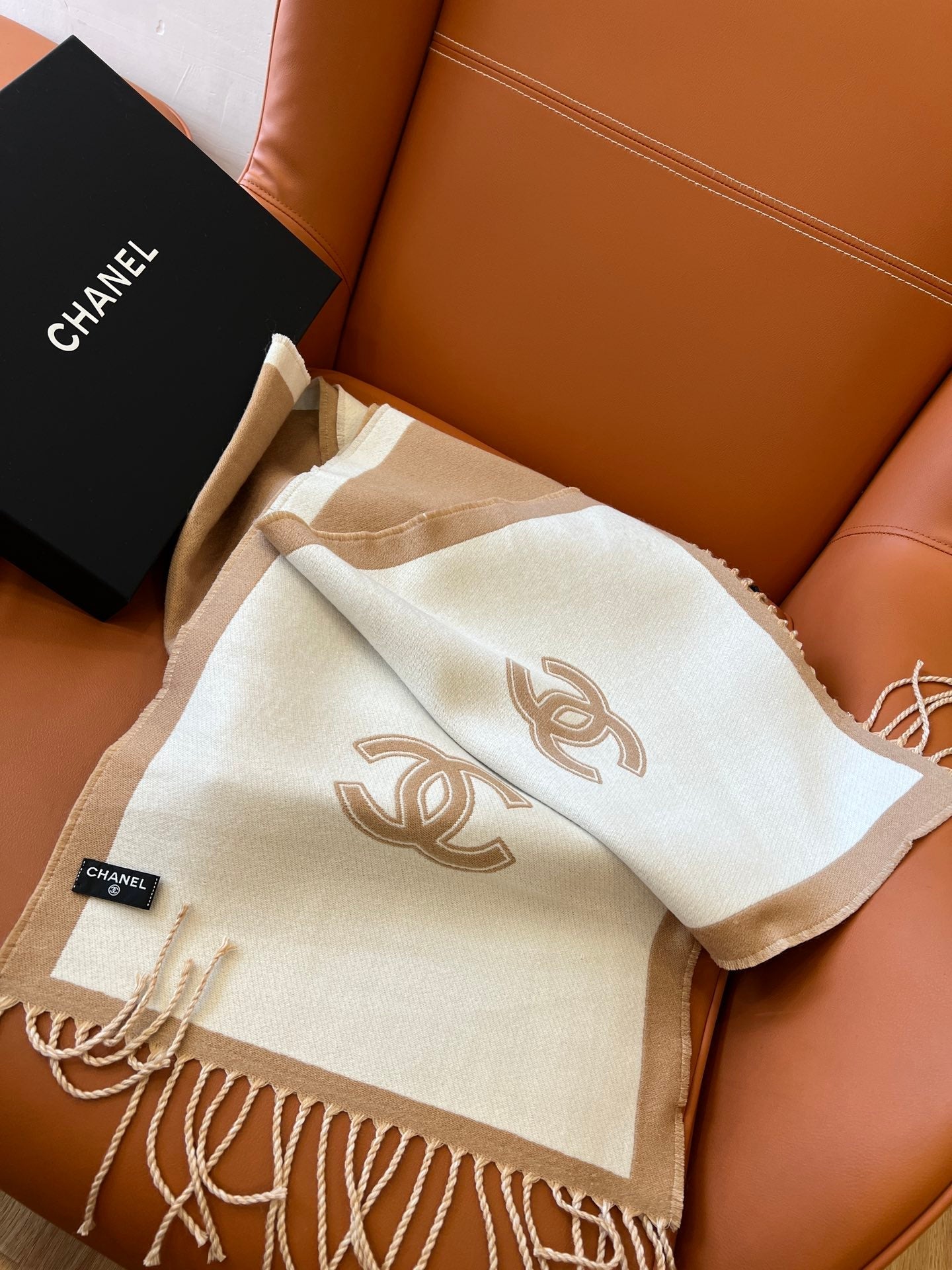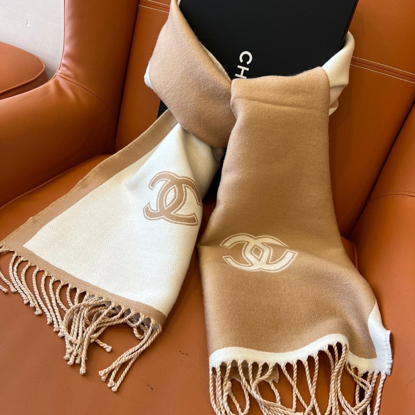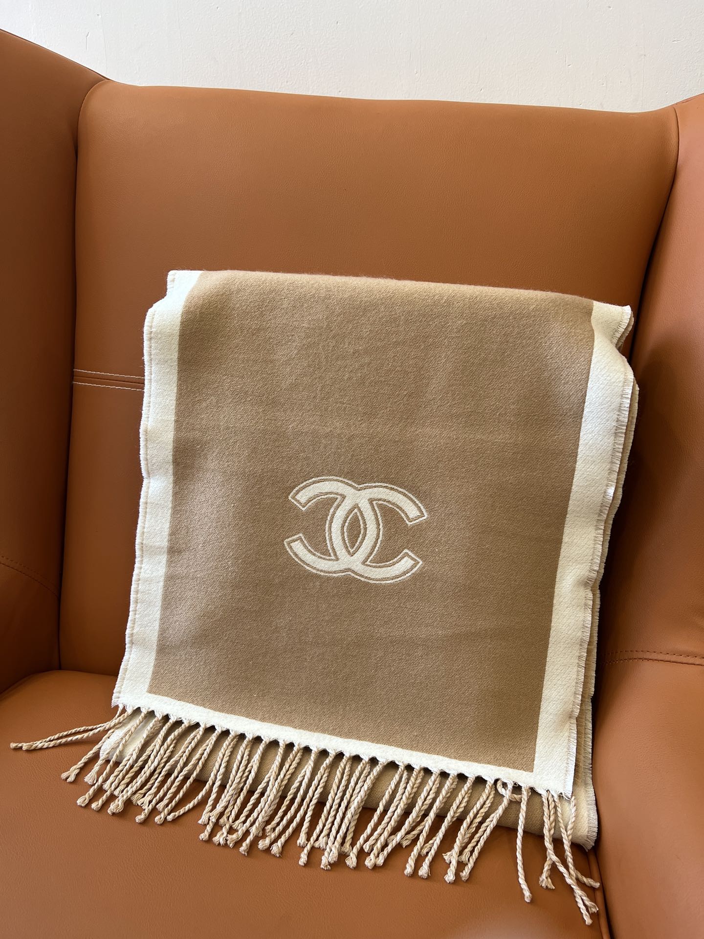 CC Scarf 184 CM In White Mix Brown Wool Fleece 385536