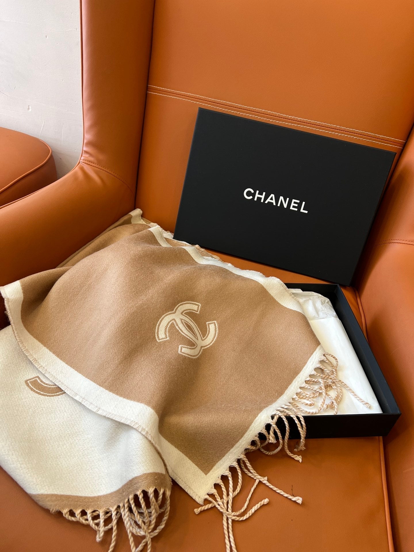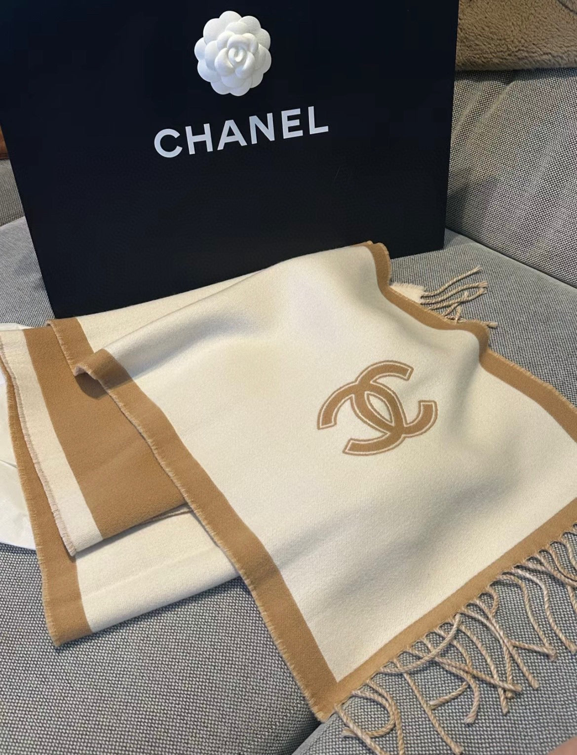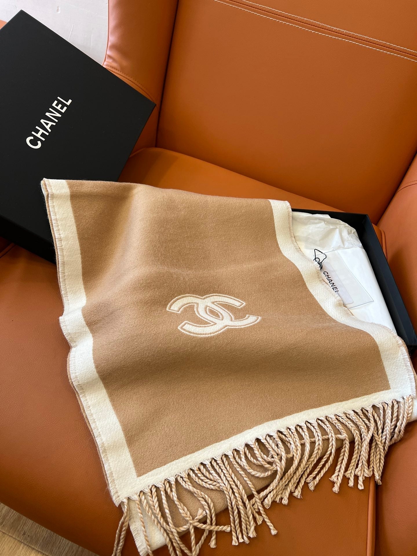 CC Scarf 184 CM In White Mix Brown Wool Fleece 385536
