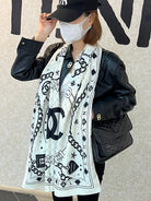 CC Scarf 185 CM White Black Cashmere Silk 418401