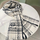 CC Scarf 186 CM In White With Black Stripes Fleece Wool 418245