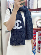 CC Scarf 190 CM In Charcoal Blue Mix White Cashmere 421408