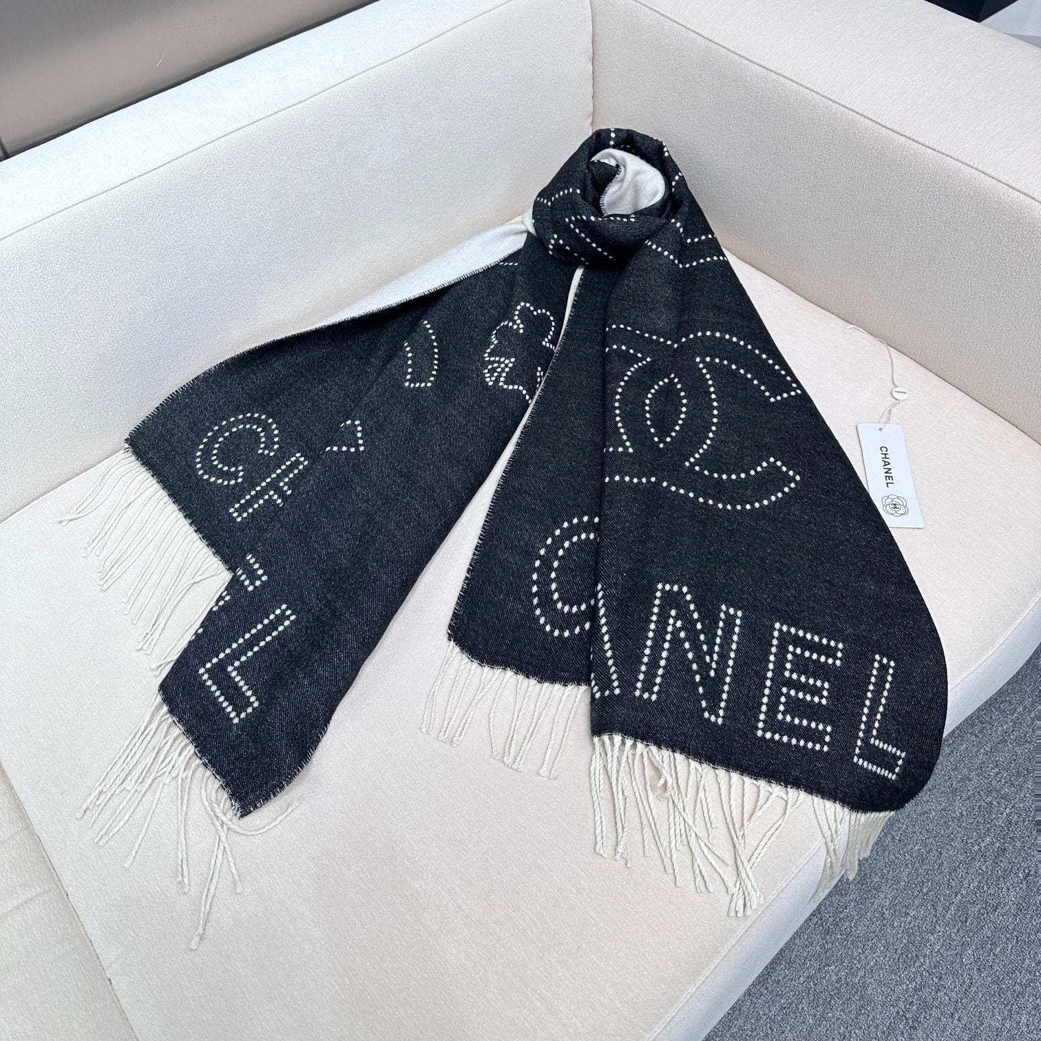 CC Scarf 200 CM In Black Mix White Cashmere 422706