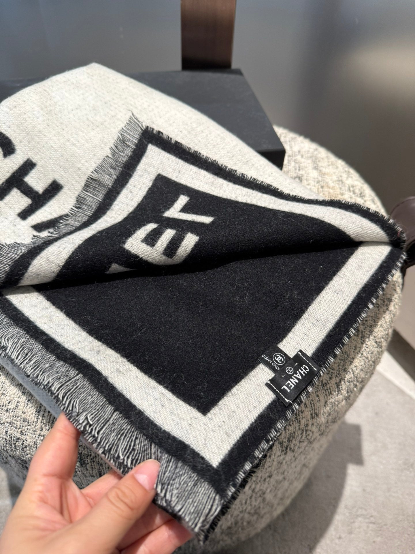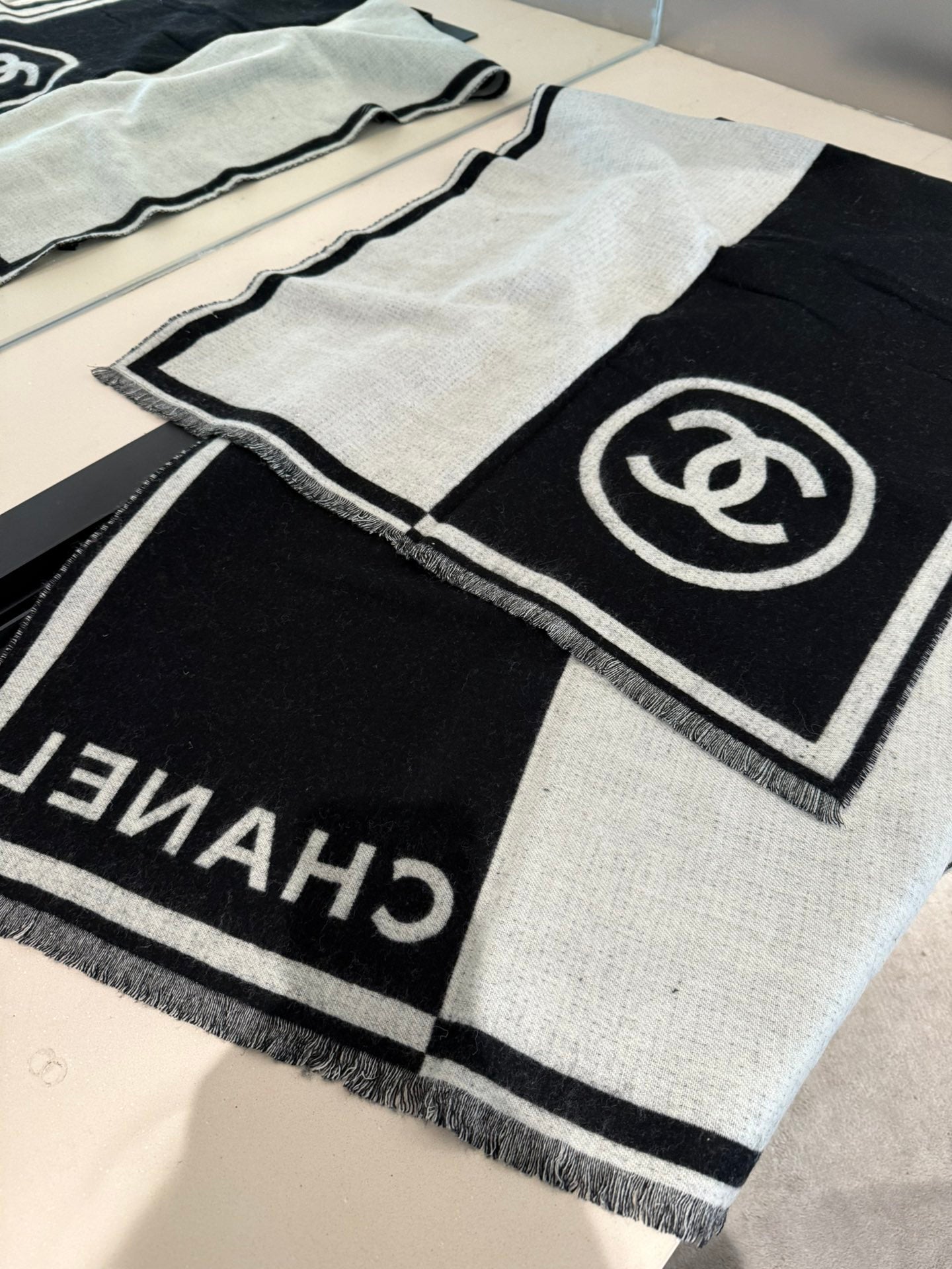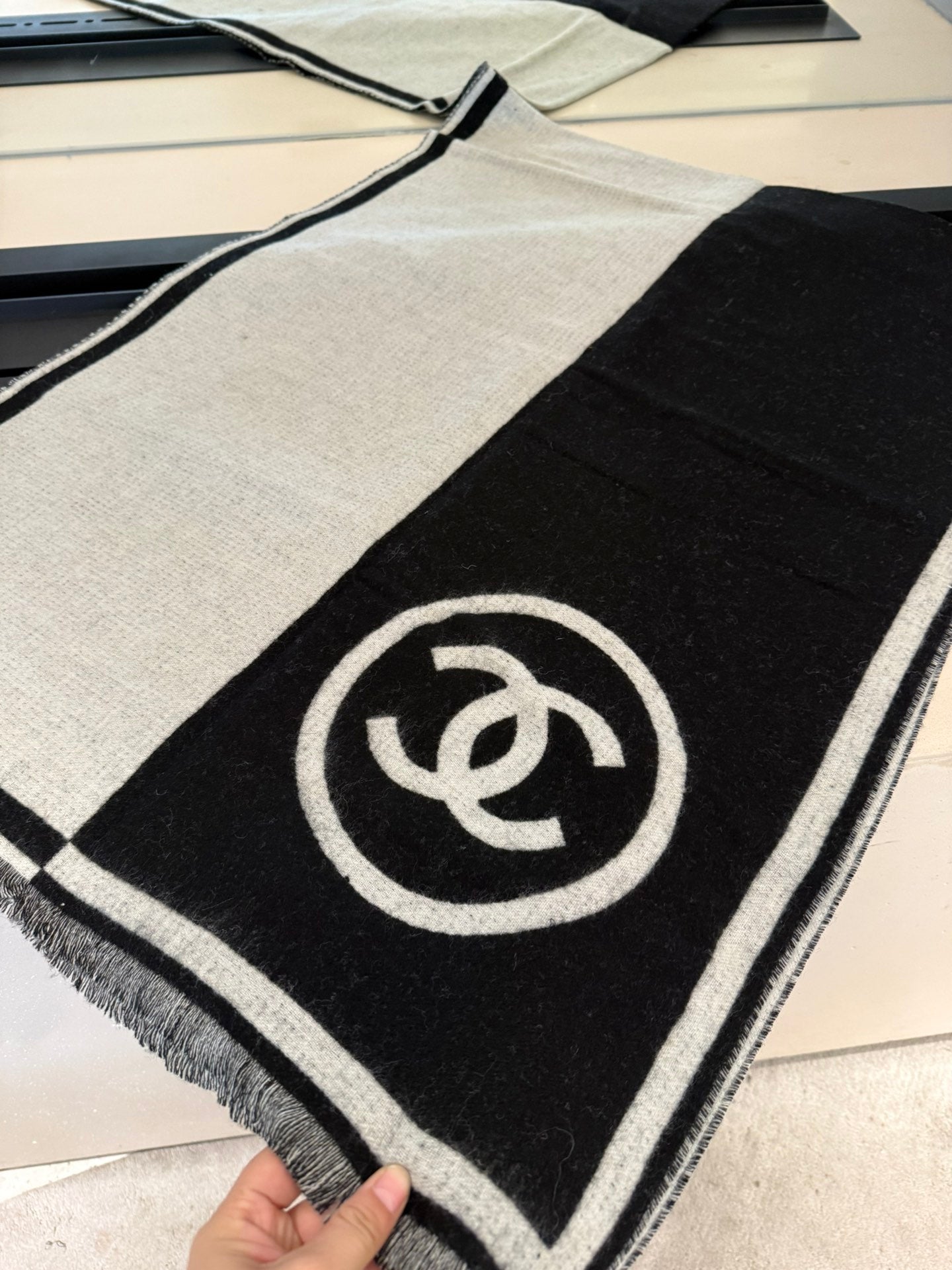 CC Scarf 200 CM In Black Mix White Cashmere 422916