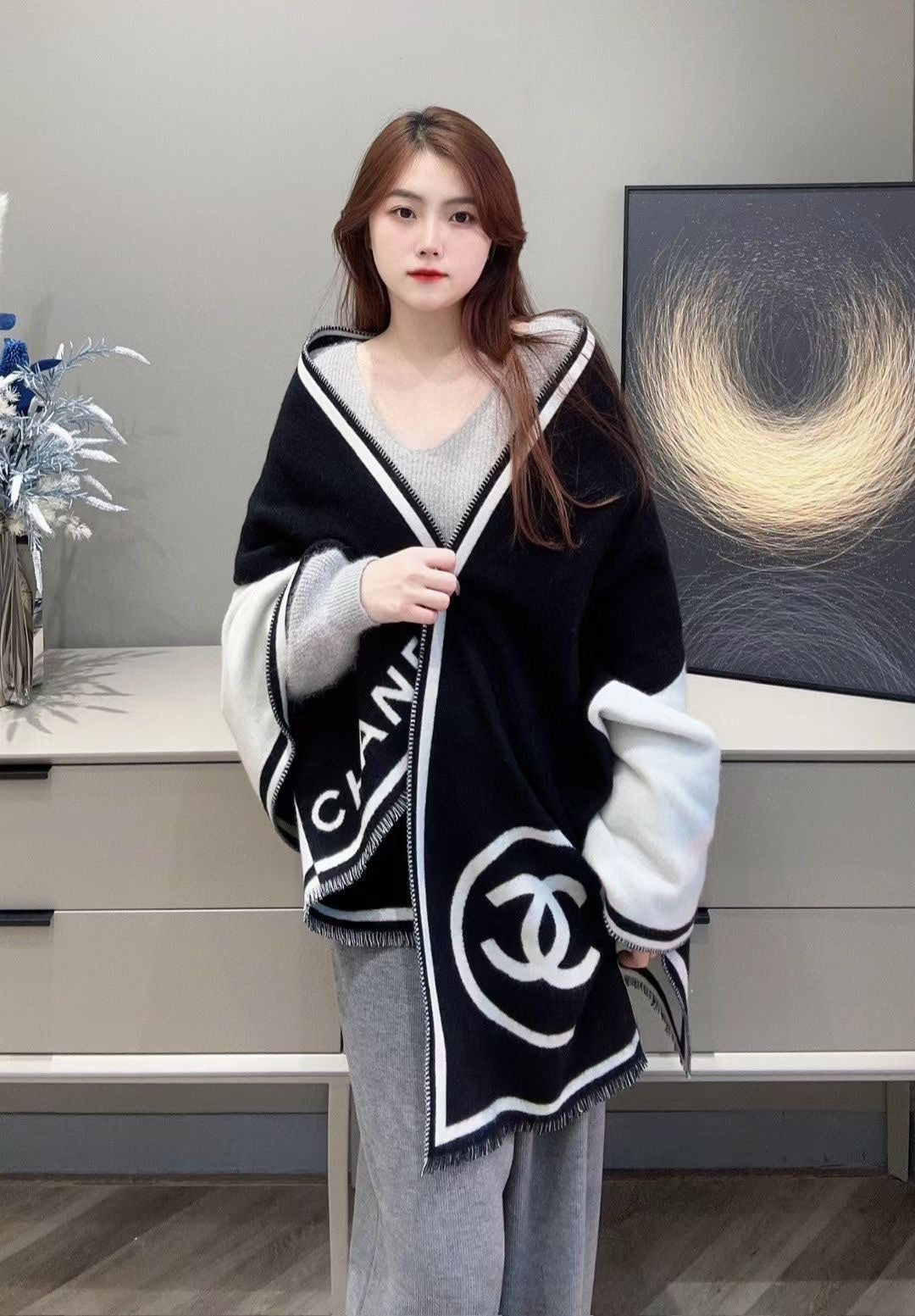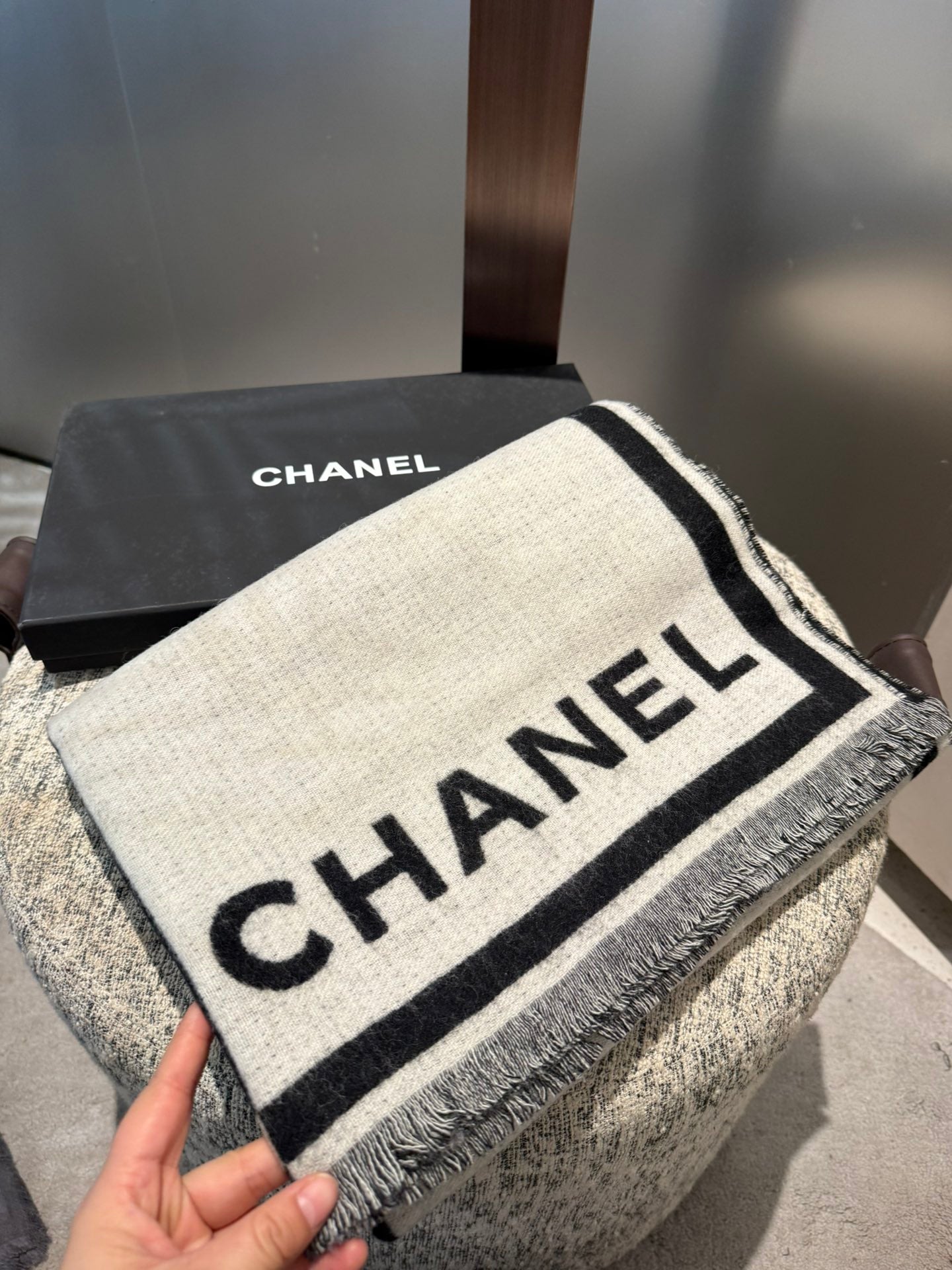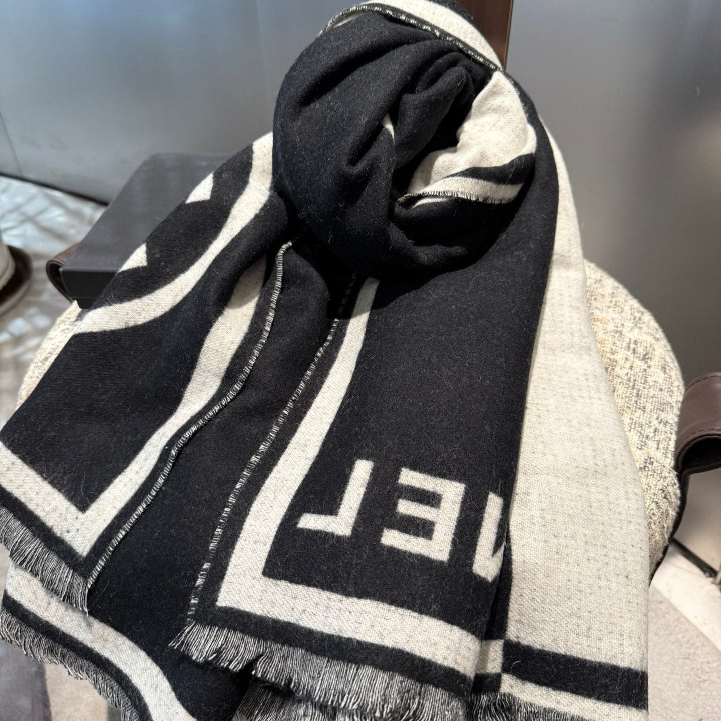 CC Scarf 200 CM In Black Mix White Cashmere 422916