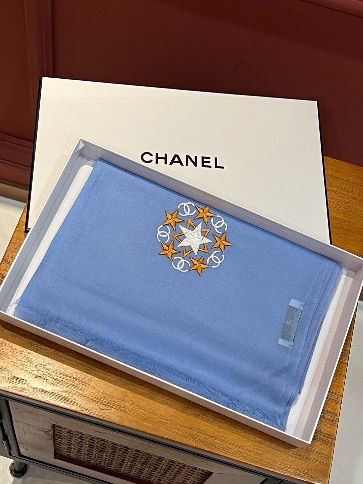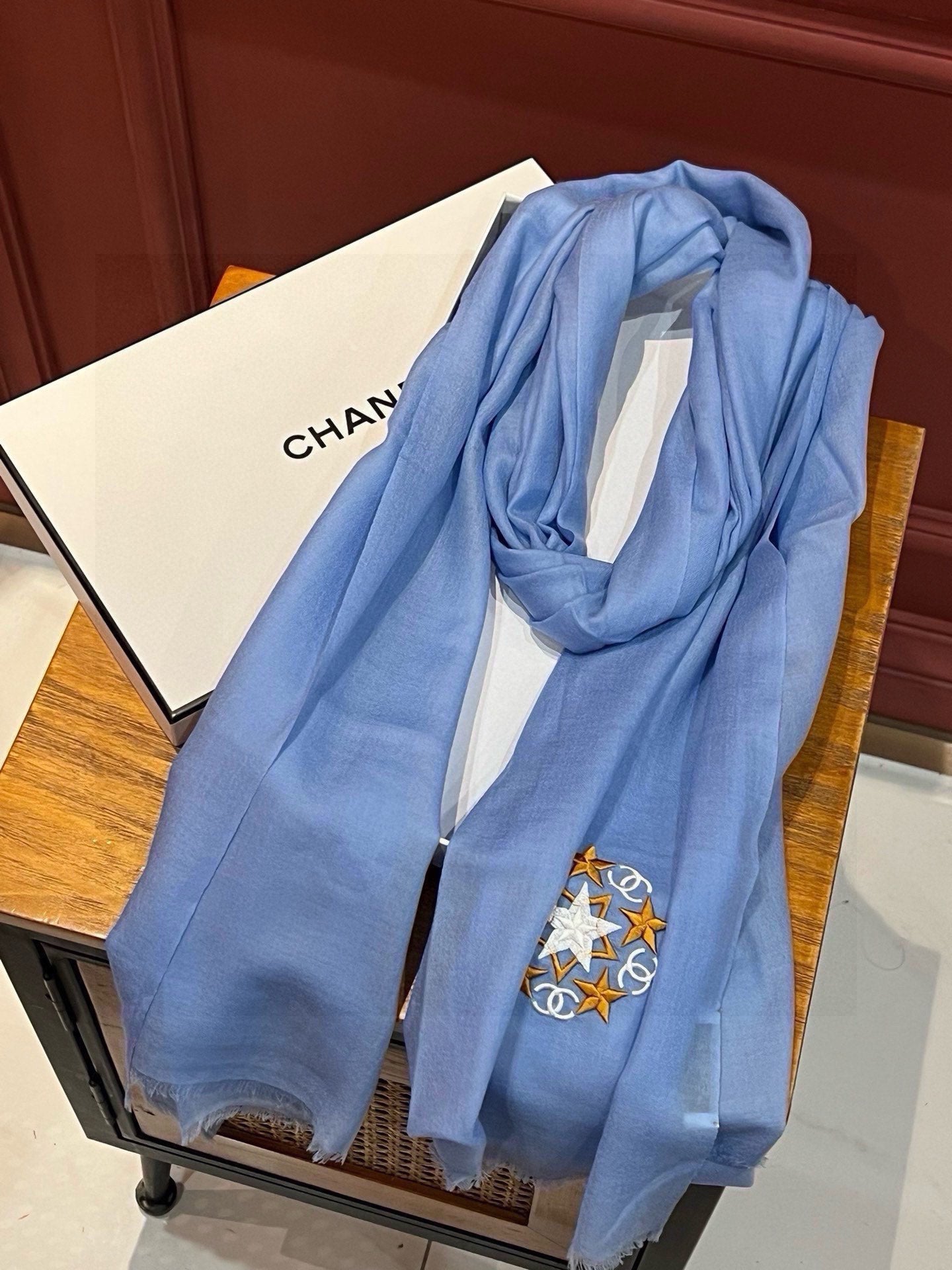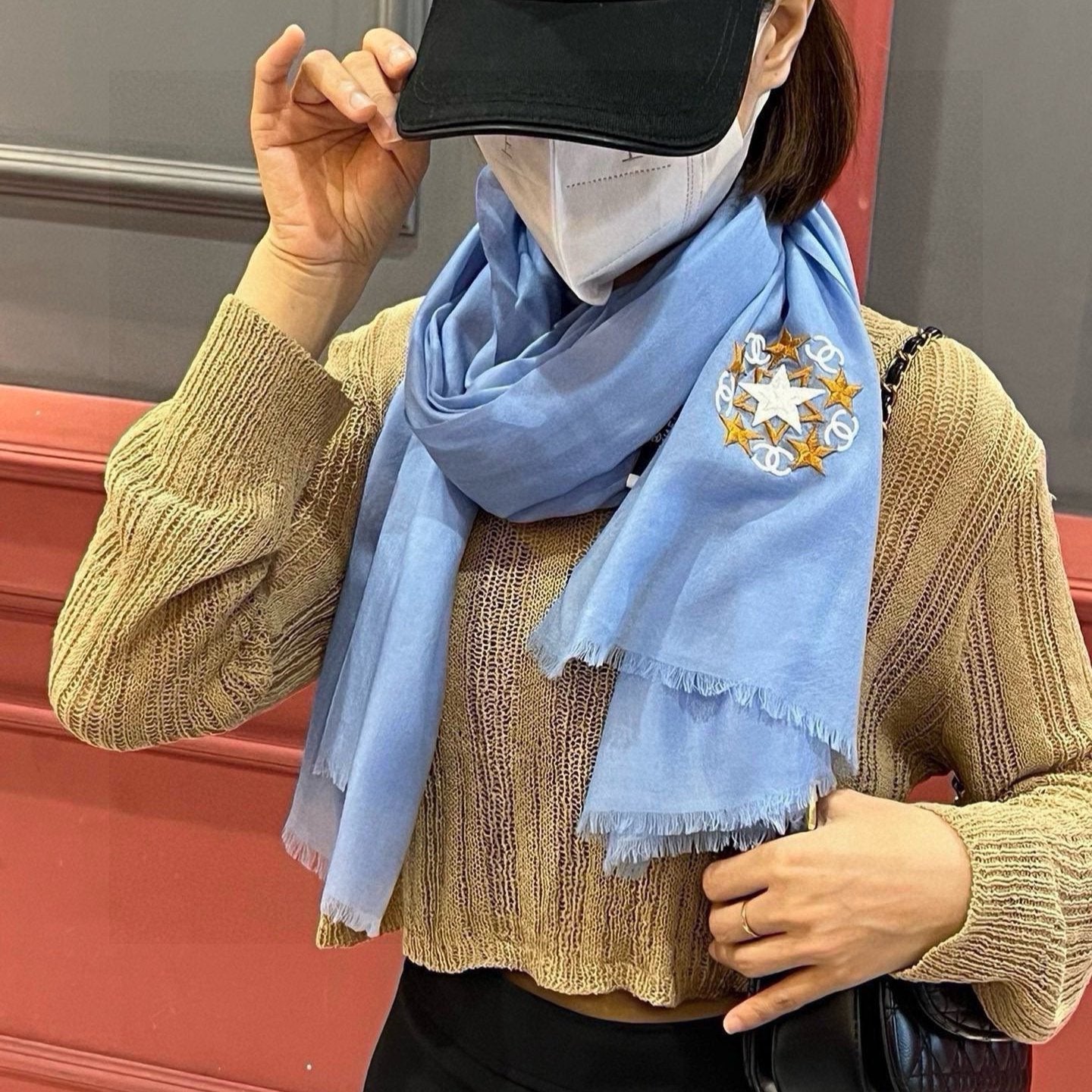 CC Scarf 200 CM In Blue Linen Fabric 407087