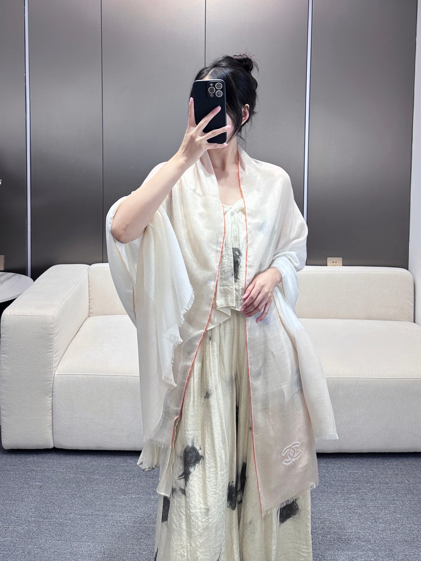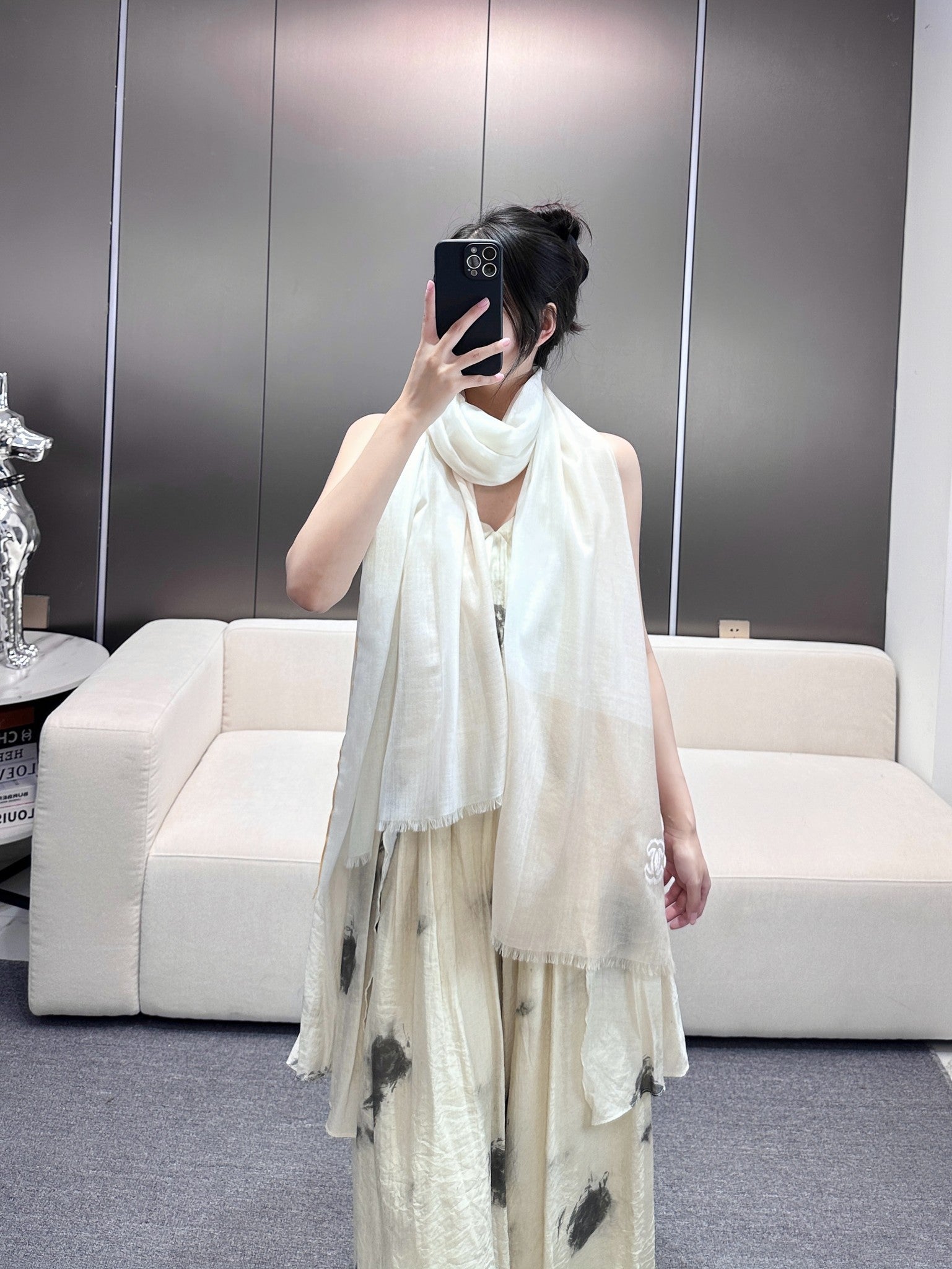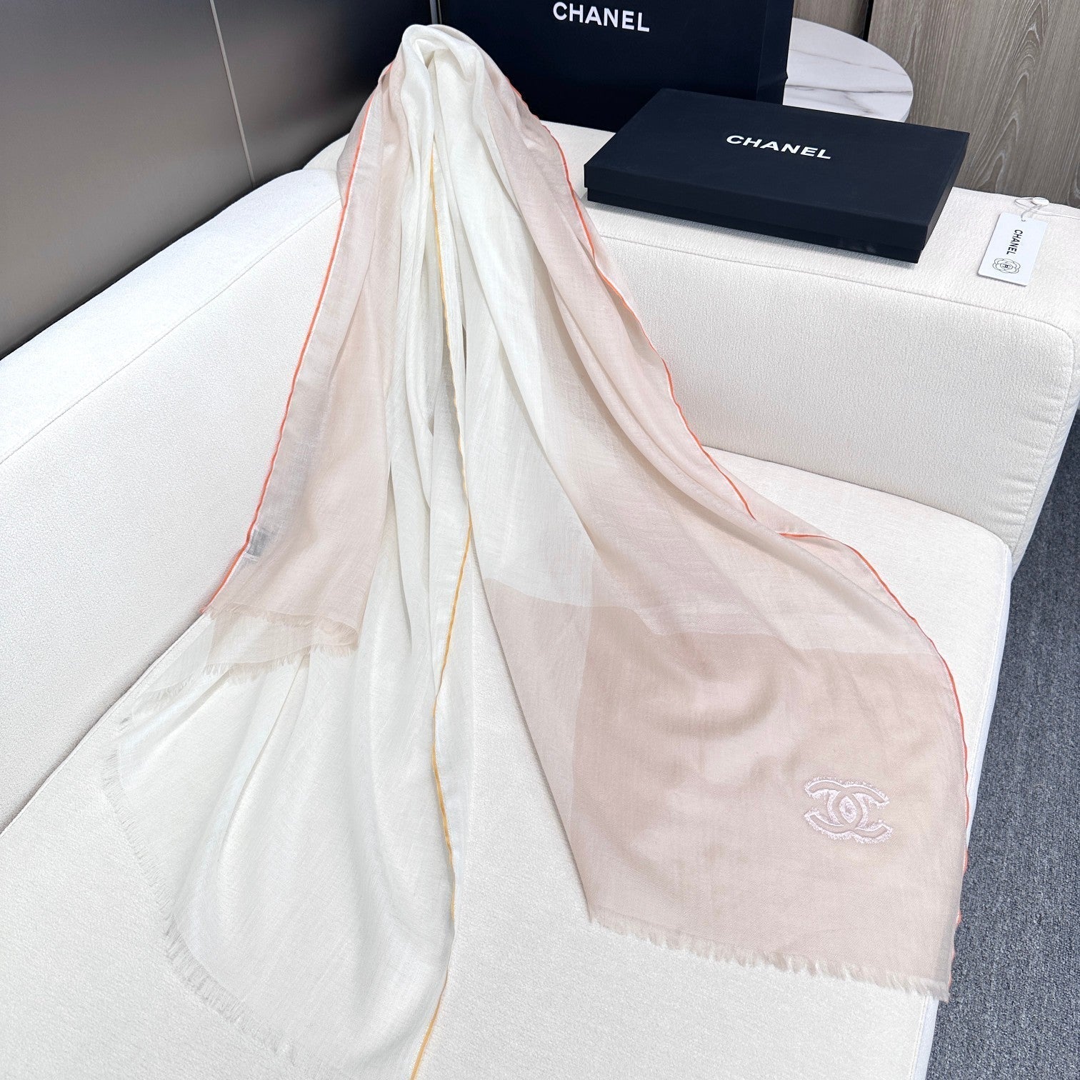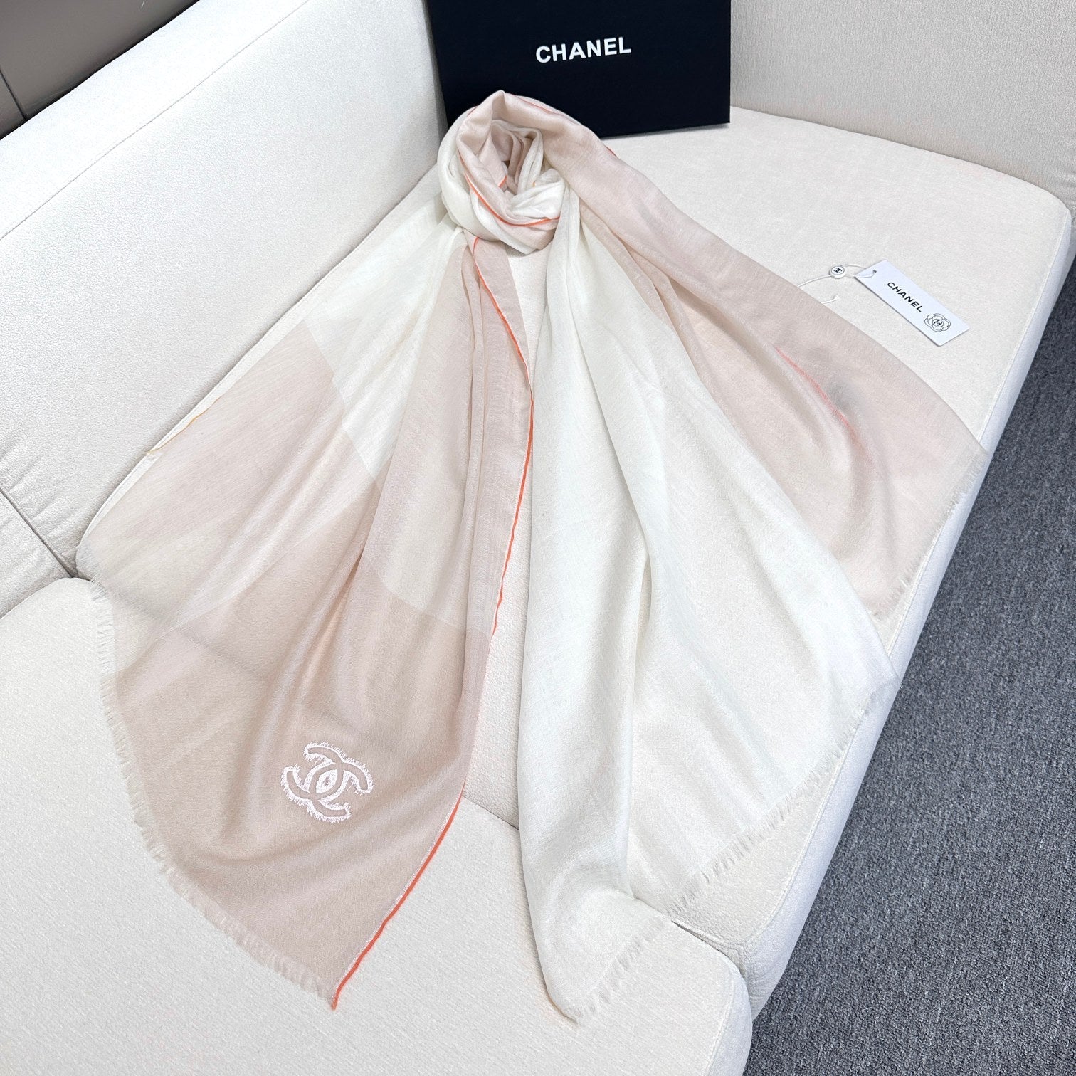CC Scarf 200 CM In White Mix Beige Light Linen Fabric 418194