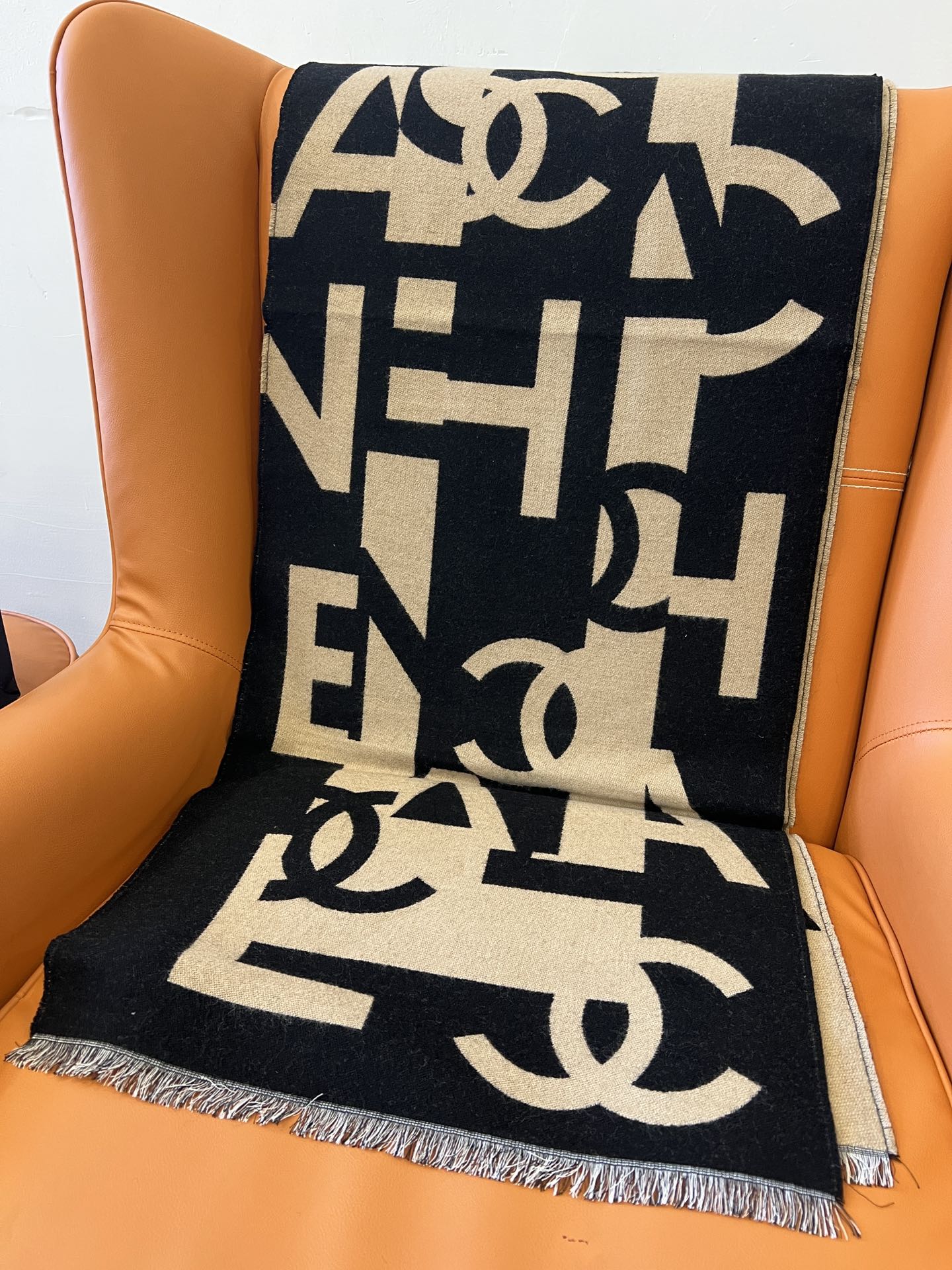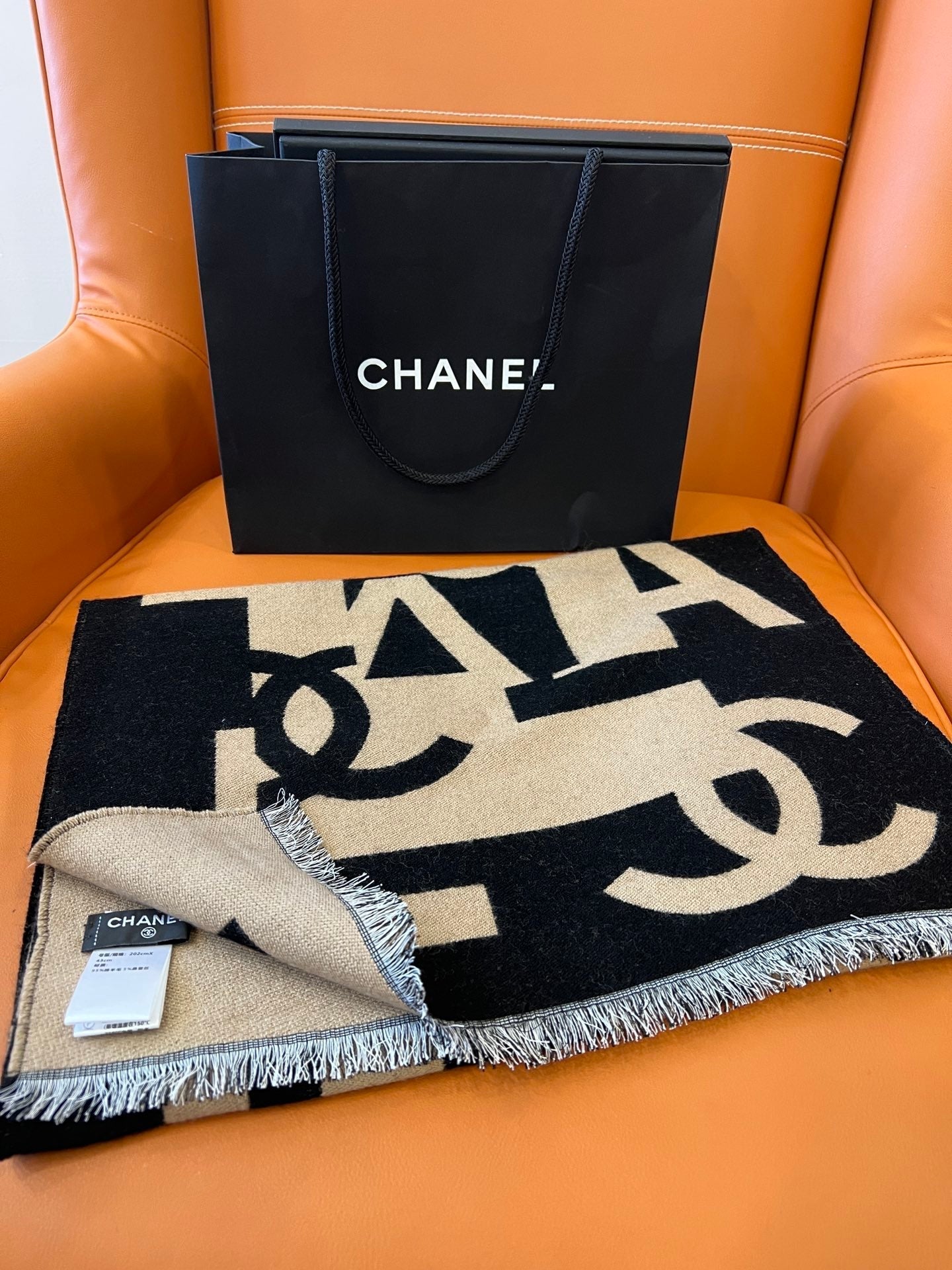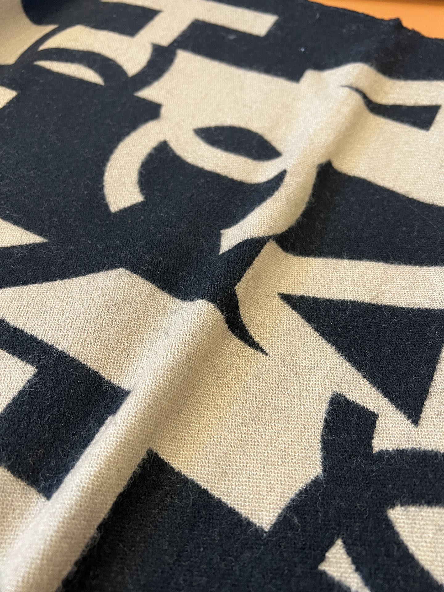 CC Scarf 202 CM In Black Mix Dark Beige Fleece Wool And Mulberry Silk 335914