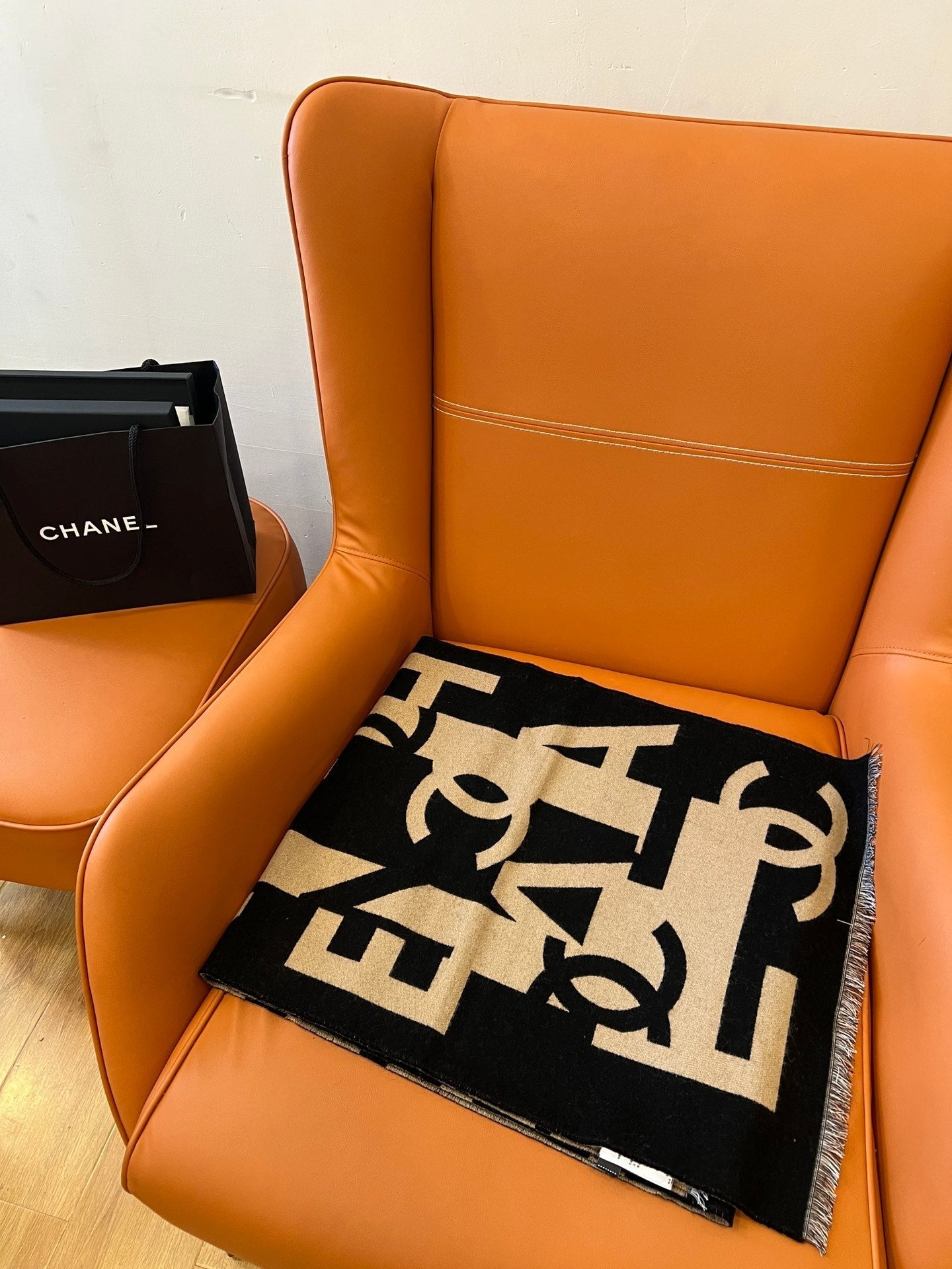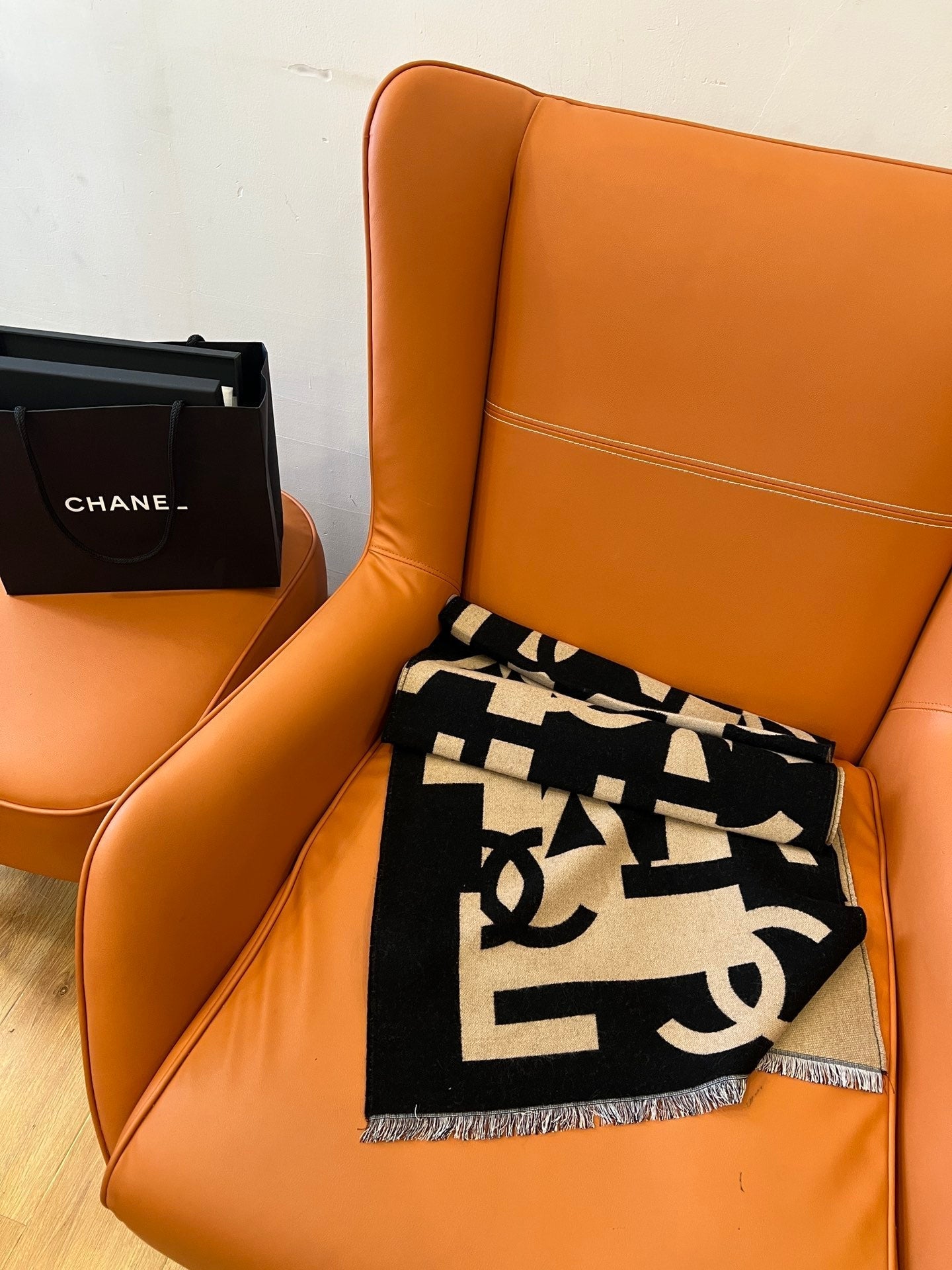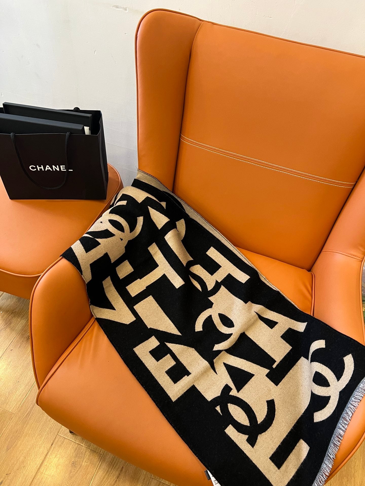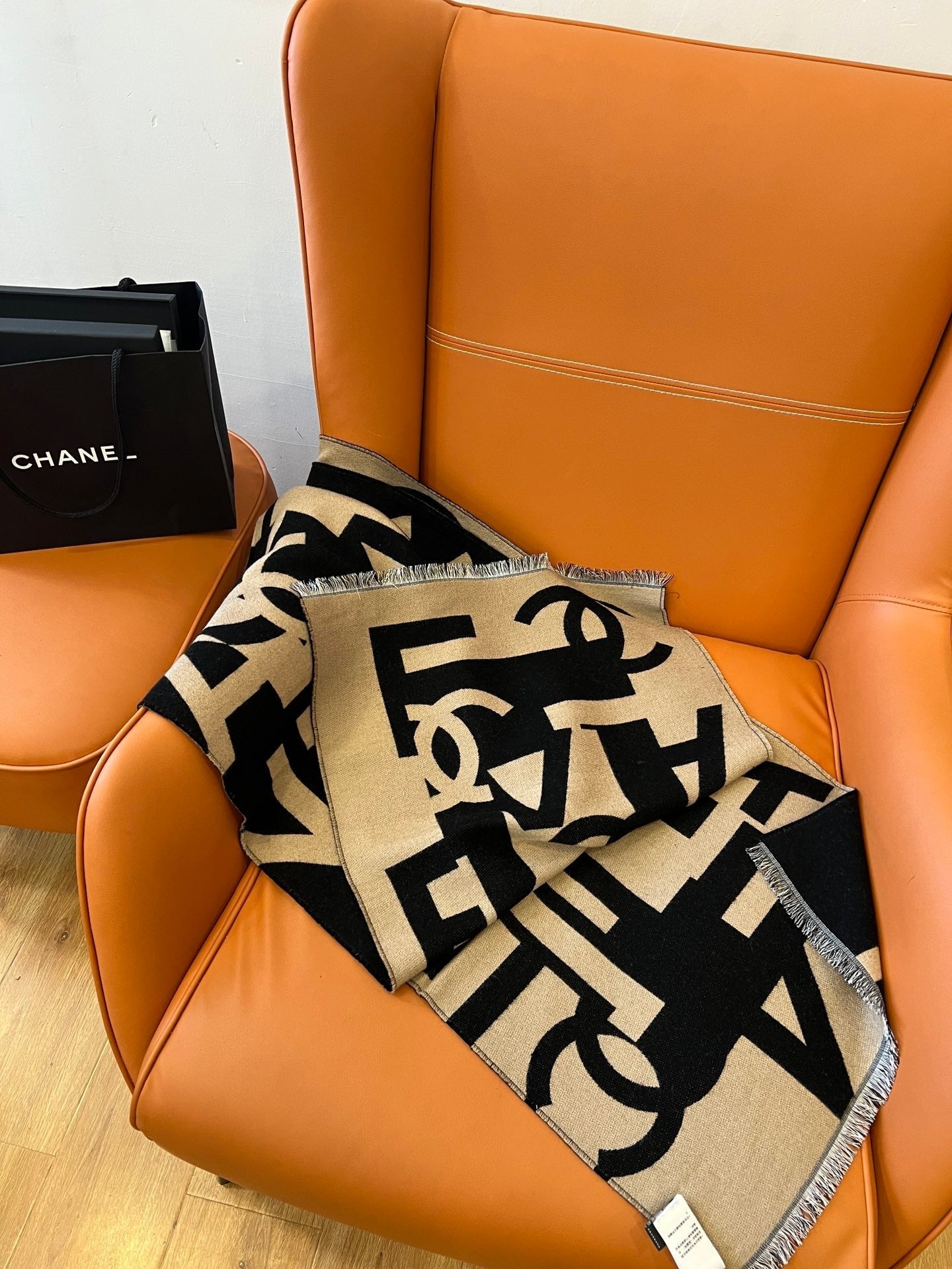 CC Scarf 202 CM In Black Mix Dark Beige Fleece Wool And Mulberry Silk 335914
