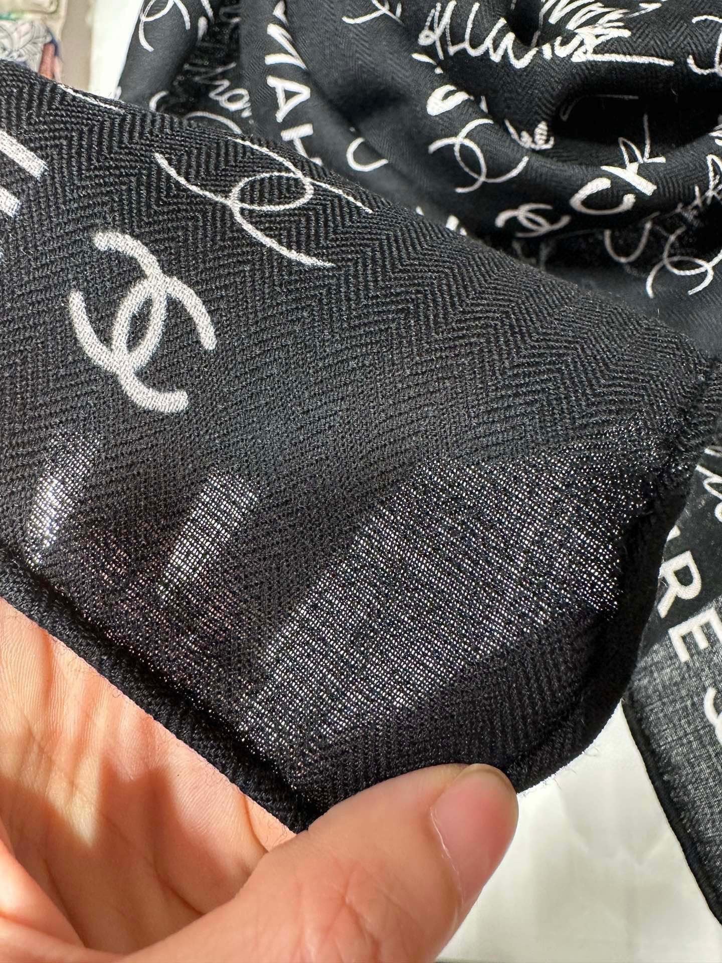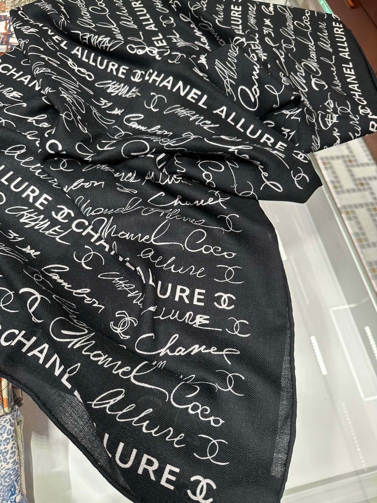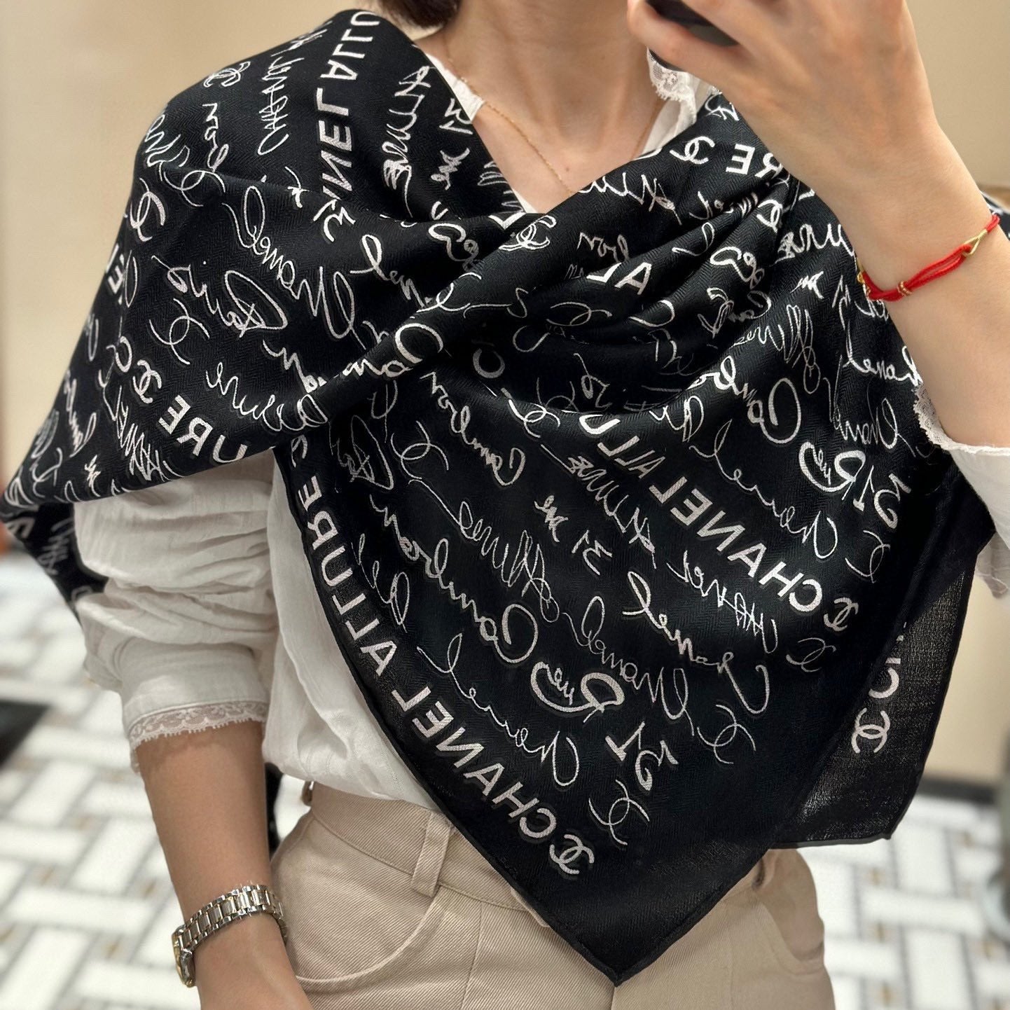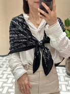 CC Square Scarf 110 CM In Black With White Text Cashmere Silk 320584