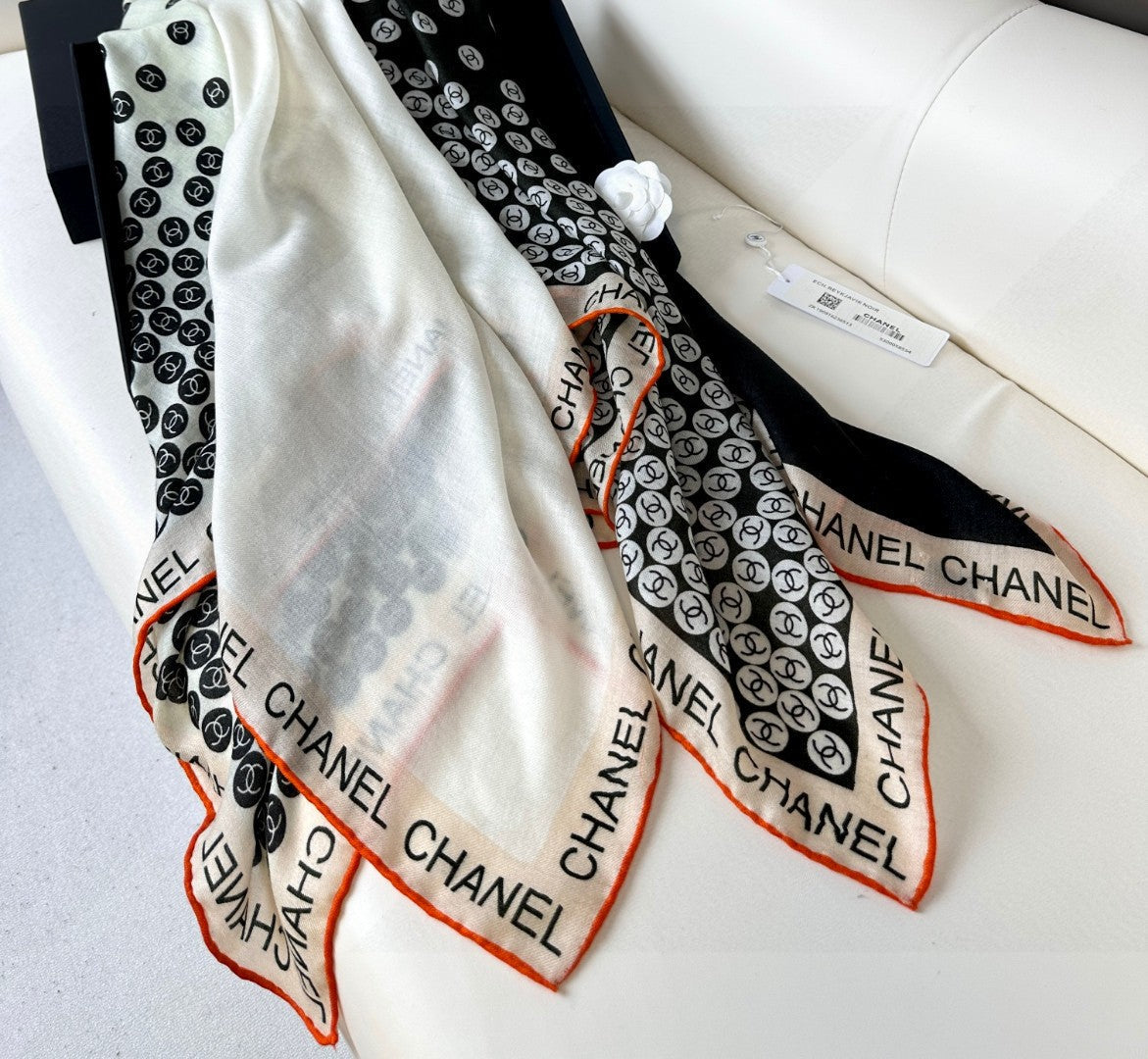 CC Square Scarf 140 CM In Black Mix White Cashmere 390937