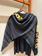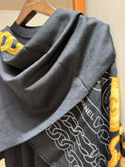 CC Square Scarf 140 CM In Black Mix Yellow White Velvet Fabric 420128