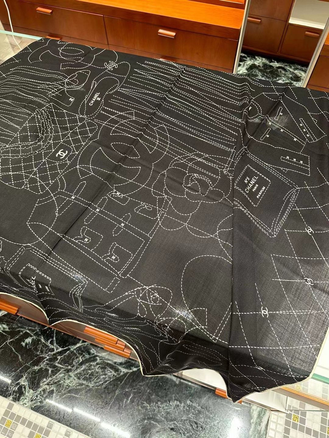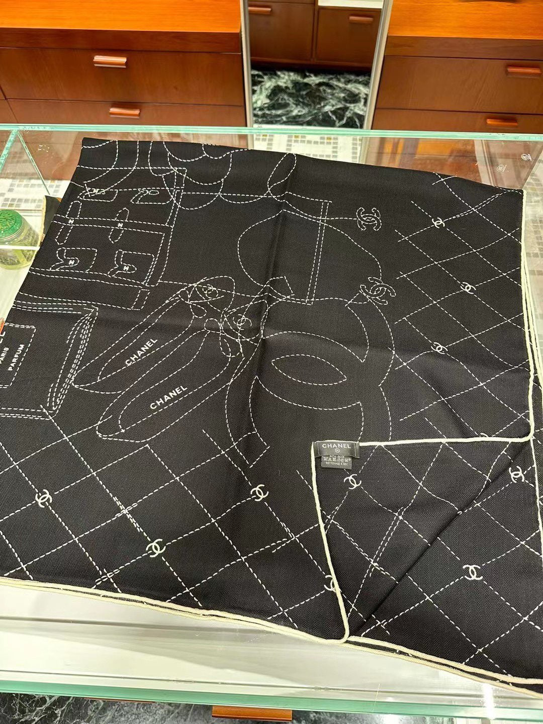 CC Square Scarf 140 CM In Black White Cashmere Silk 359322