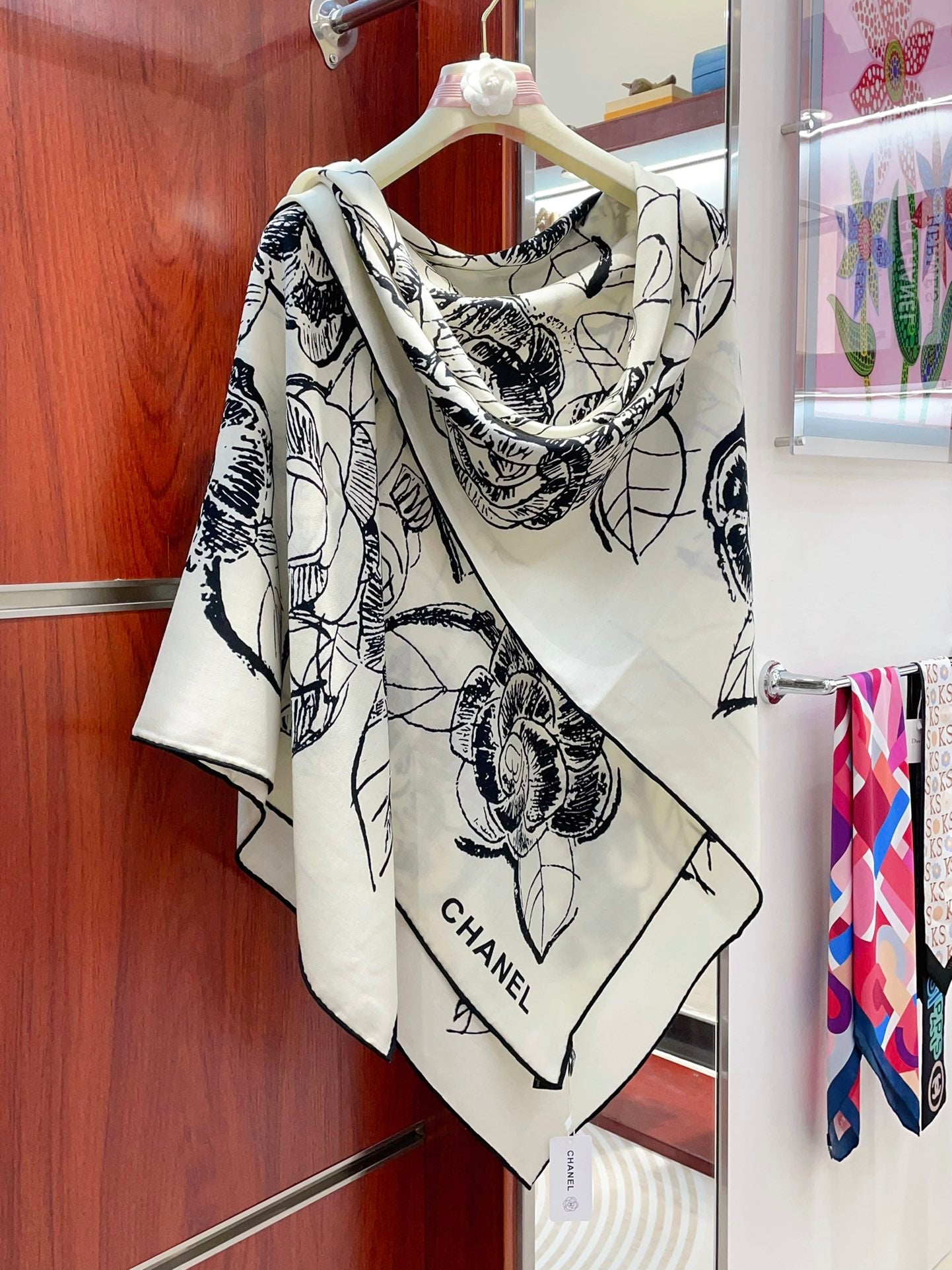 CC Square Scarf 140 CM In White Black Cashmere And Silk 416900