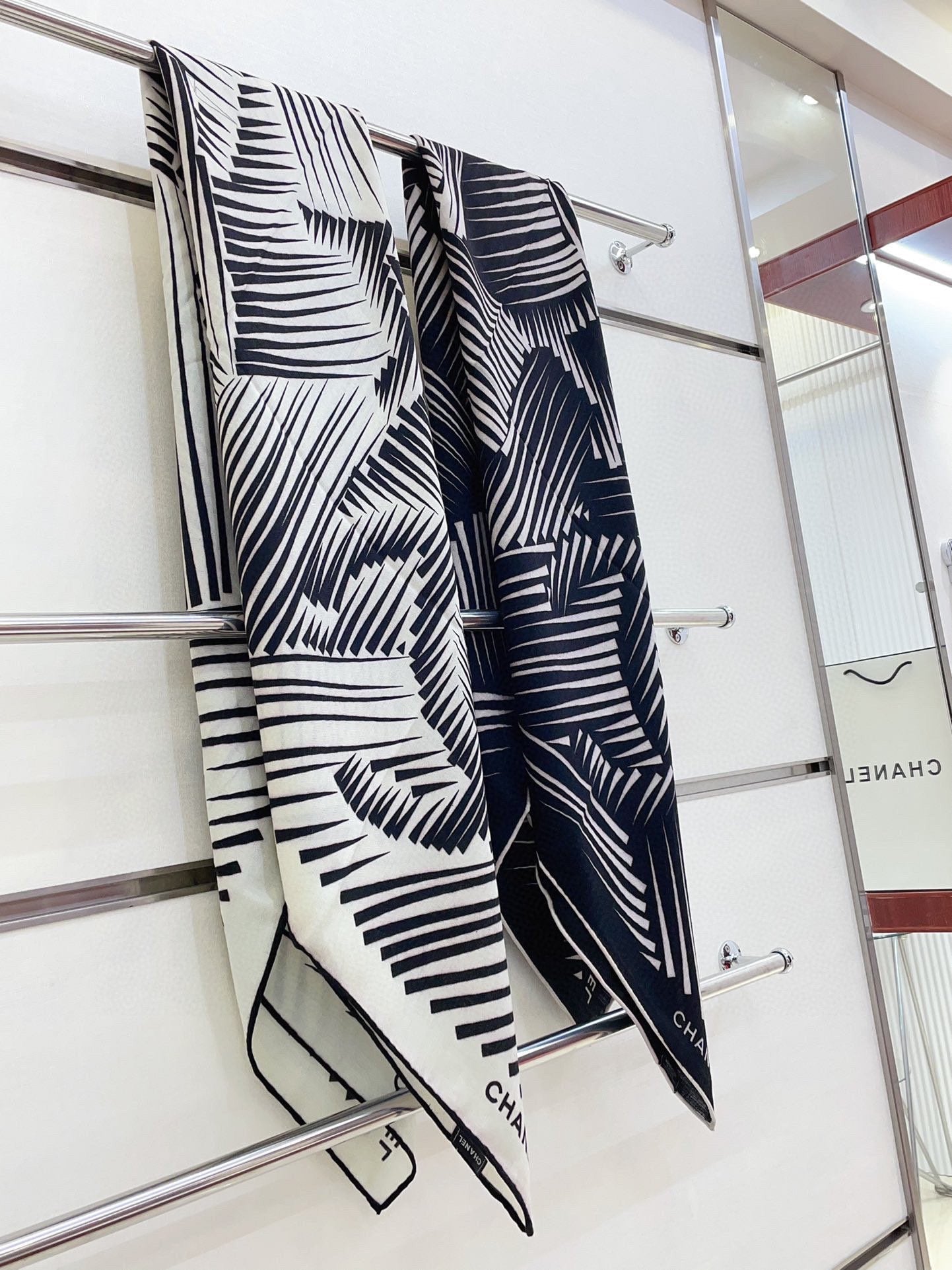 CC Square Scarf 140 CM In White Black Cashmere Mix Silk 382616