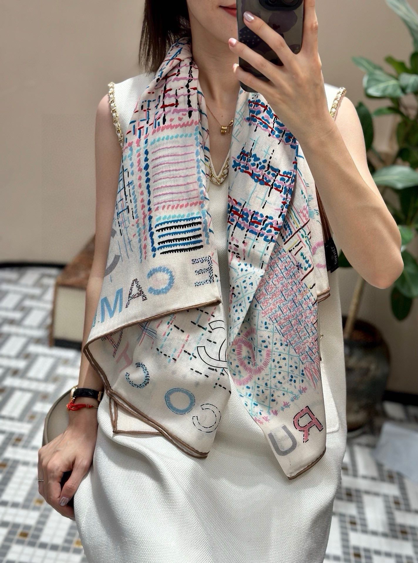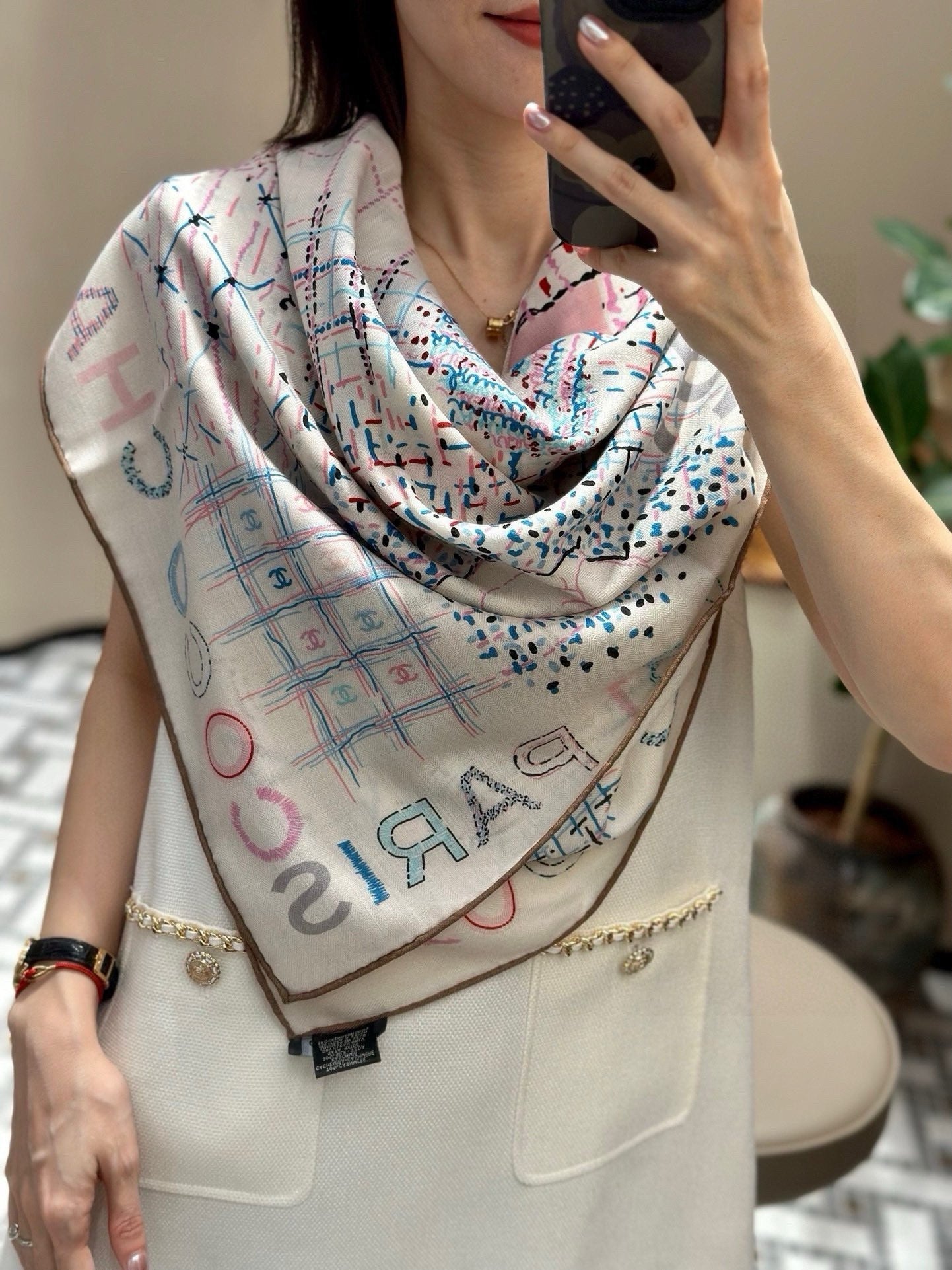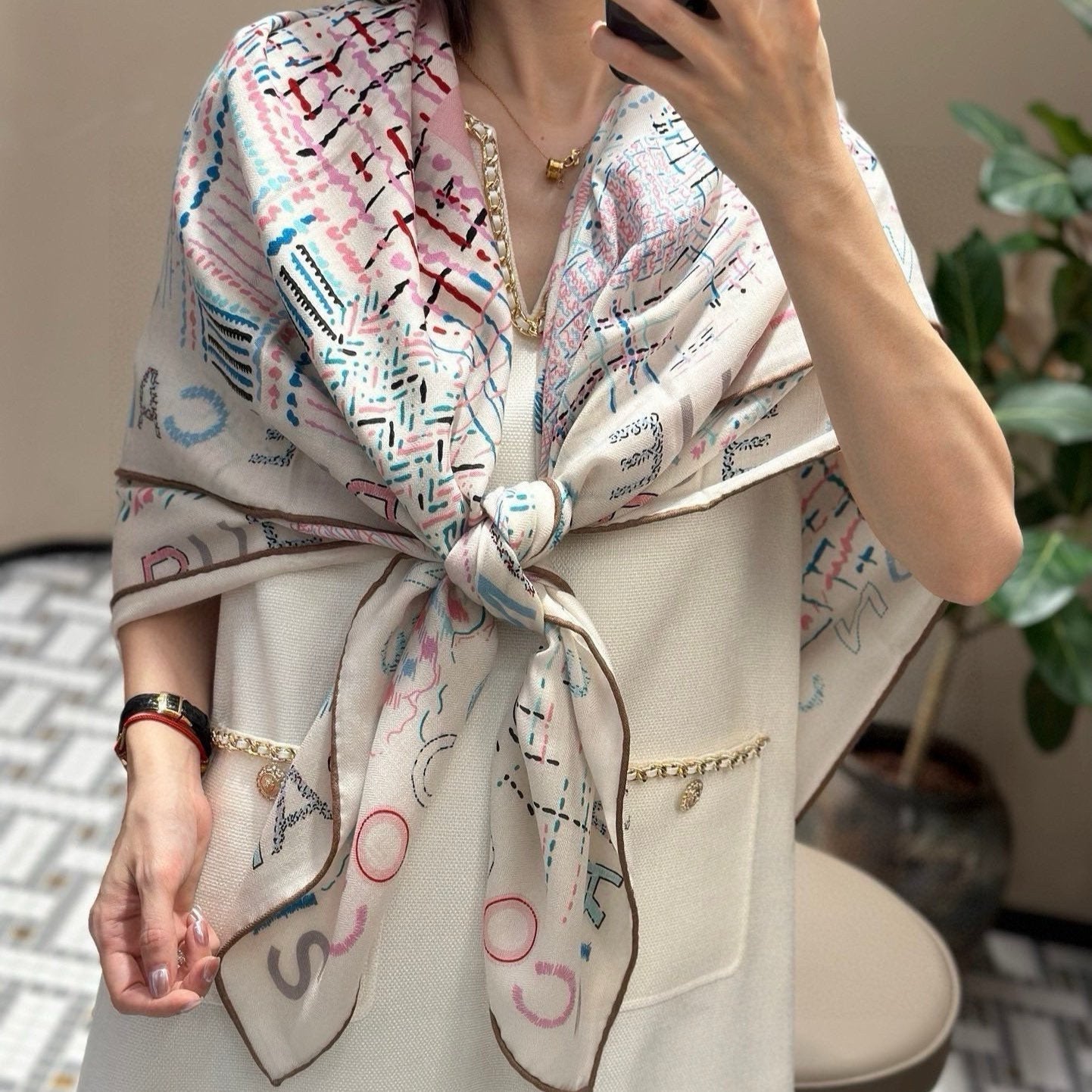 CC Square Scarf 140 CM In White Colorful Cashmere 182446