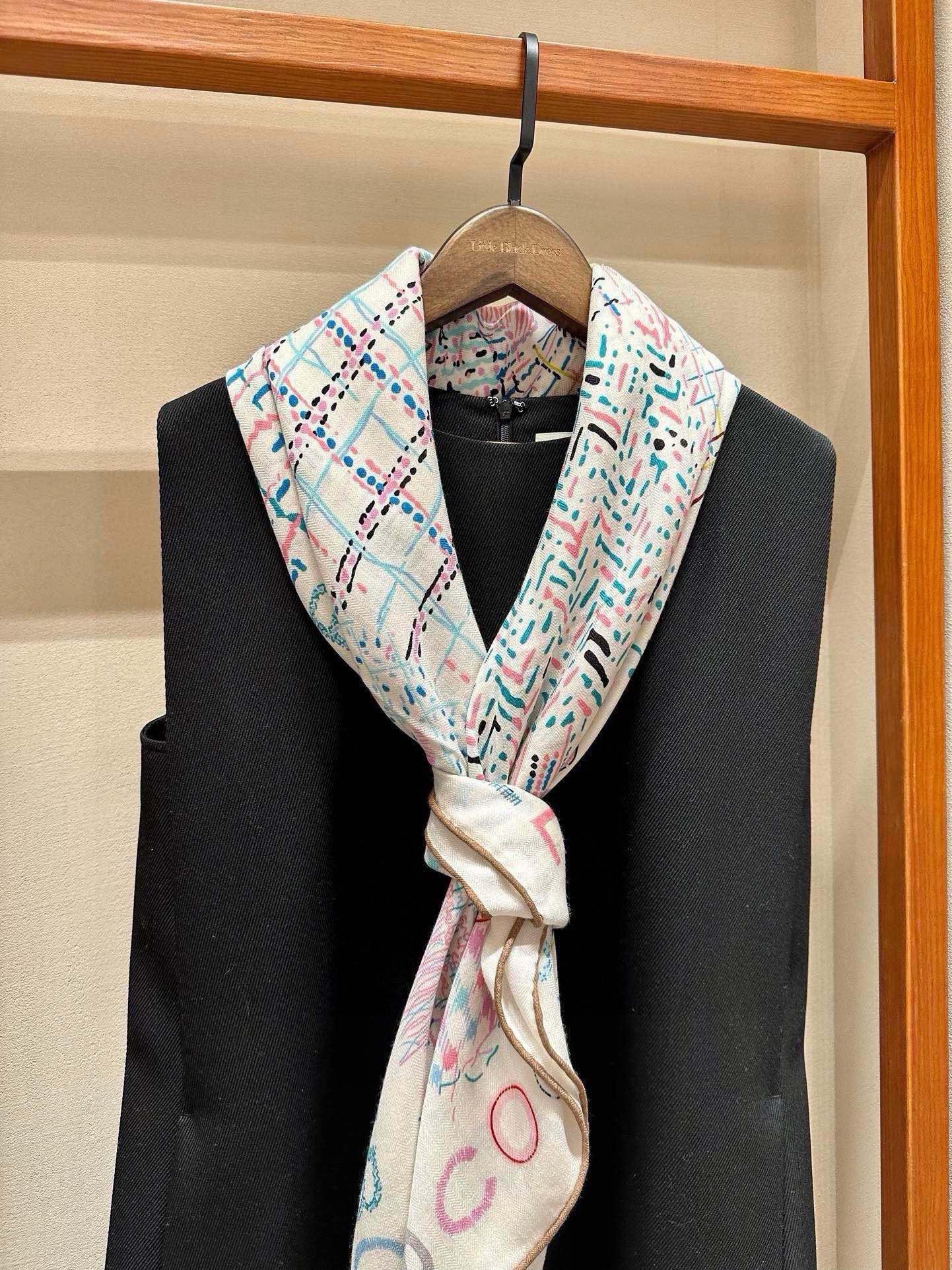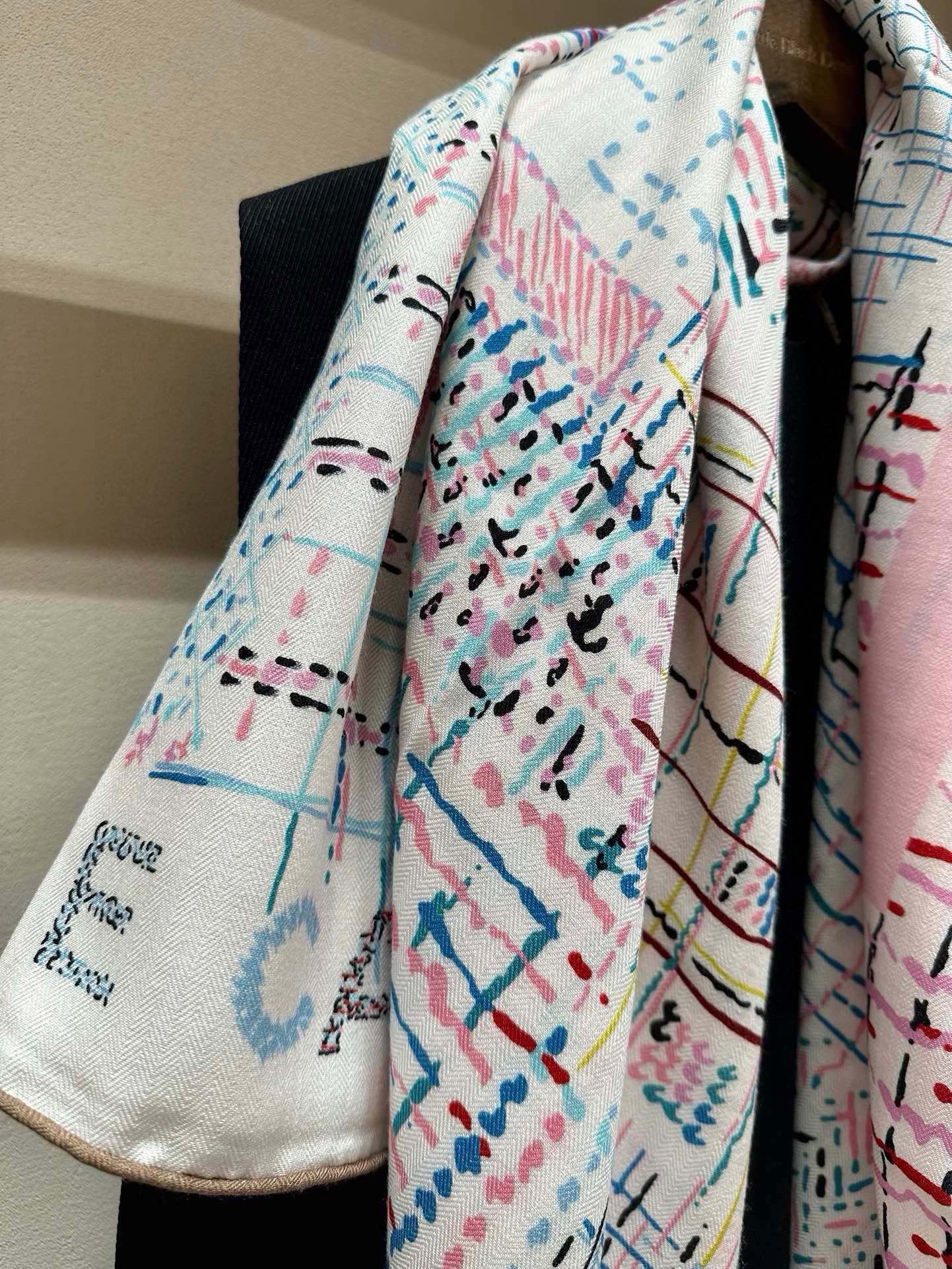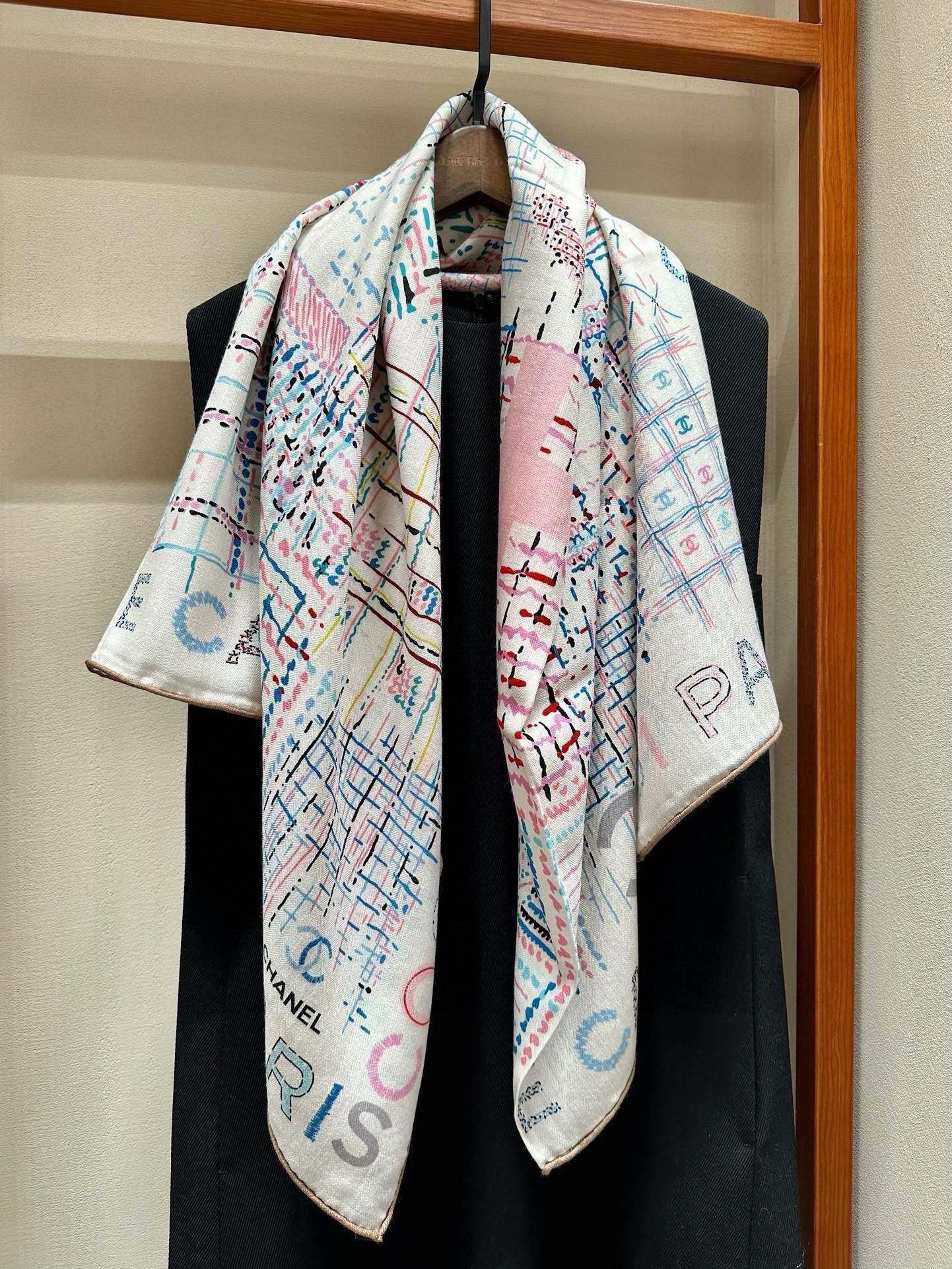 CC Square Scarf 140 CM In White Colorful Cashmere 182446