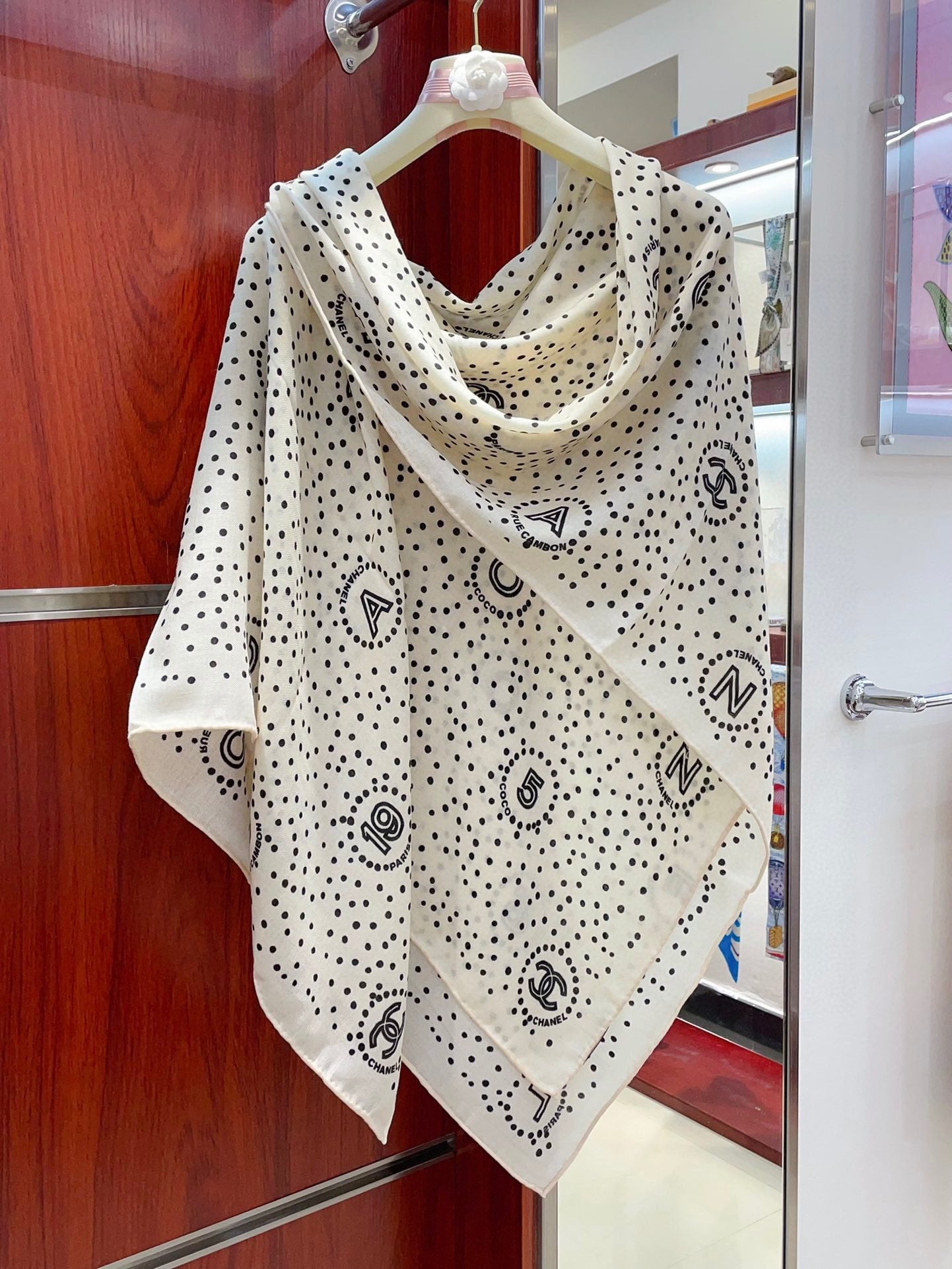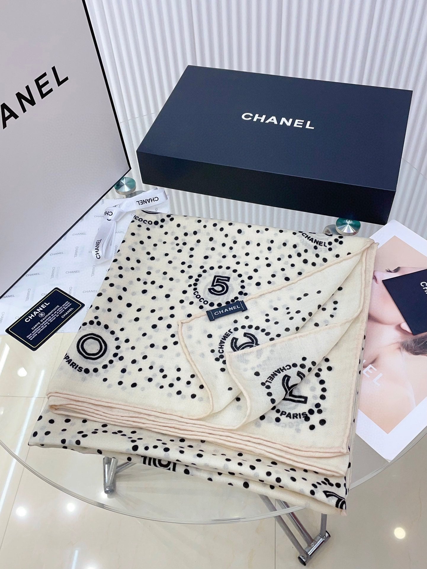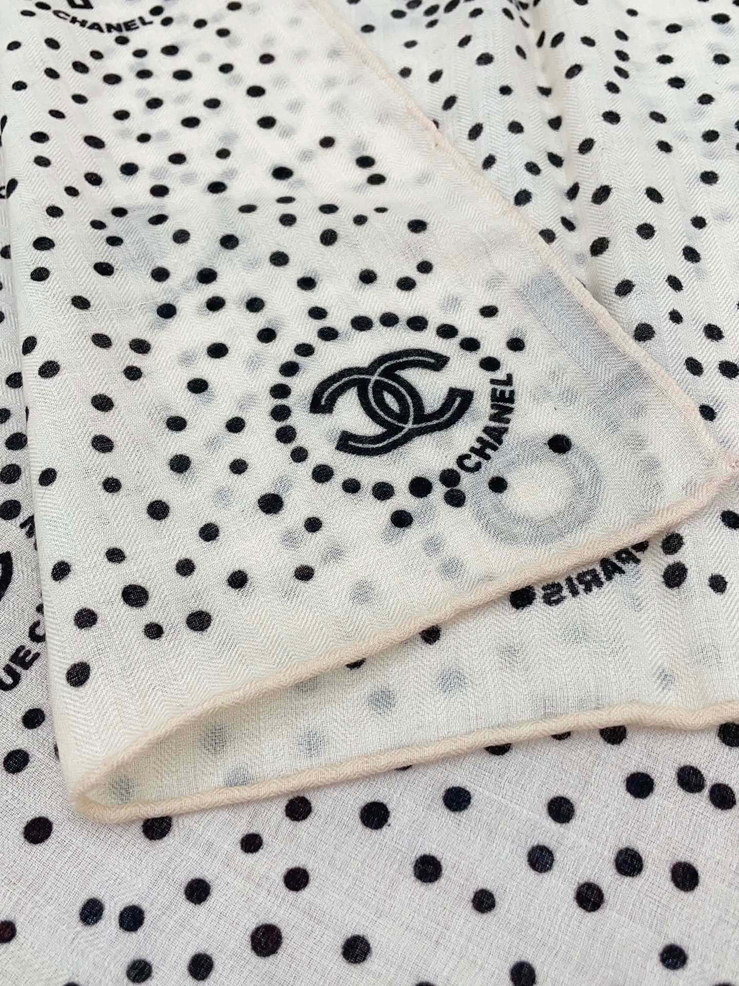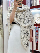 CC Square Scarf 140 CM In White Mix Black Cashmere And Silk 398279