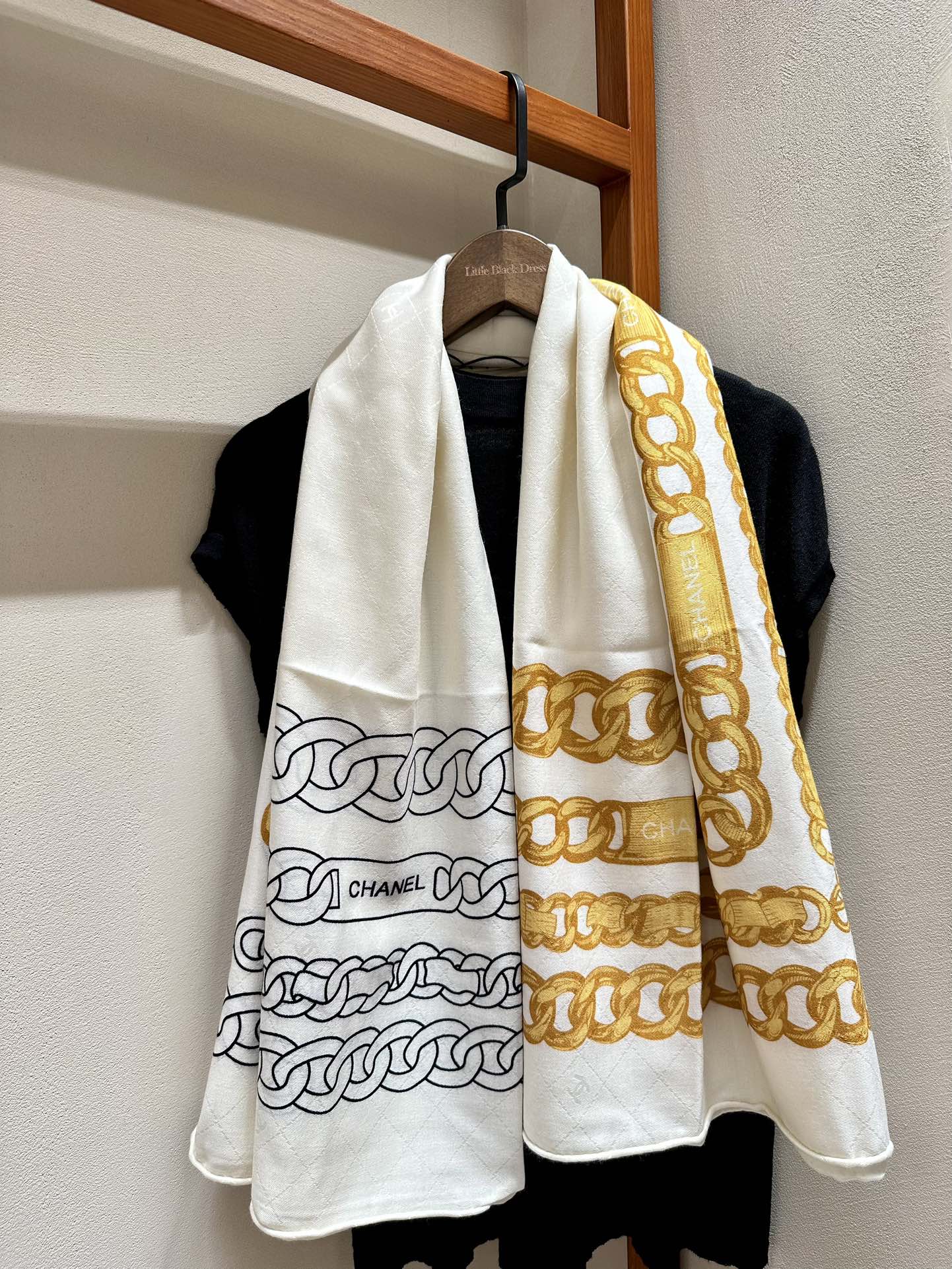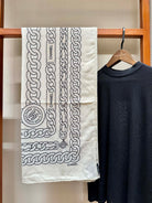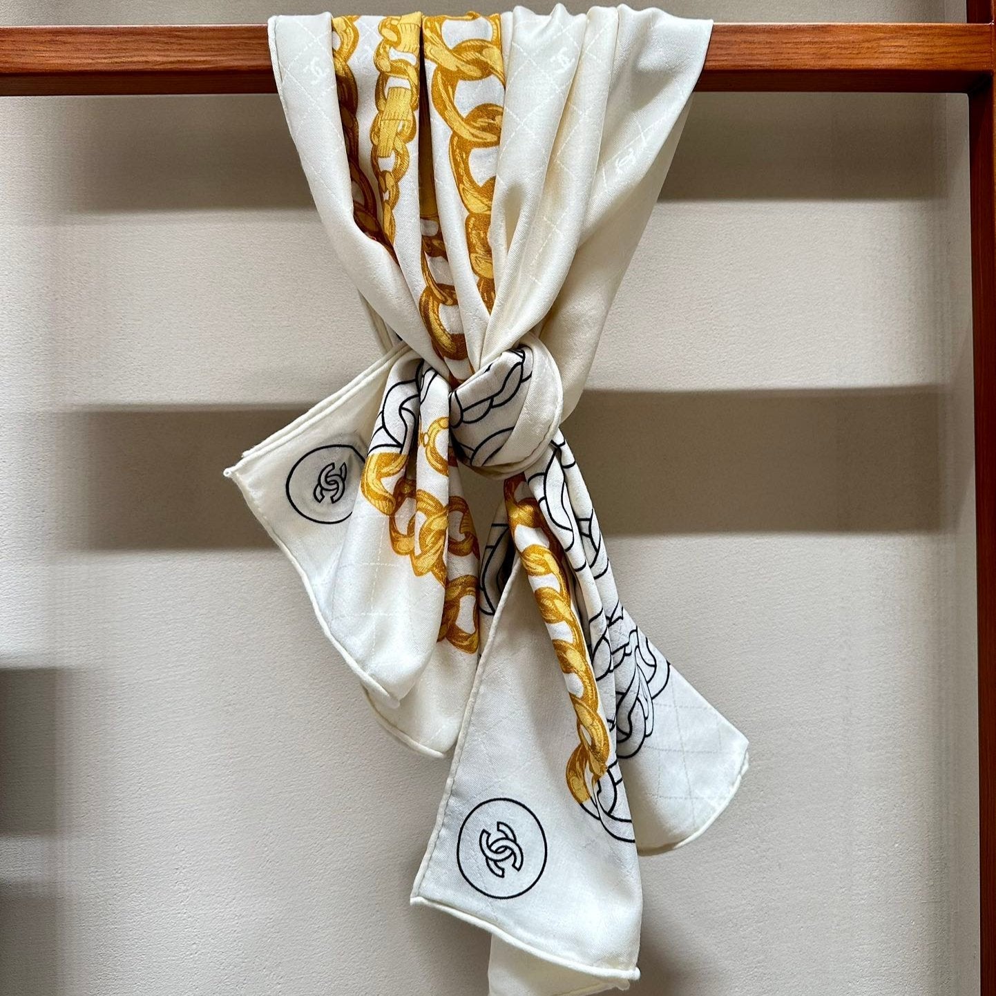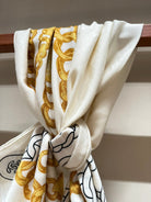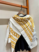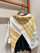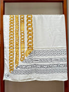 CC Square Scarf 140 CM In White Mix Yellow Black Velvet Fabric 420129