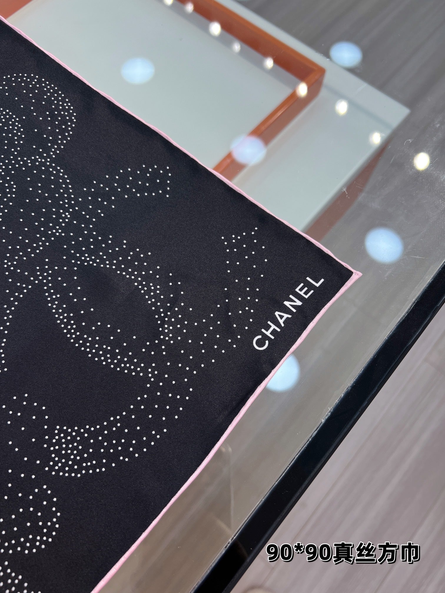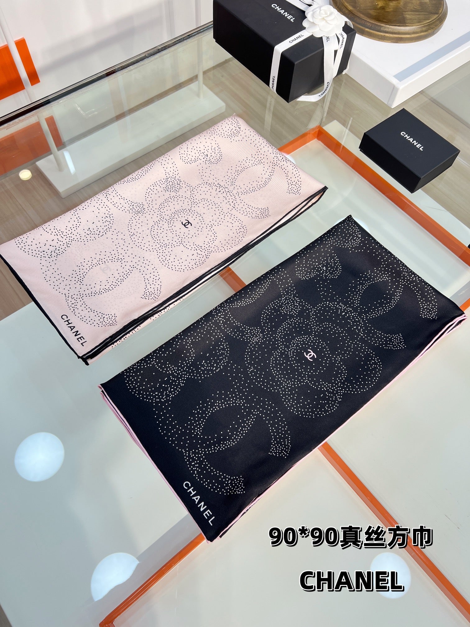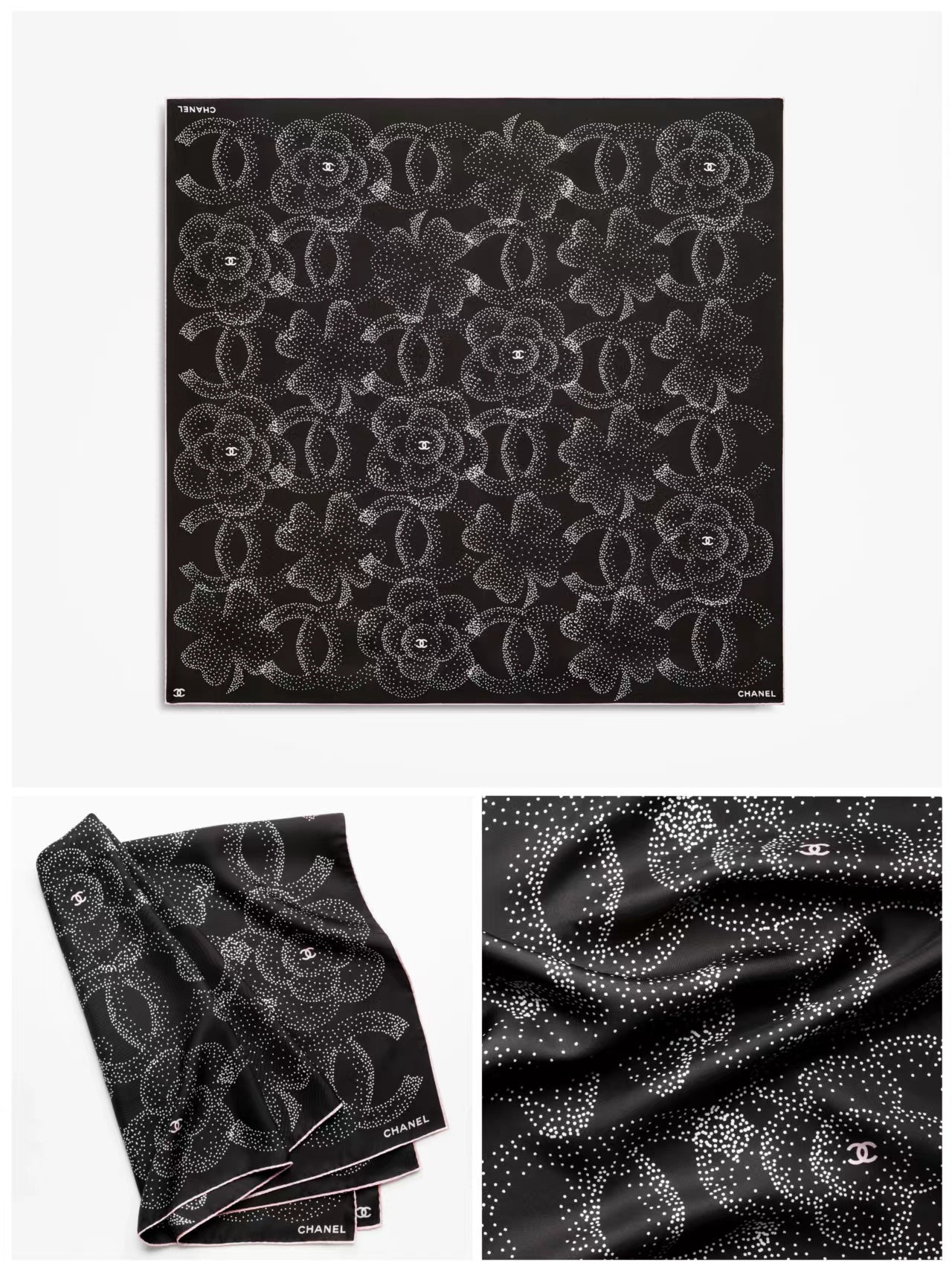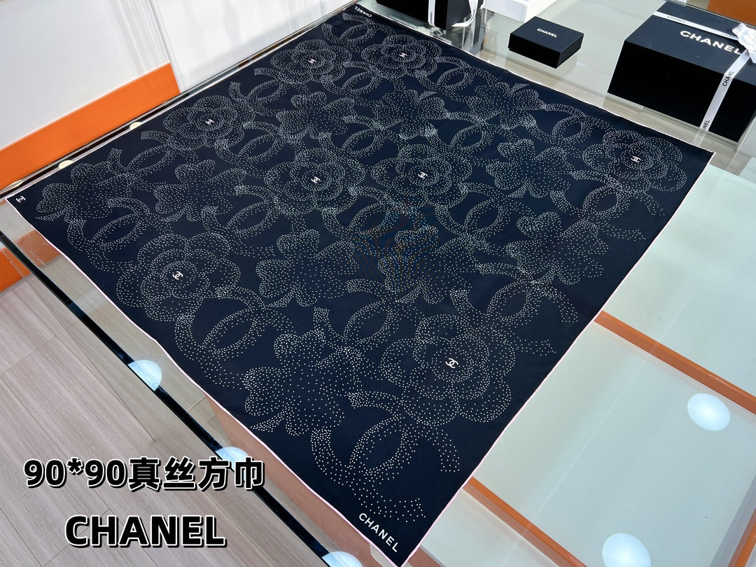 CC Square Scarf 90 CM In Black Camellia Polka Dot Silk 288736