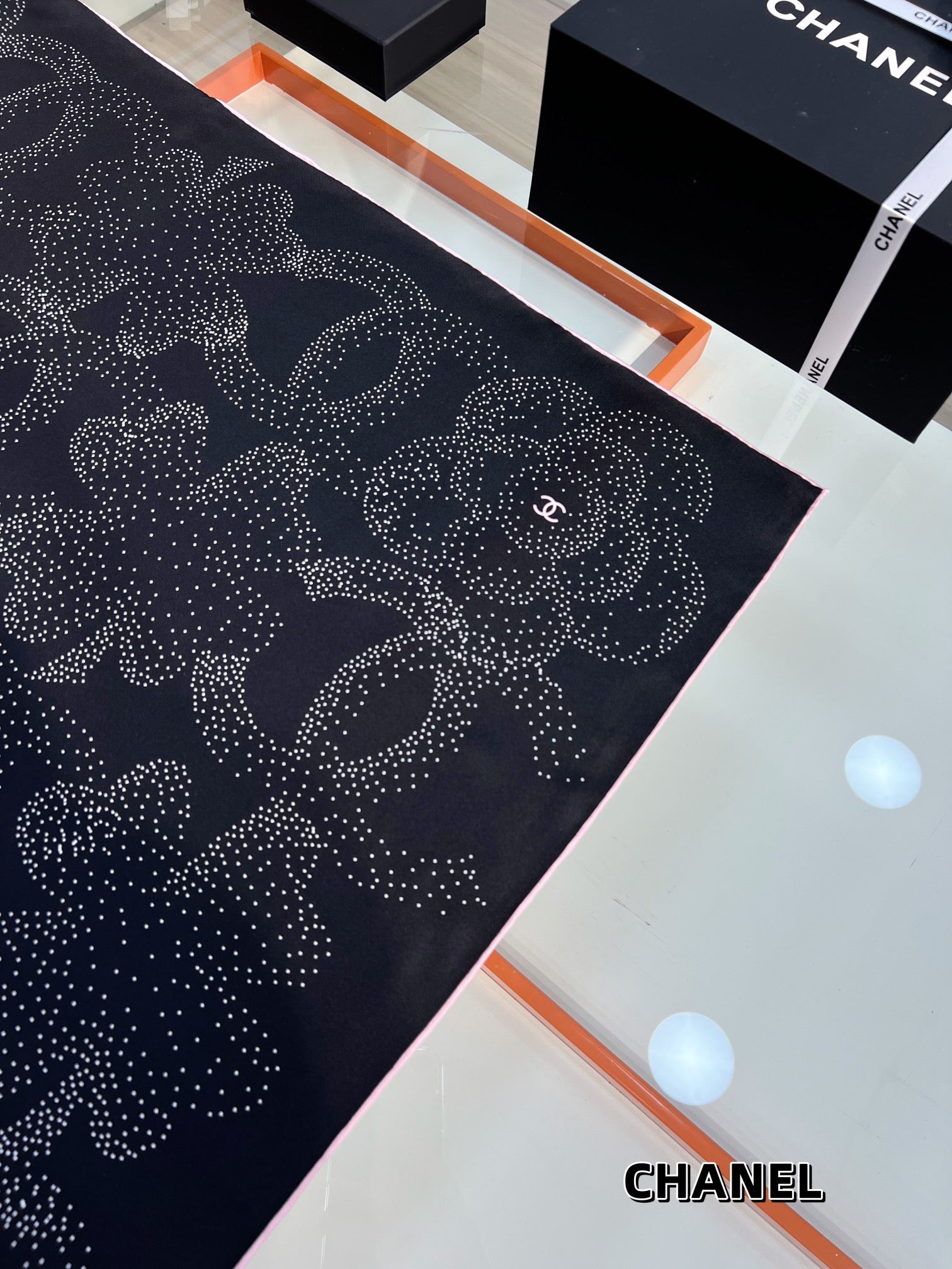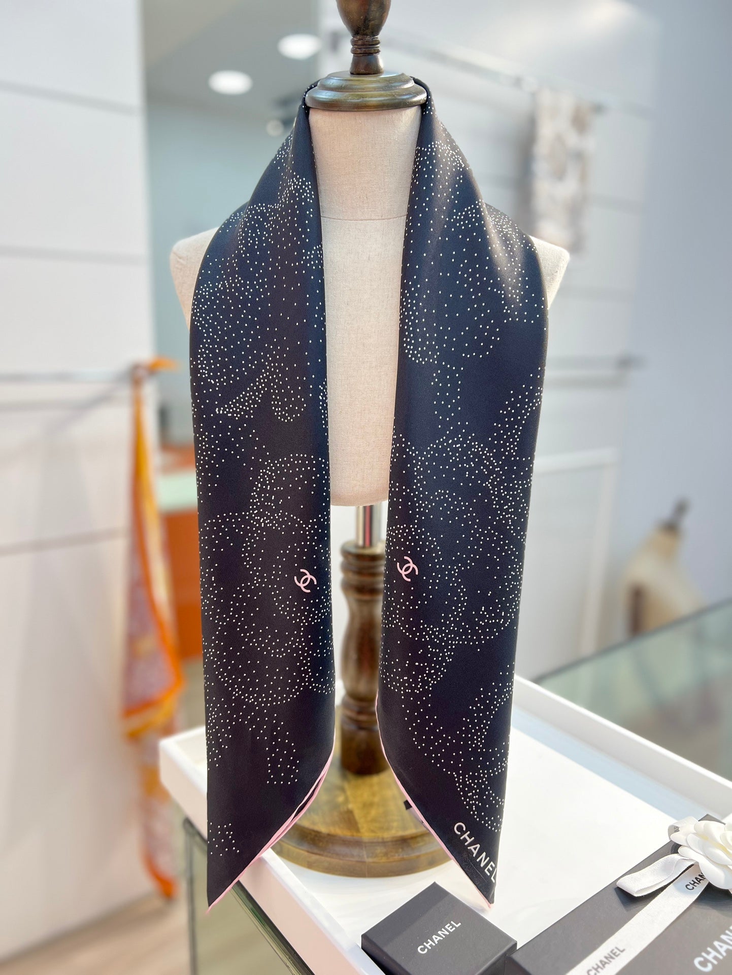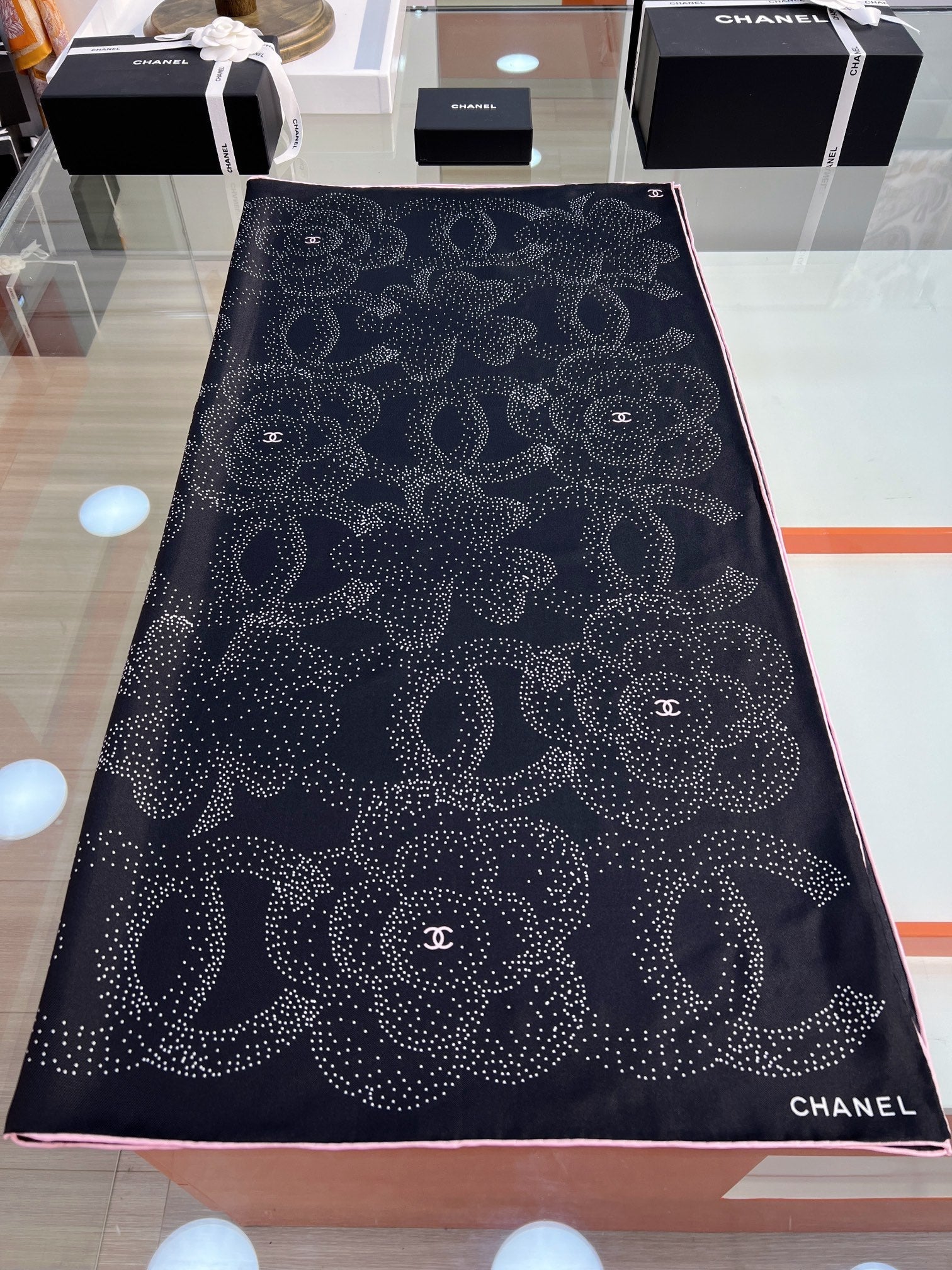 CC Square Scarf 90 CM In Black Camellia Polka Dot Silk 288736