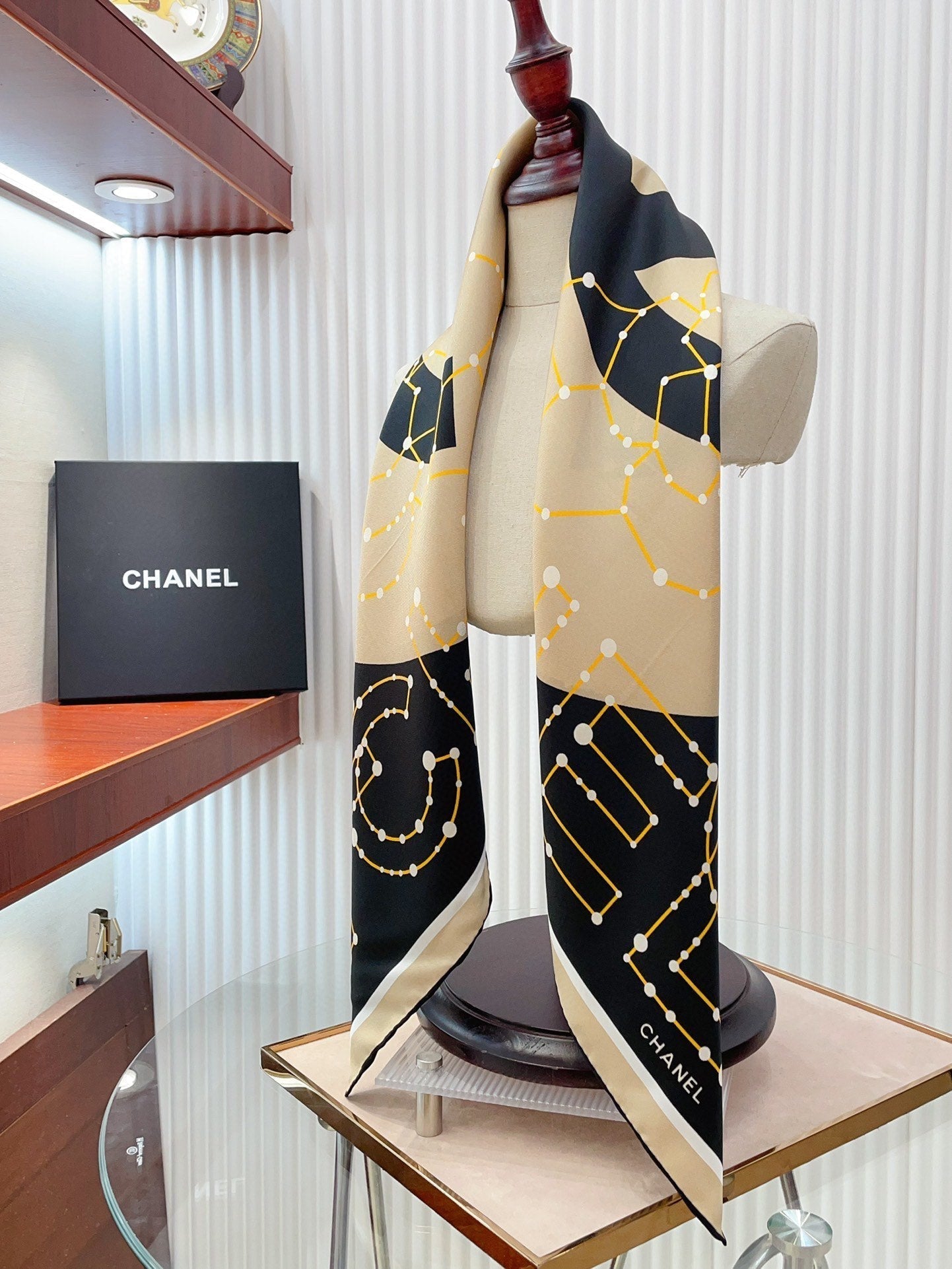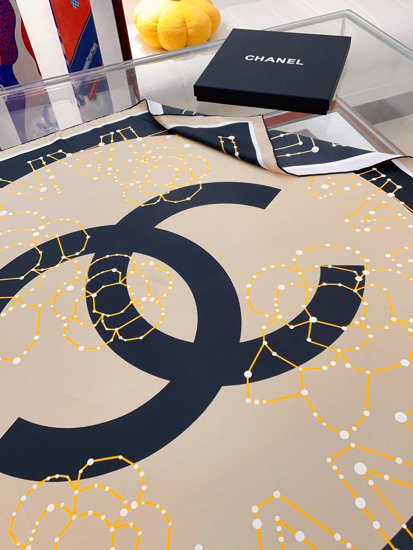 CC Square Scarf 90 CM In Black Mix Beige Silk Twill 206457