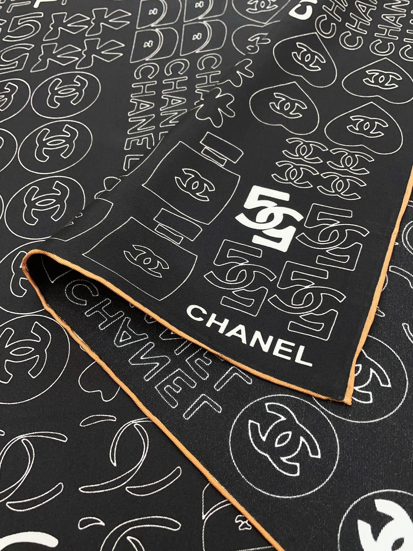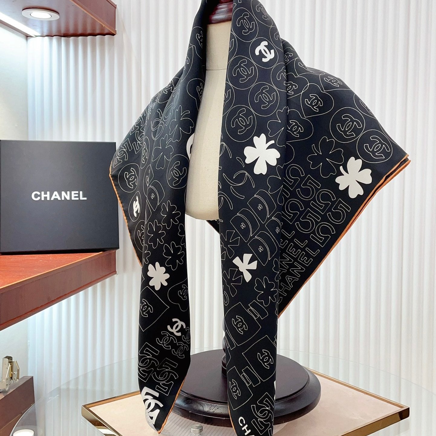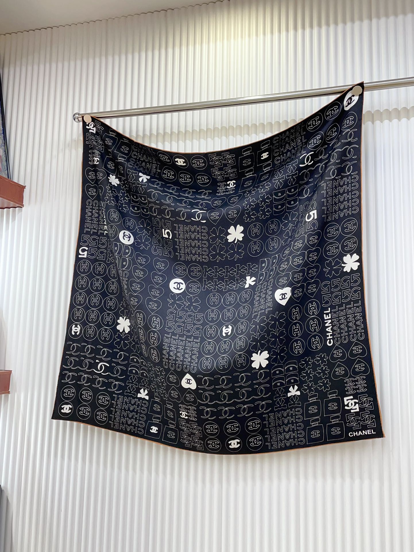 CC Square Scarf 90 CM In Black Mix White Cashmere Silk 316268