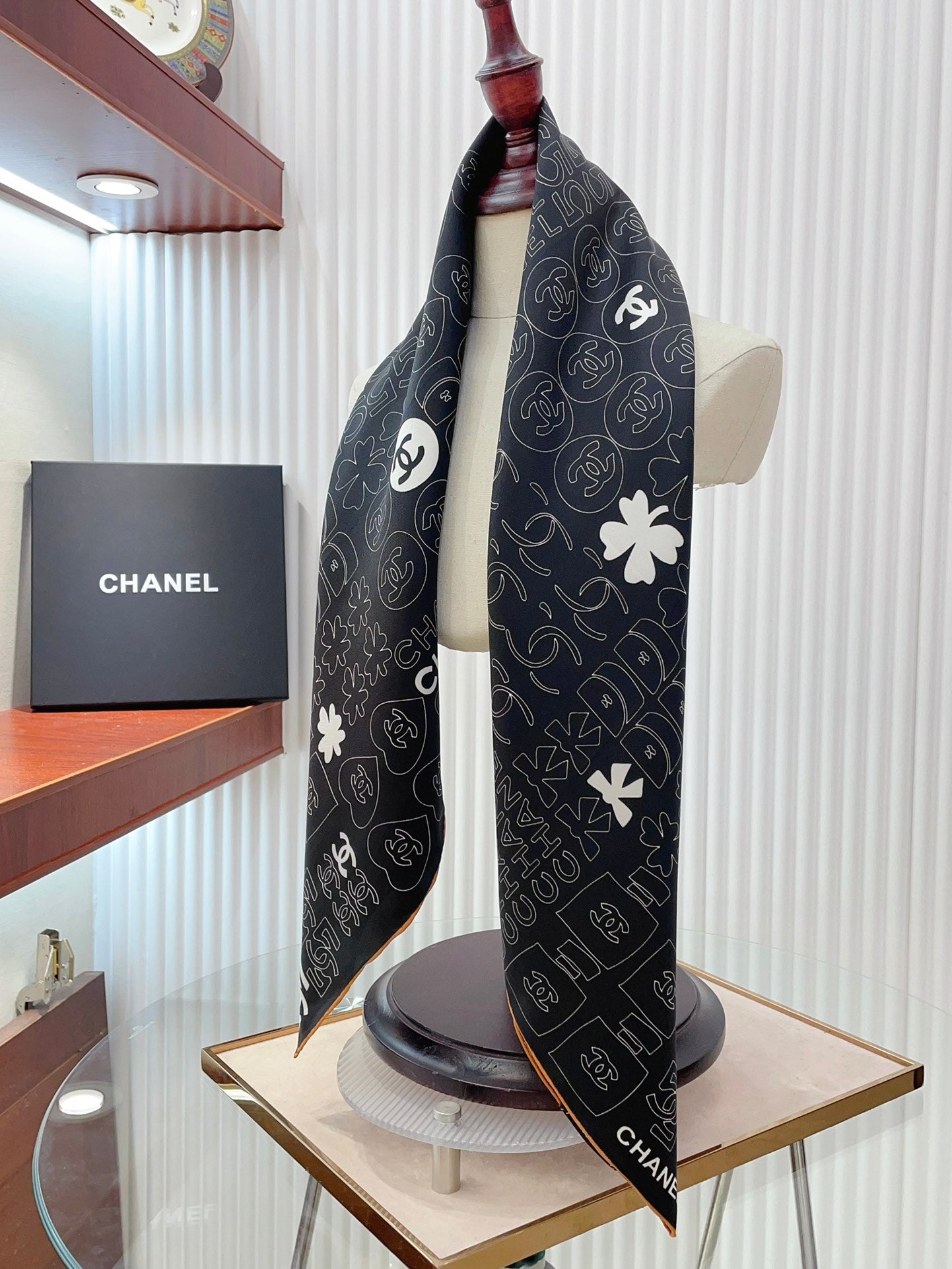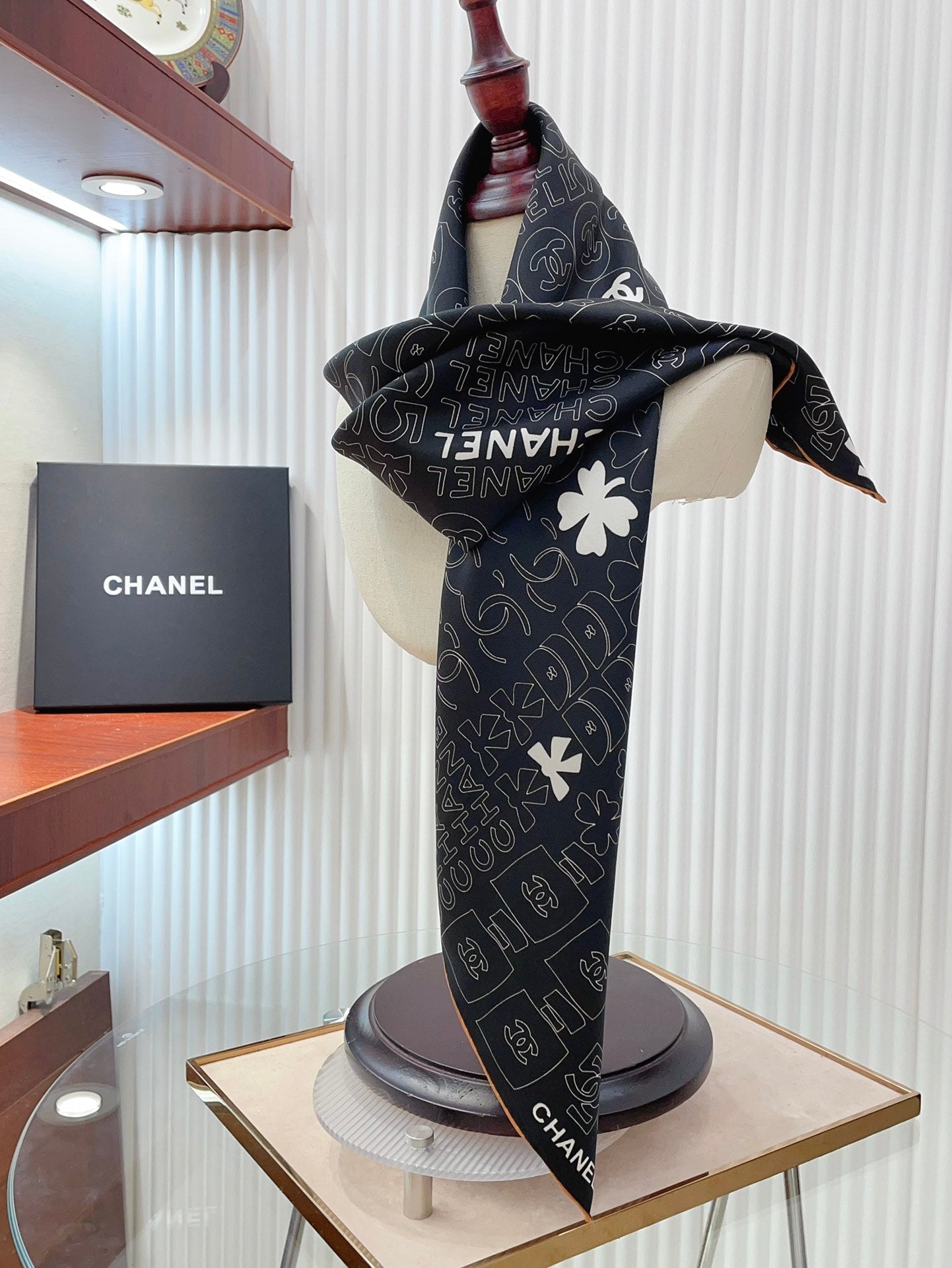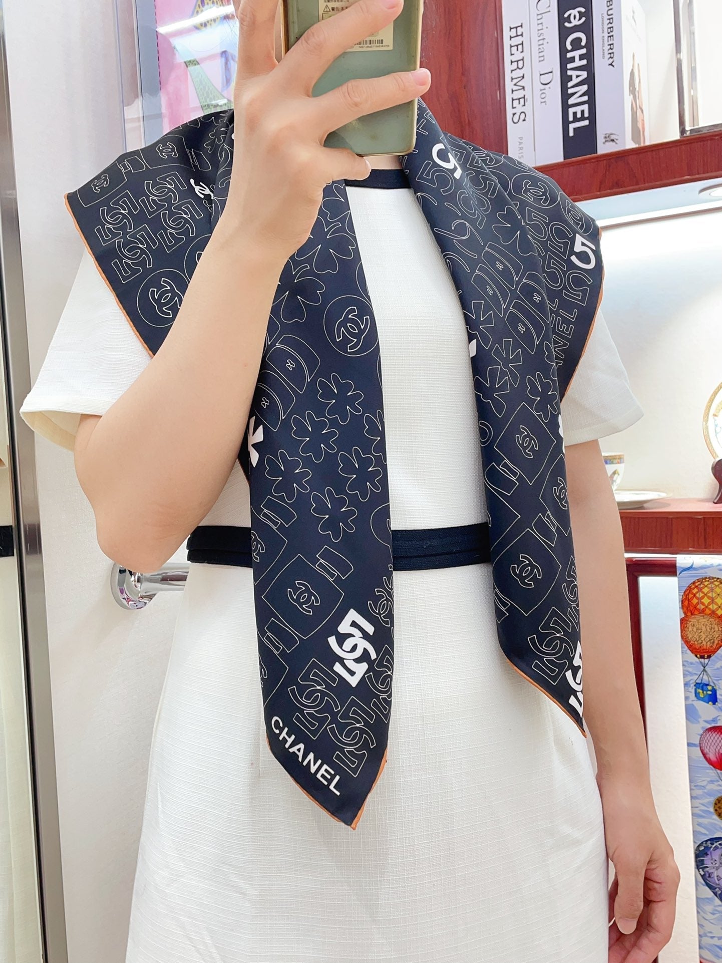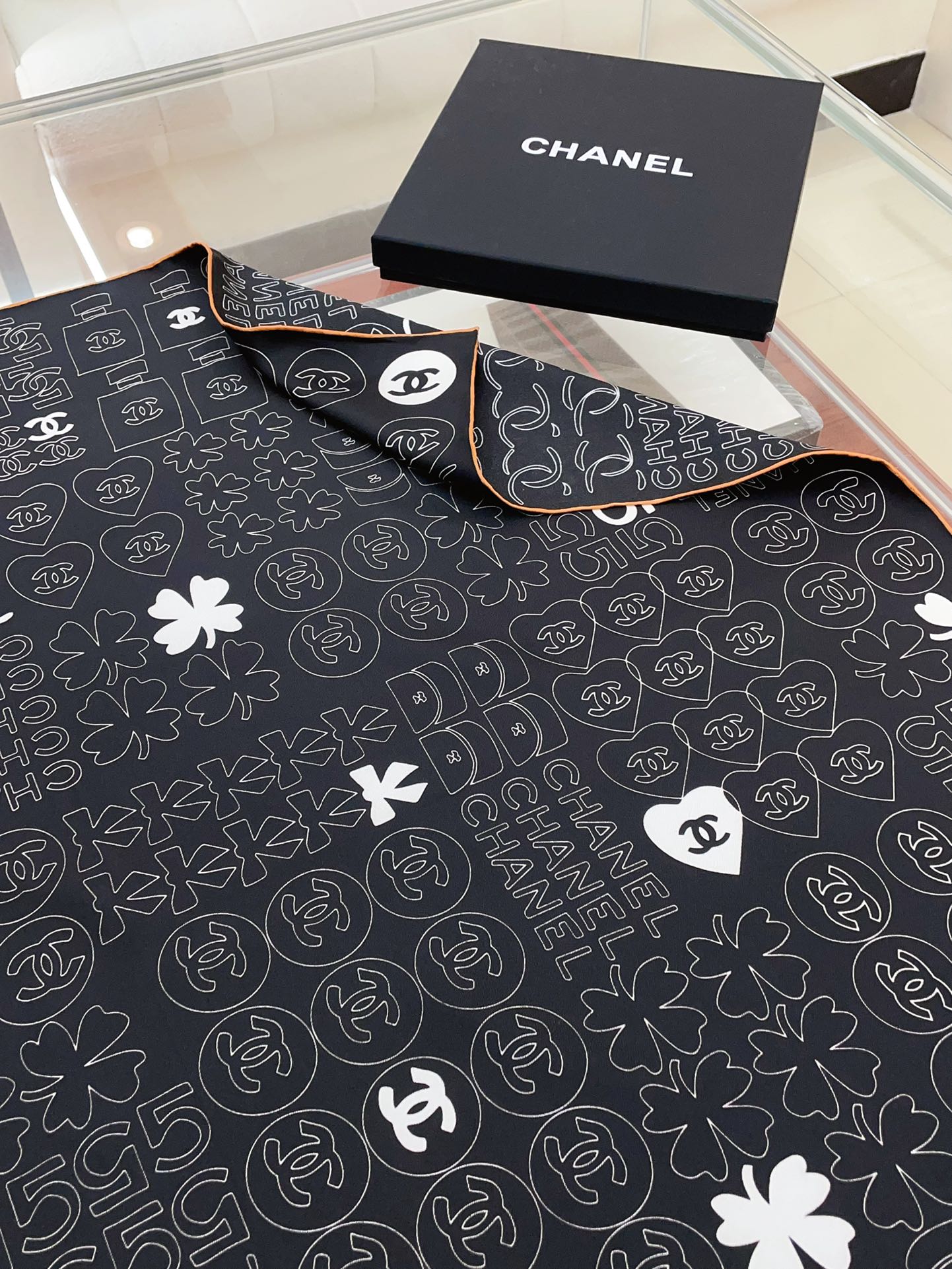 CC Square Scarf 90 CM In Black Mix White Cashmere Silk 316268