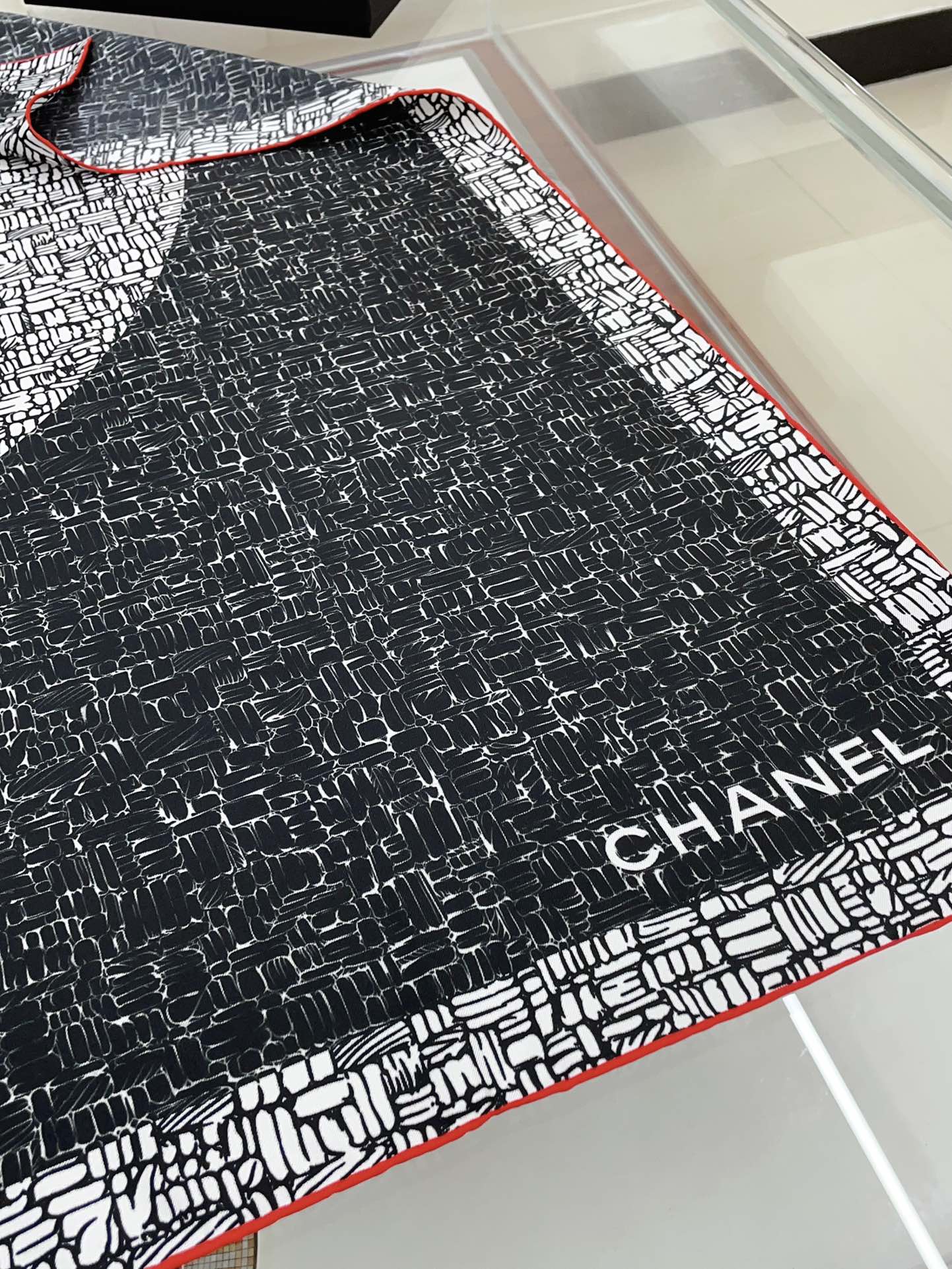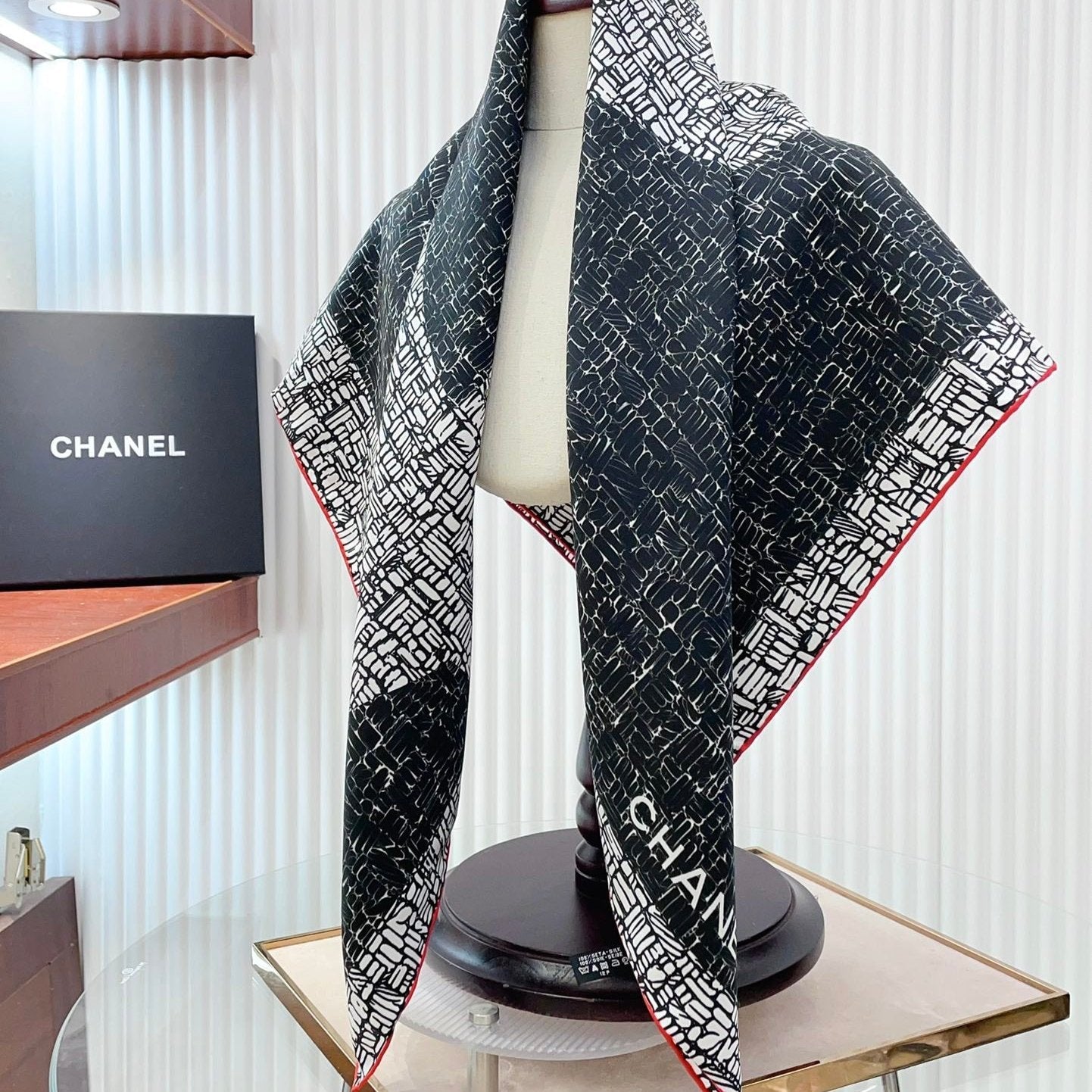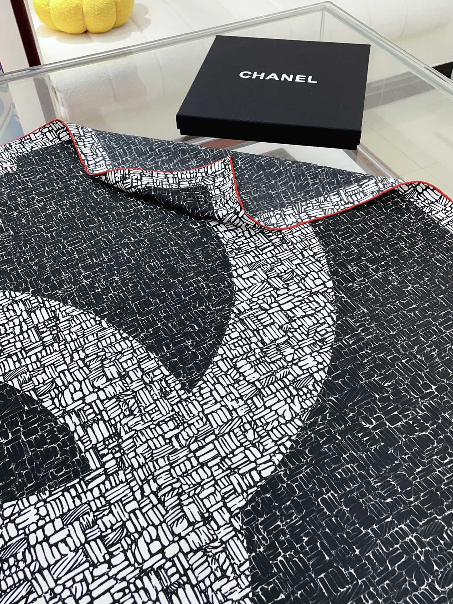 CC Square Scarf 90 CM In Black Mix White Silk Twill 218098