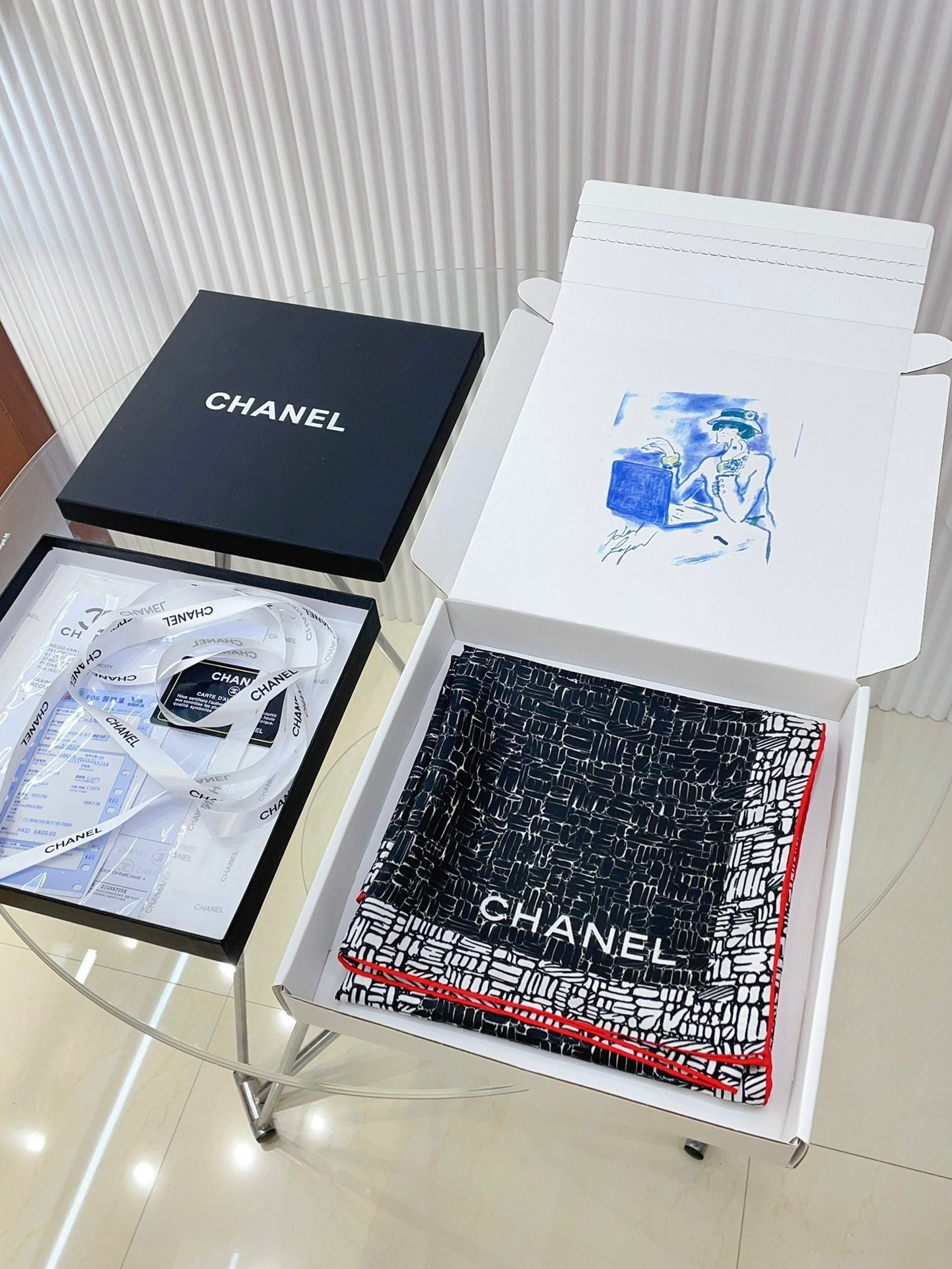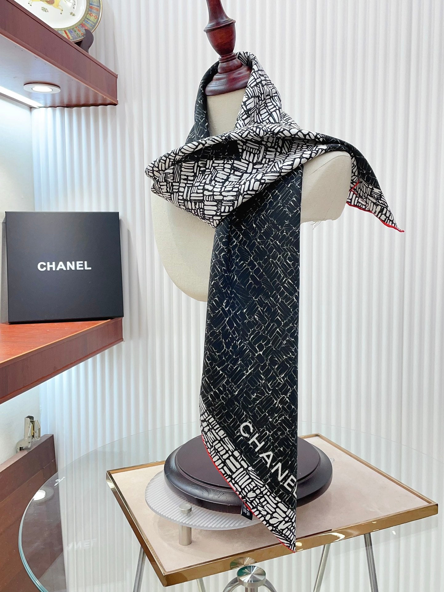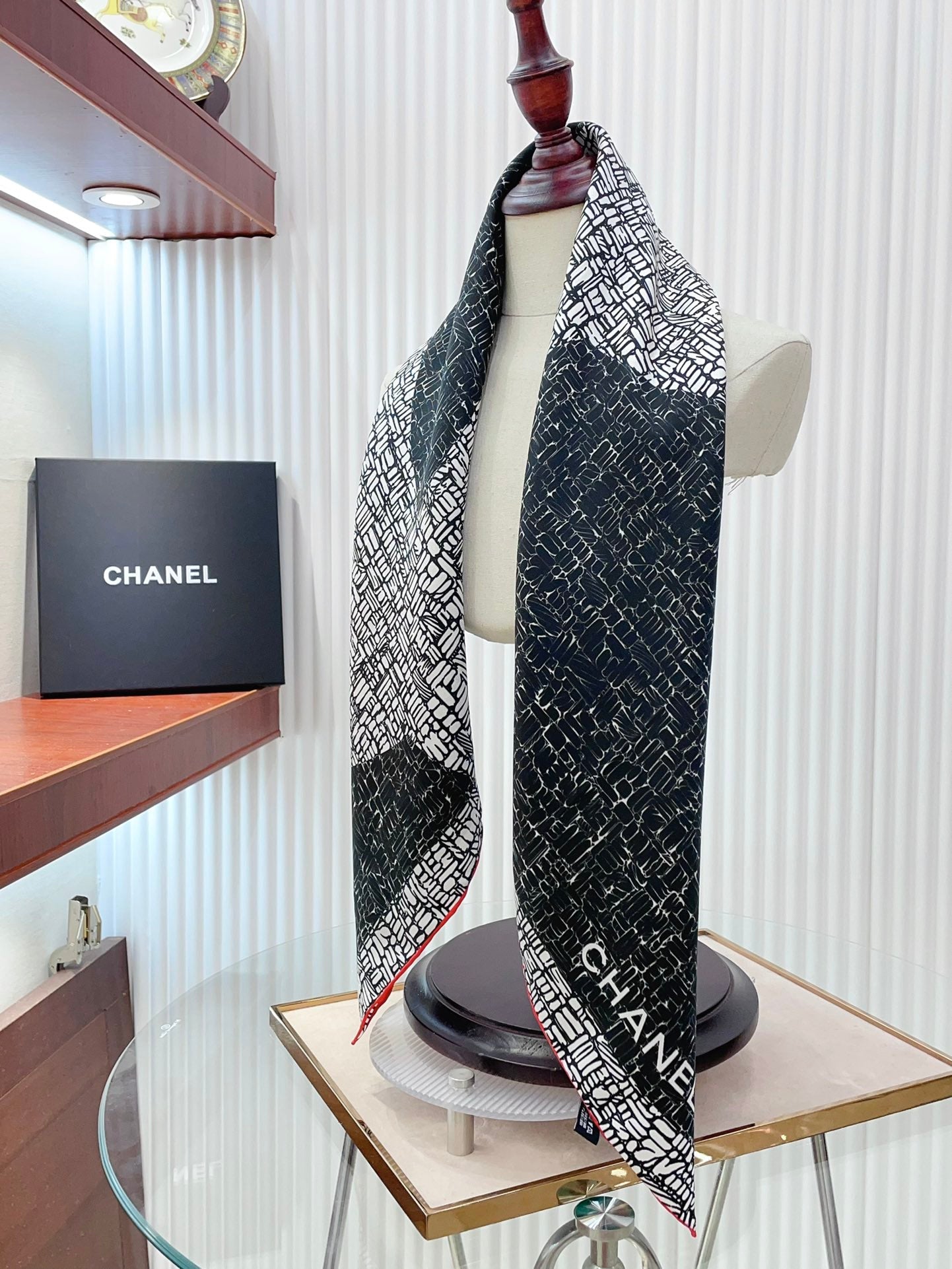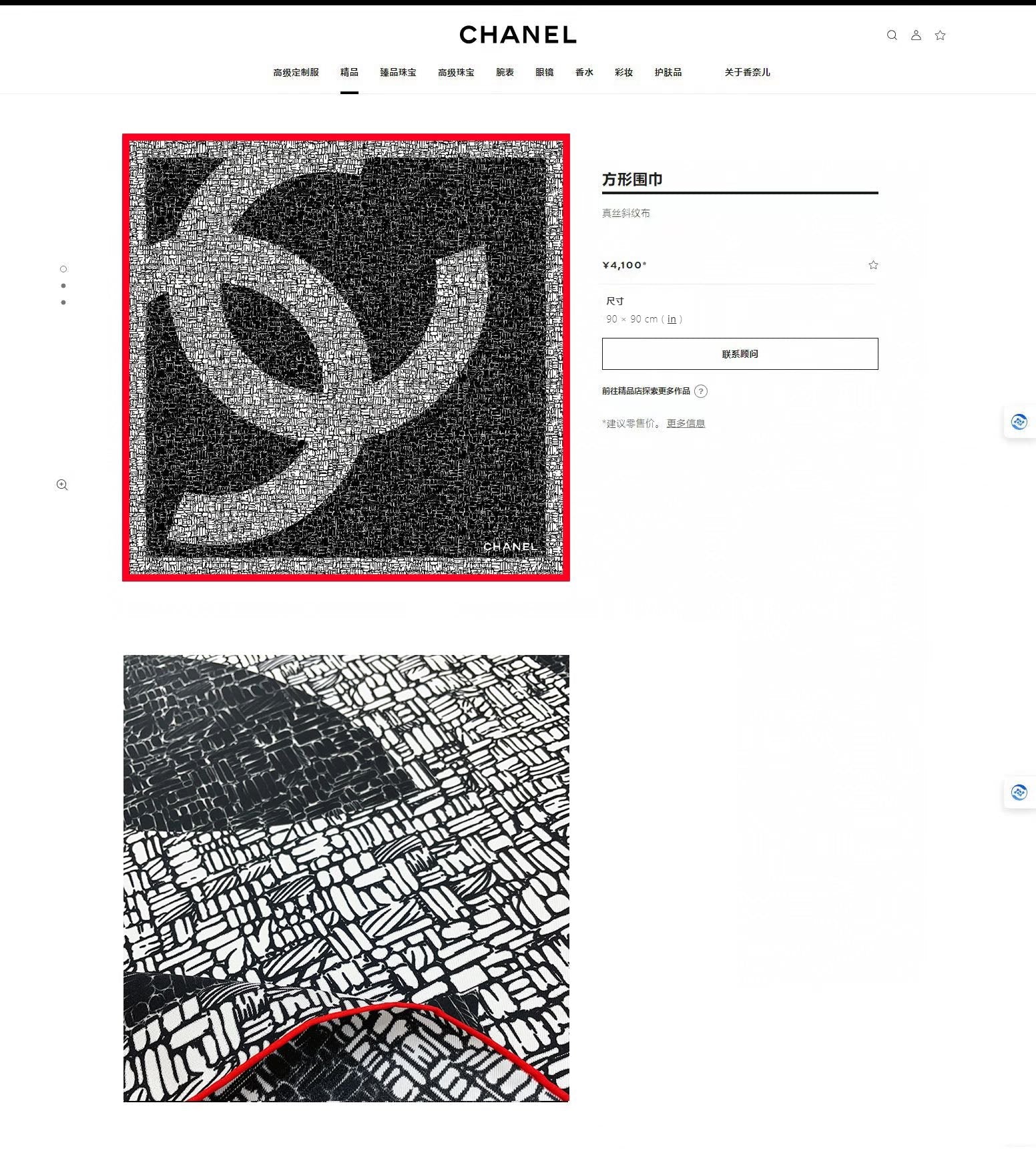 CC Square Scarf 90 CM In Black Mix White Silk Twill 218098
