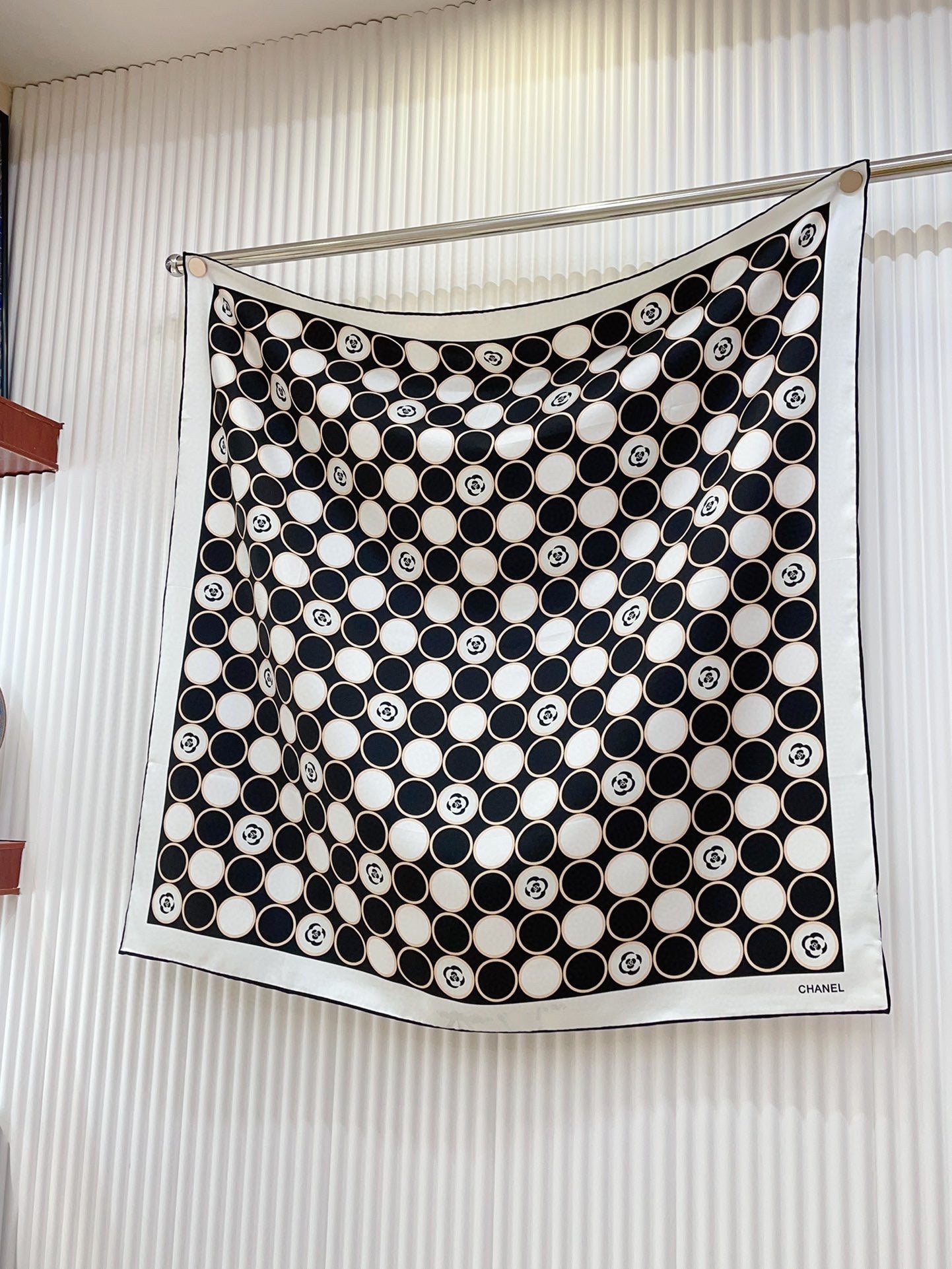 CC Square Scarf 90 CM In Black Mix White Silk Twill 350415