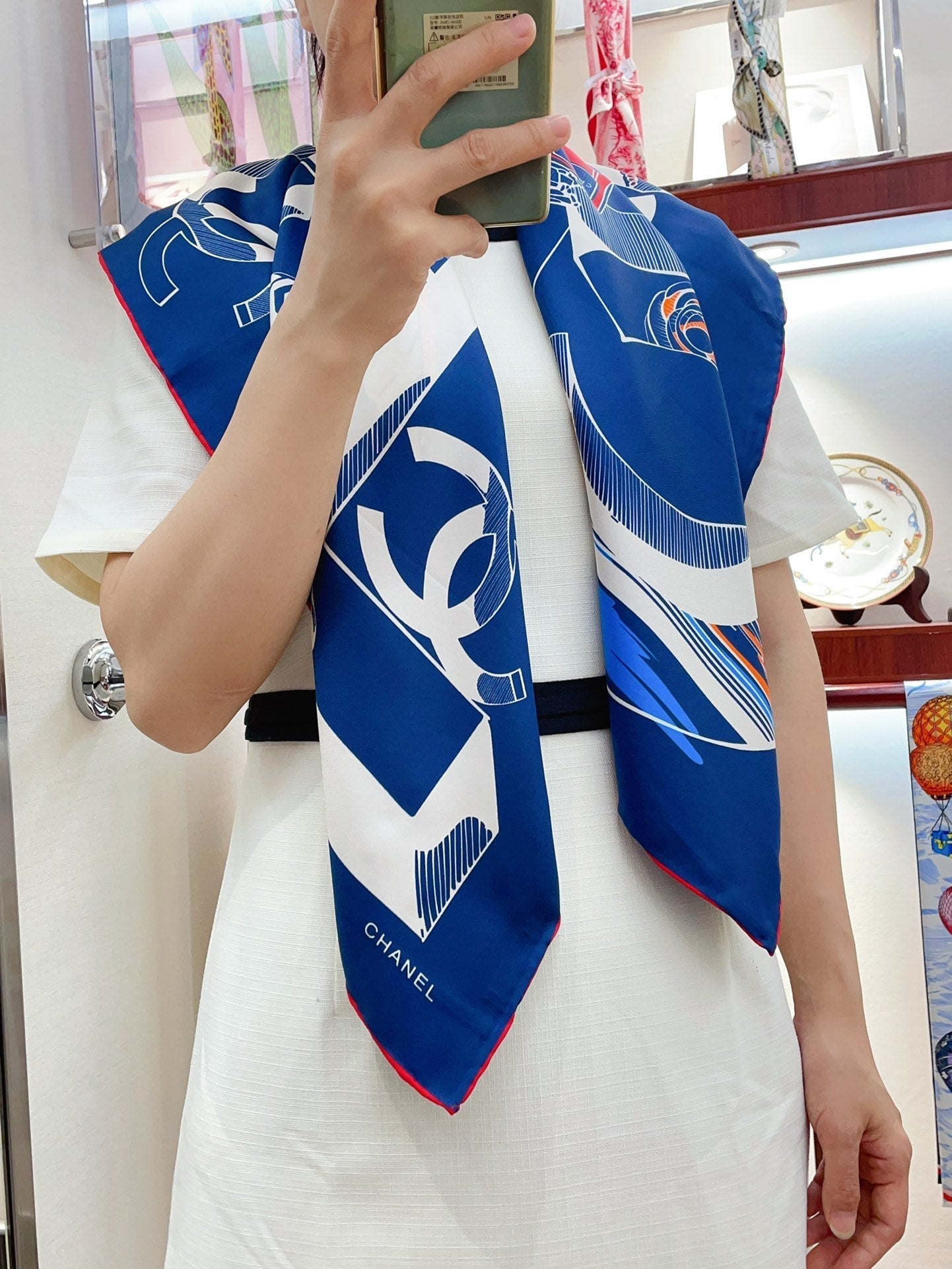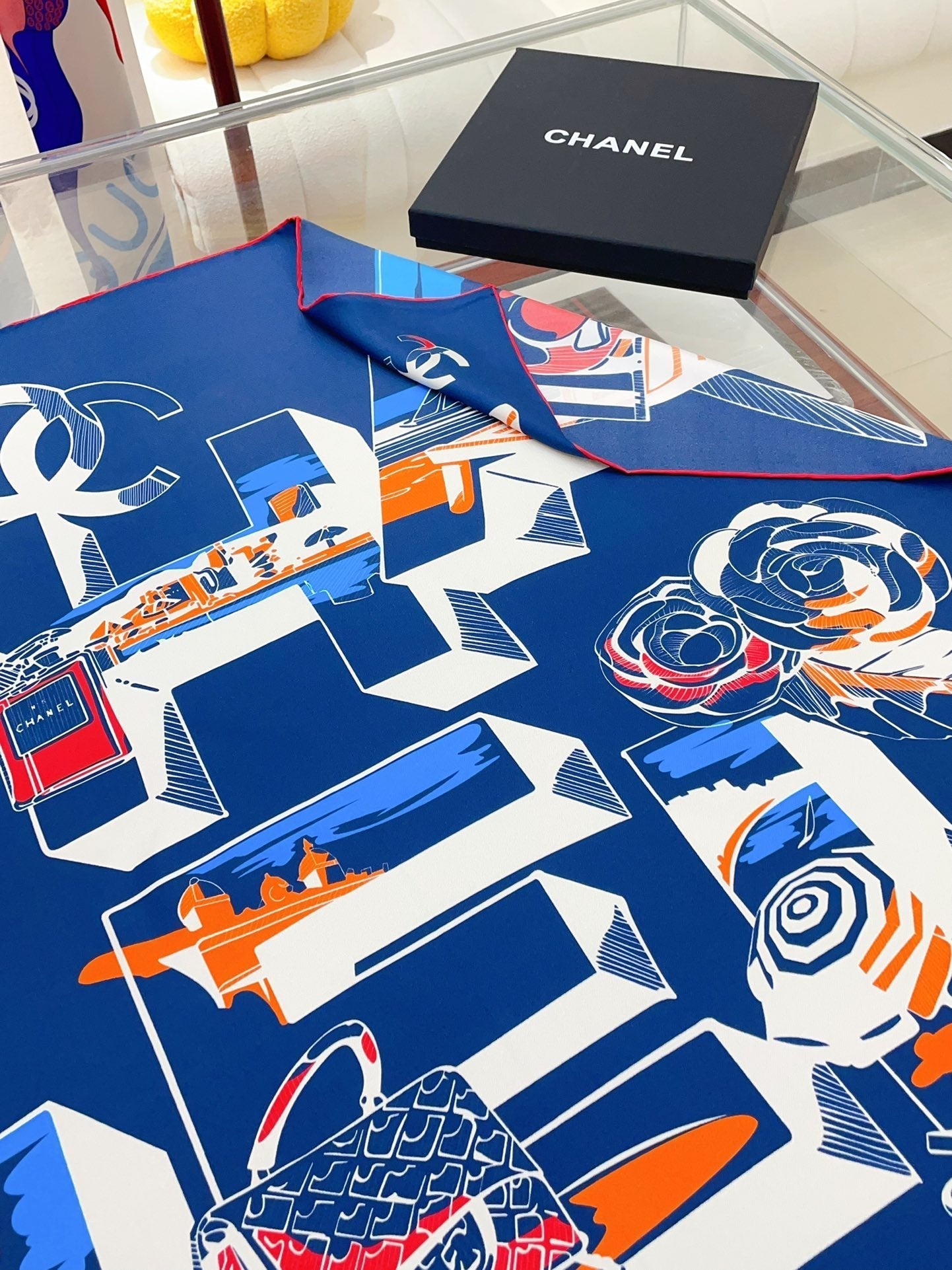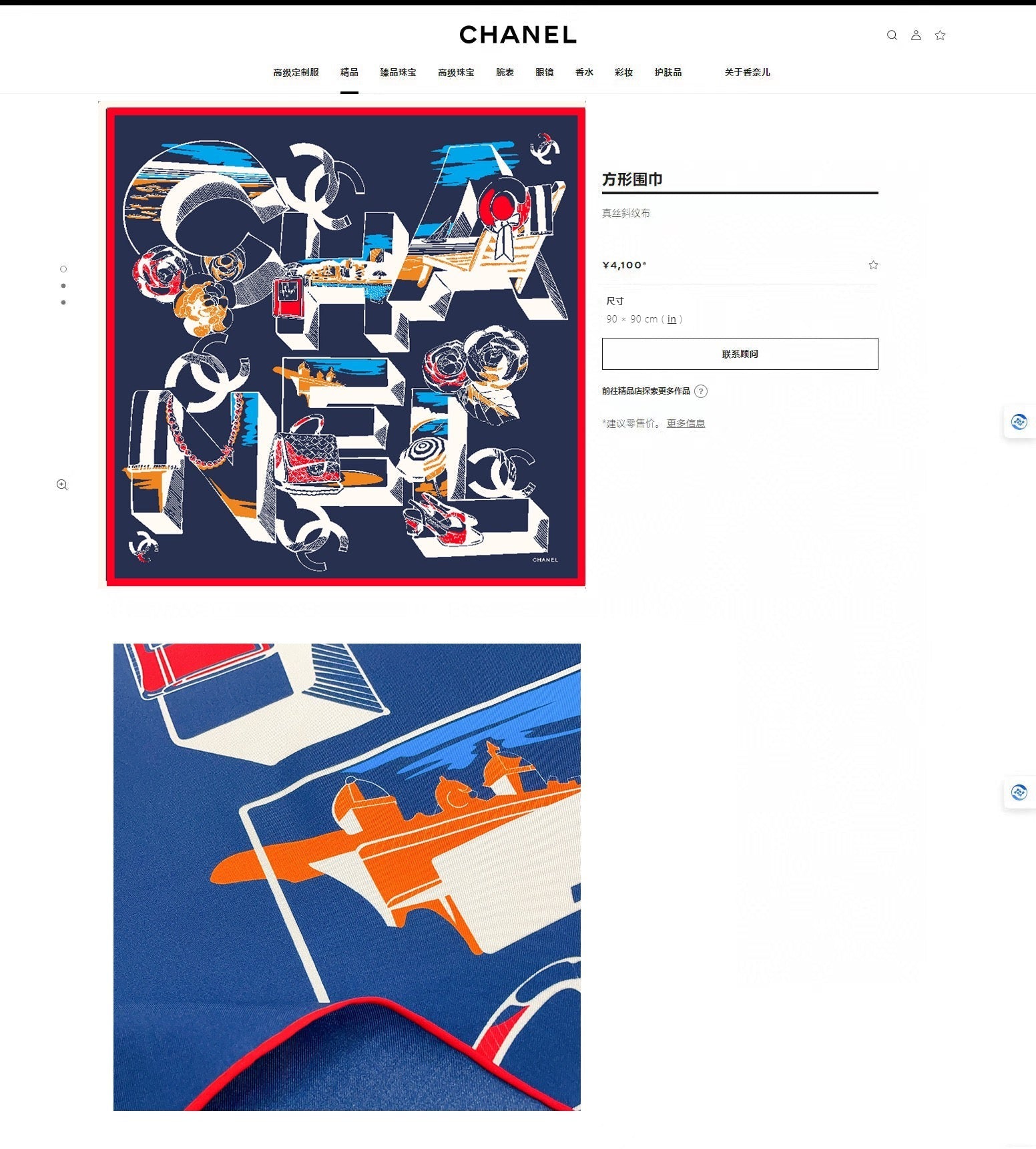 CC Square Scarf 90 CM In Blue Colorful Silk Twill 211097