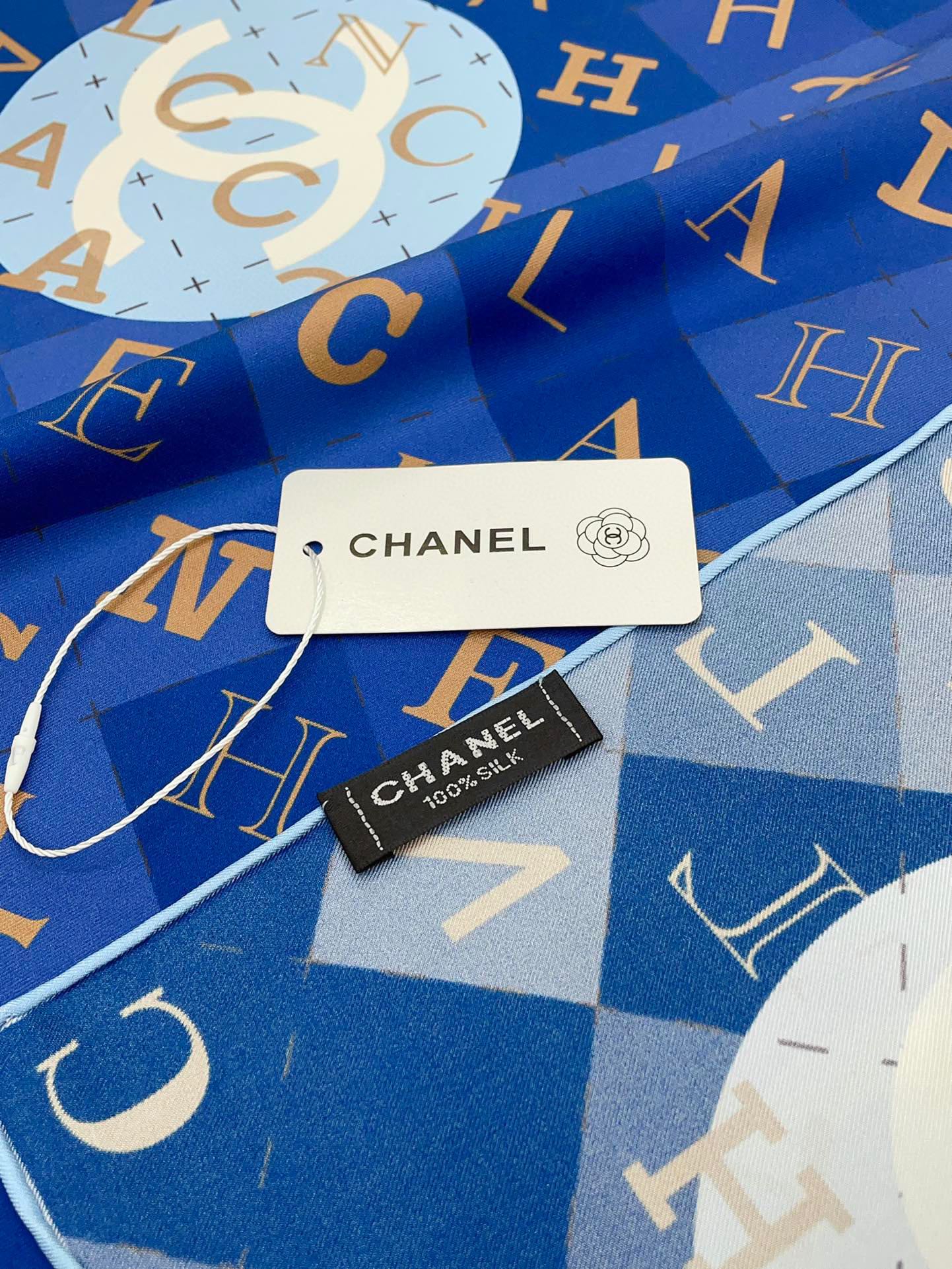 CC Square Scarf 90 CM In Blue Silk Twill 306566