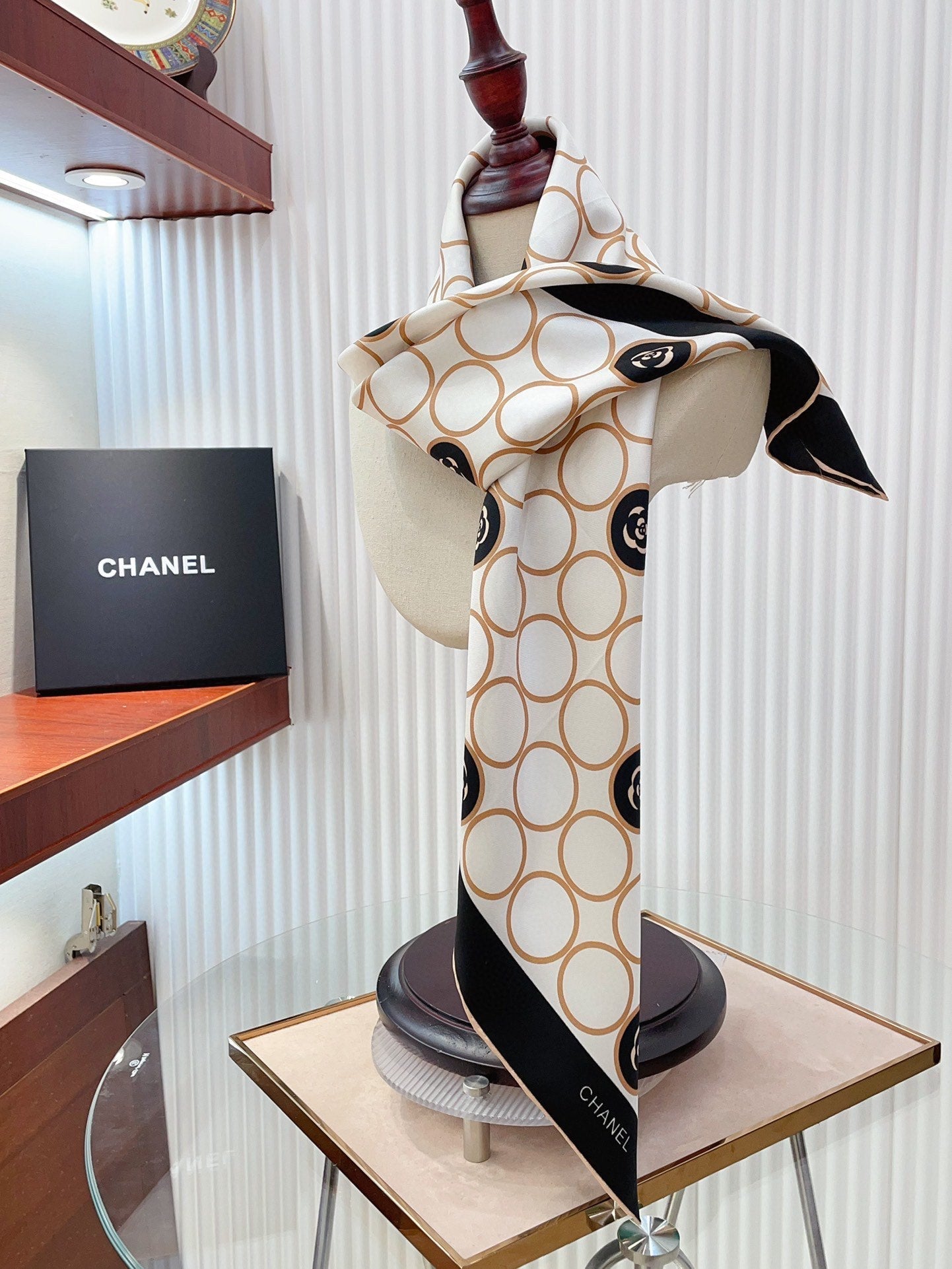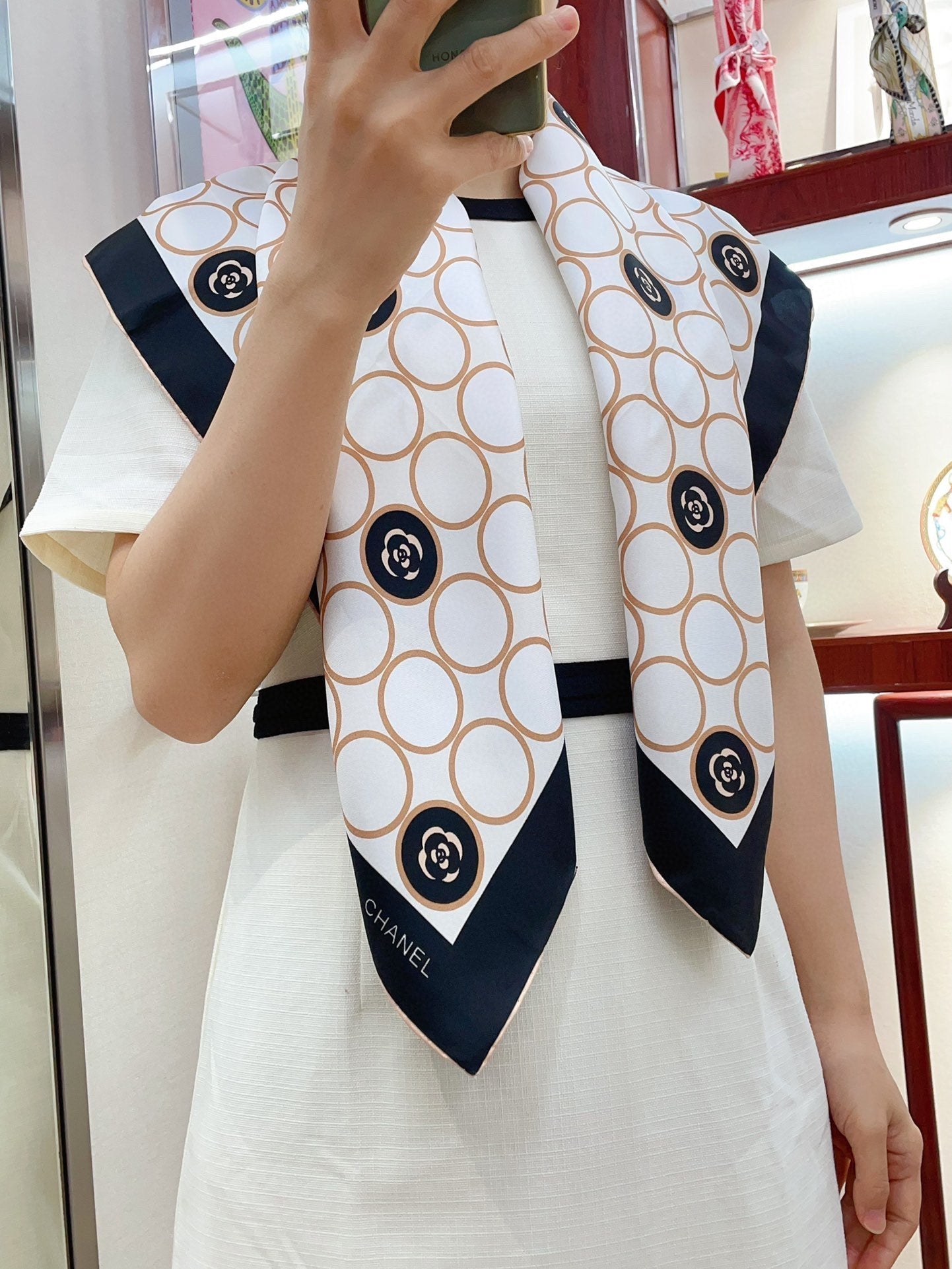CC Square Scarf 90 CM In White Beige Mix Black Silk Twill 350414