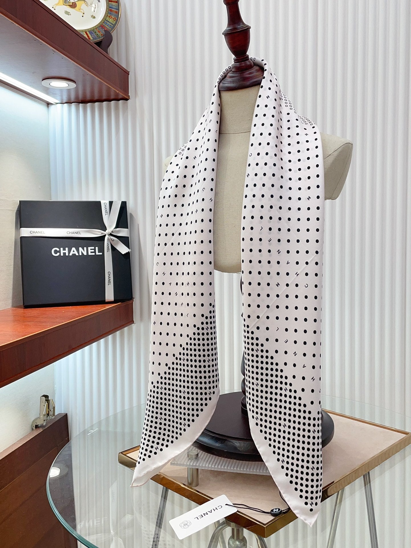 CC Square Scarf 90 CM In White Black Polka Dot Silk Twill 166292