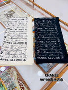 CC Square Scarf 90 CM In Black With White Text Silk 288695